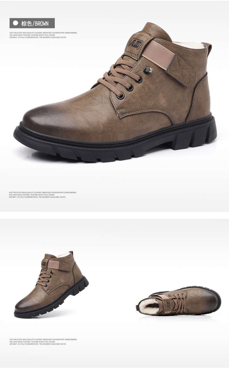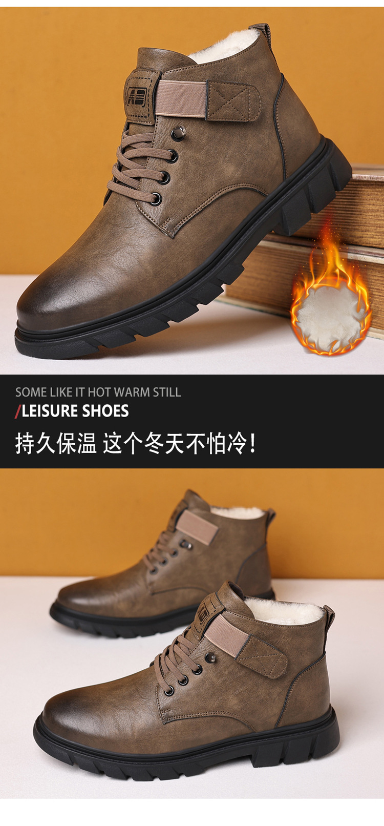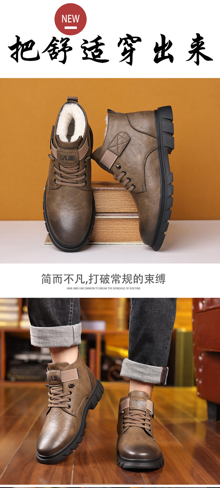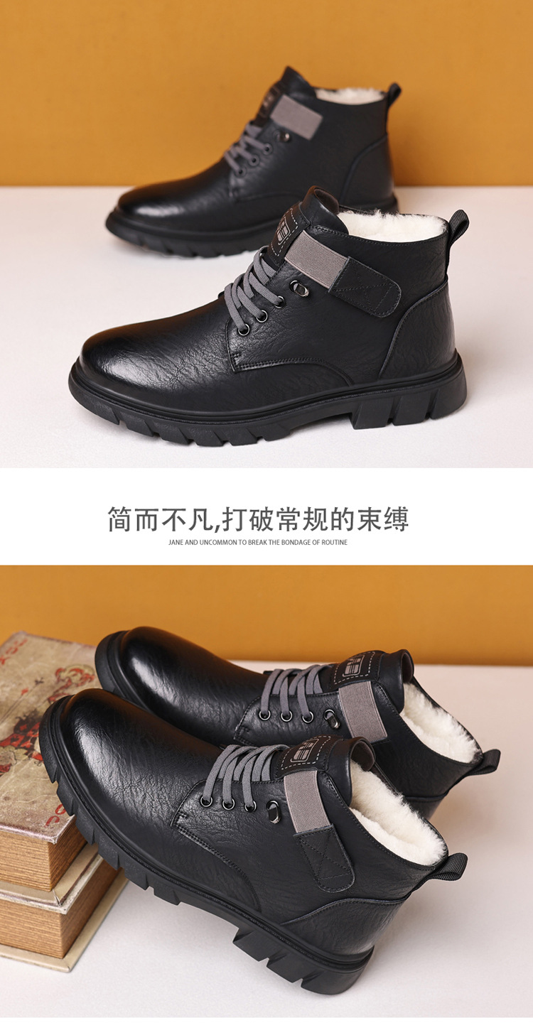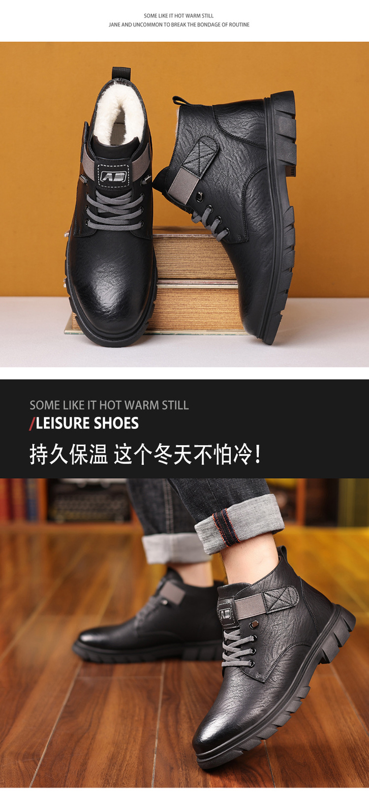 Осенне-зимняя новая мужская хлопковая обувь, утолщенная теплая износостойкая Нескользящая повседневная мужская хлопковая обувь с высоким берцем на флисовой подкладке, Уличная обувь оптом