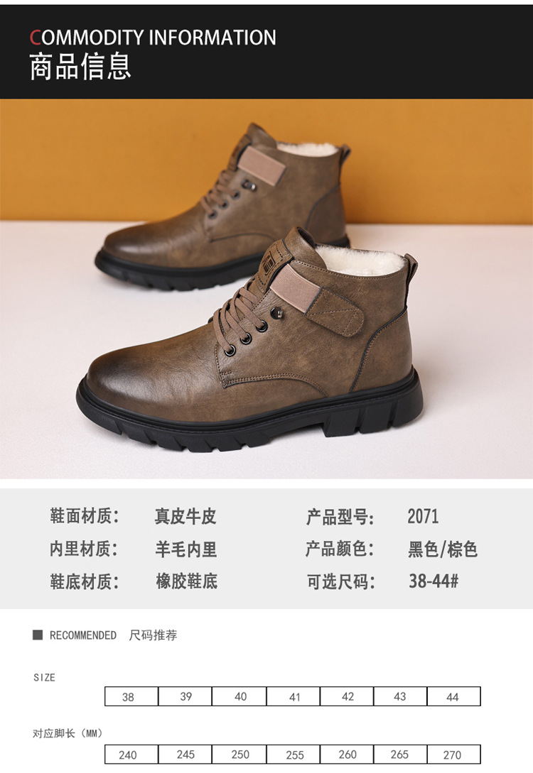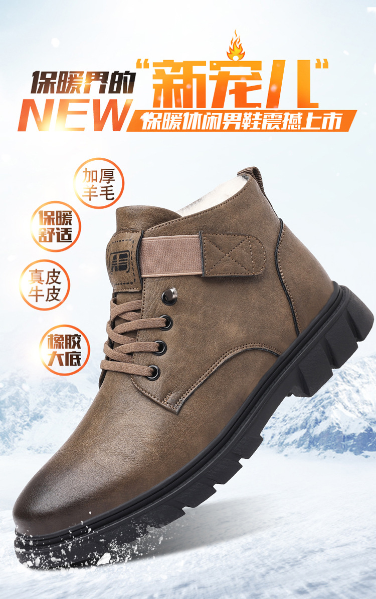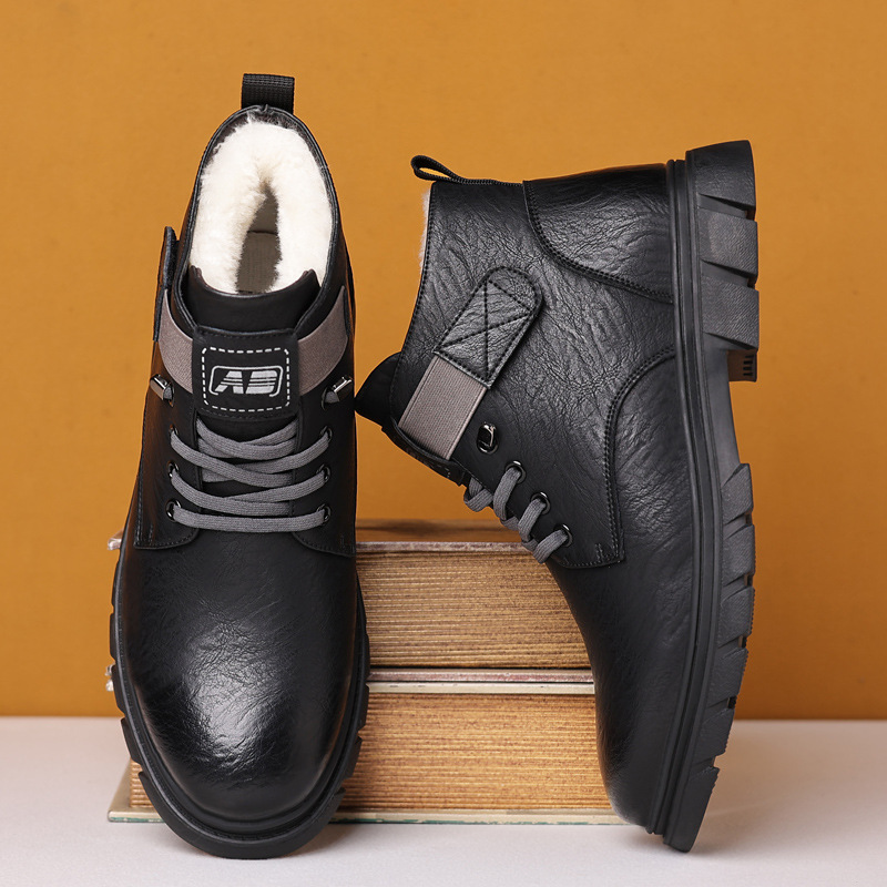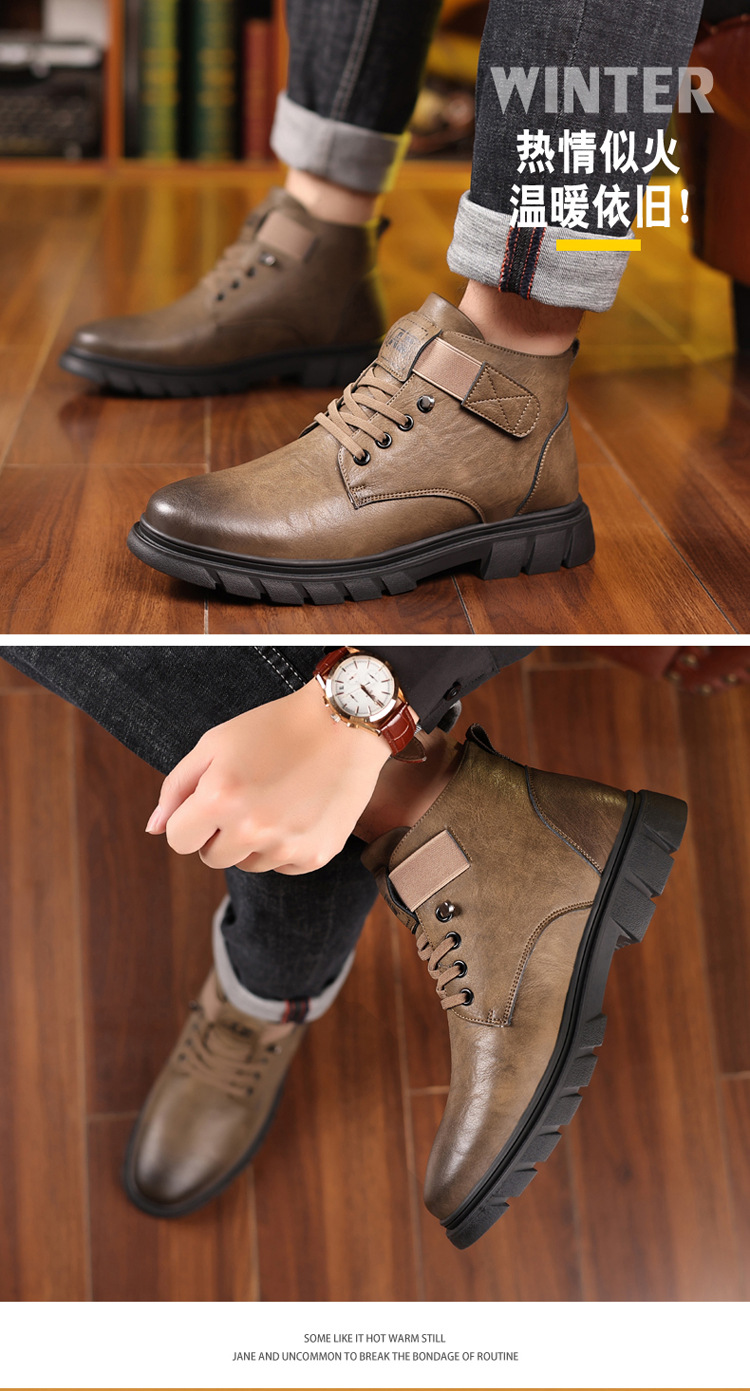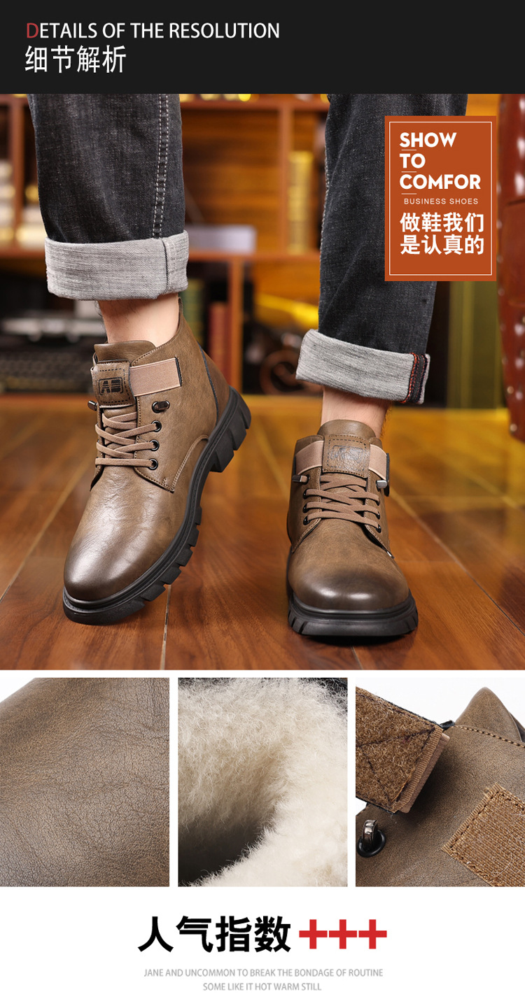 Осенне-зимняя новая мужская хлопковая обувь, утолщенная теплая износостойкая Нескользящая повседневная мужская хлопковая обувь с высоким берцем на флисовой подкладке, Уличная обувь оптом