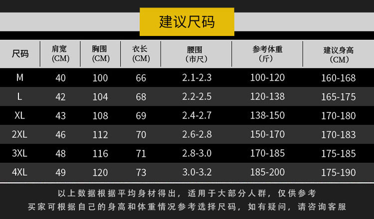 M [Рекомендуется носить 100-120 кг]; L [Рекомендуется носить 120-140 кг]; XL [Рекомендуется носить 140-160 кг]; XXL [Рекомендуется носить 160-180 кг]; 3XL [Рекомендуется носить 180-200 кг]; 4XL [Рекомендуется 200-220 кг]; S [Рекомендуется носить 90-100 кг]