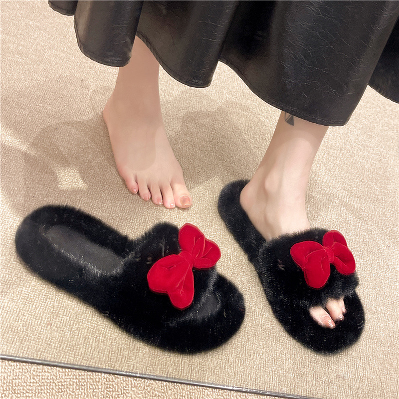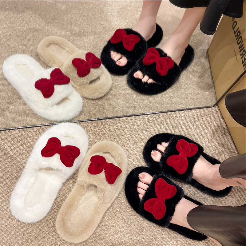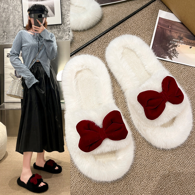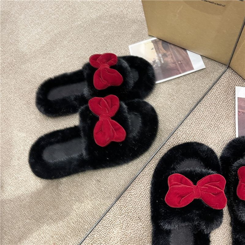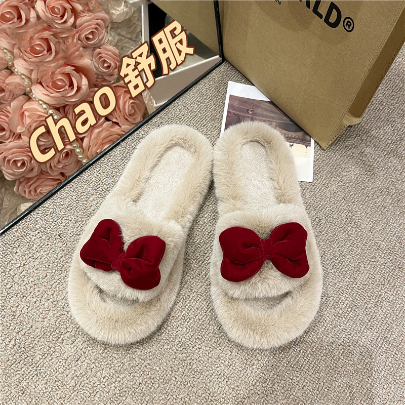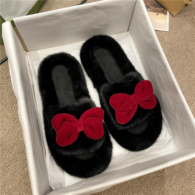 Женские Повседневные тапочки Мао, Shit Sense, 2023, осенне-зимние хлопковые тапочки в новом стиле с бантом и толстой подошвой, ленивые тапочки с одной педалью
