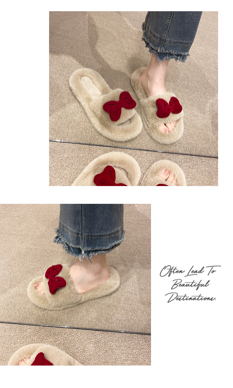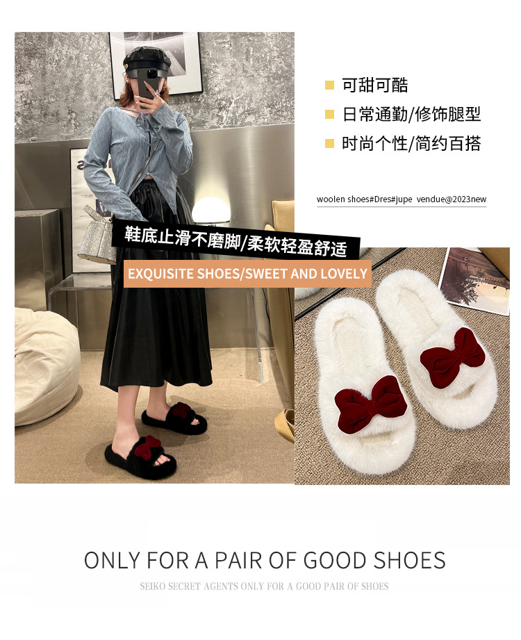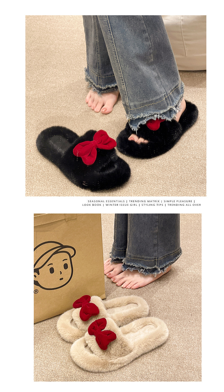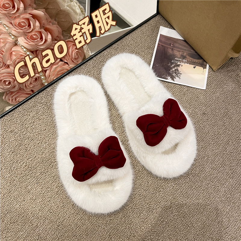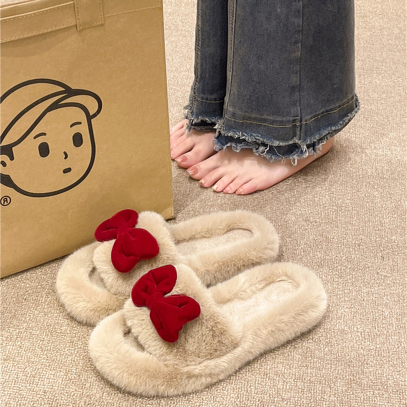 Женские Повседневные тапочки Мао, Shit Sense, 2023, осенне-зимние хлопковые тапочки в новом стиле с бантом и толстой подошвой, ленивые тапочки с одной педалью