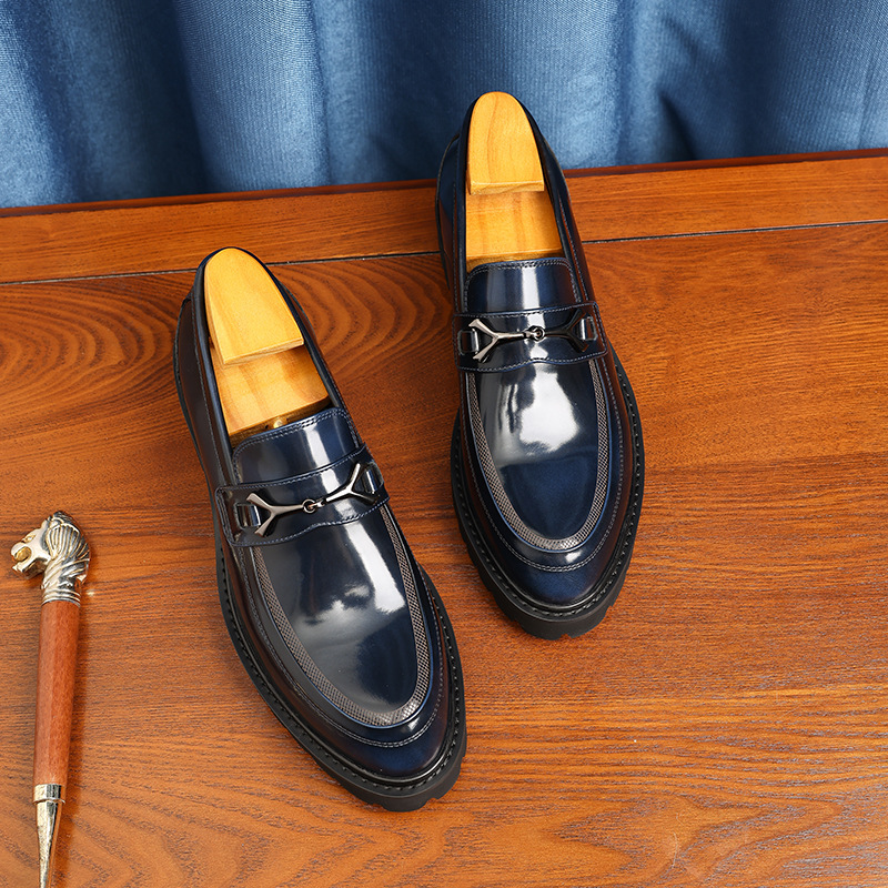 Туфли из кожи лефу на толстой подошве с верхним слоем из воловьей кожи, Мужская модная деловая повседневная обувь, британская одношаговая официальная кожаная обувь
