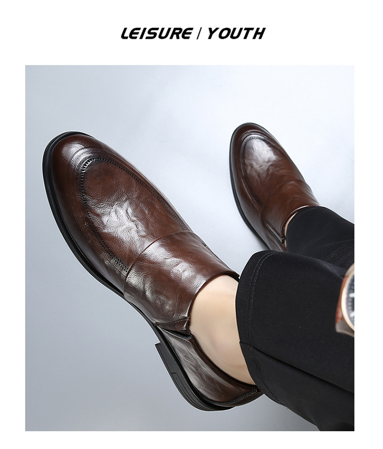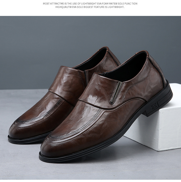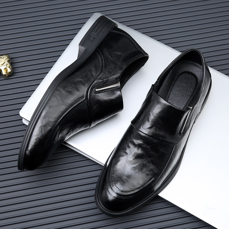 Мужская кожаная обувь, осенняя новая официальная деловая дышащая черная увеличивающая рост кожаная повседневная Свадебная обувь для жениха для мужчин