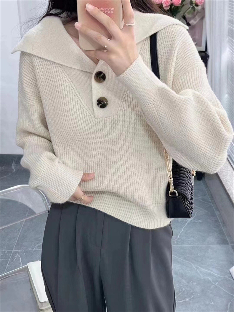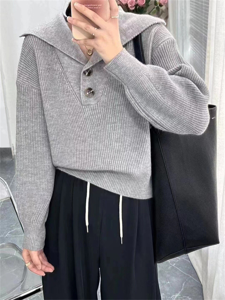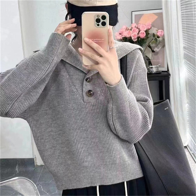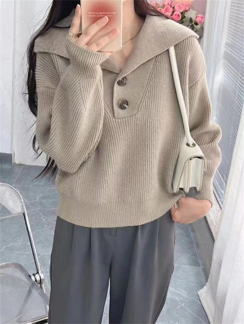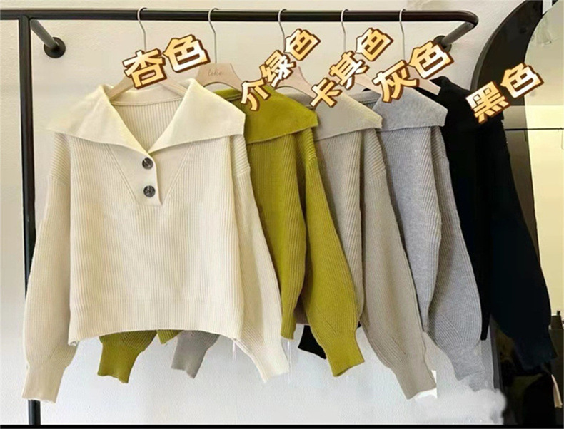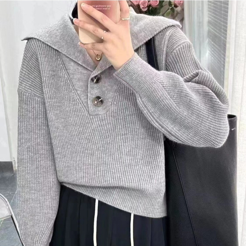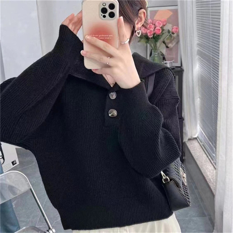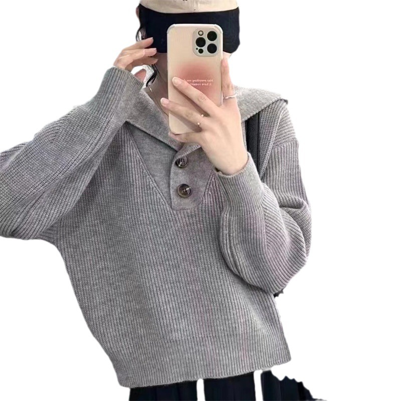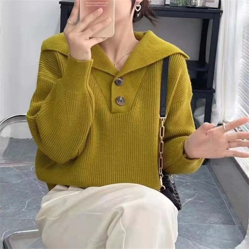 2023 осень и зима новый корейский стиль дизайн смысл Свободный вязаный свитер Топ Ленивый Стиль пуловер с большими лацканами свитер женский модный