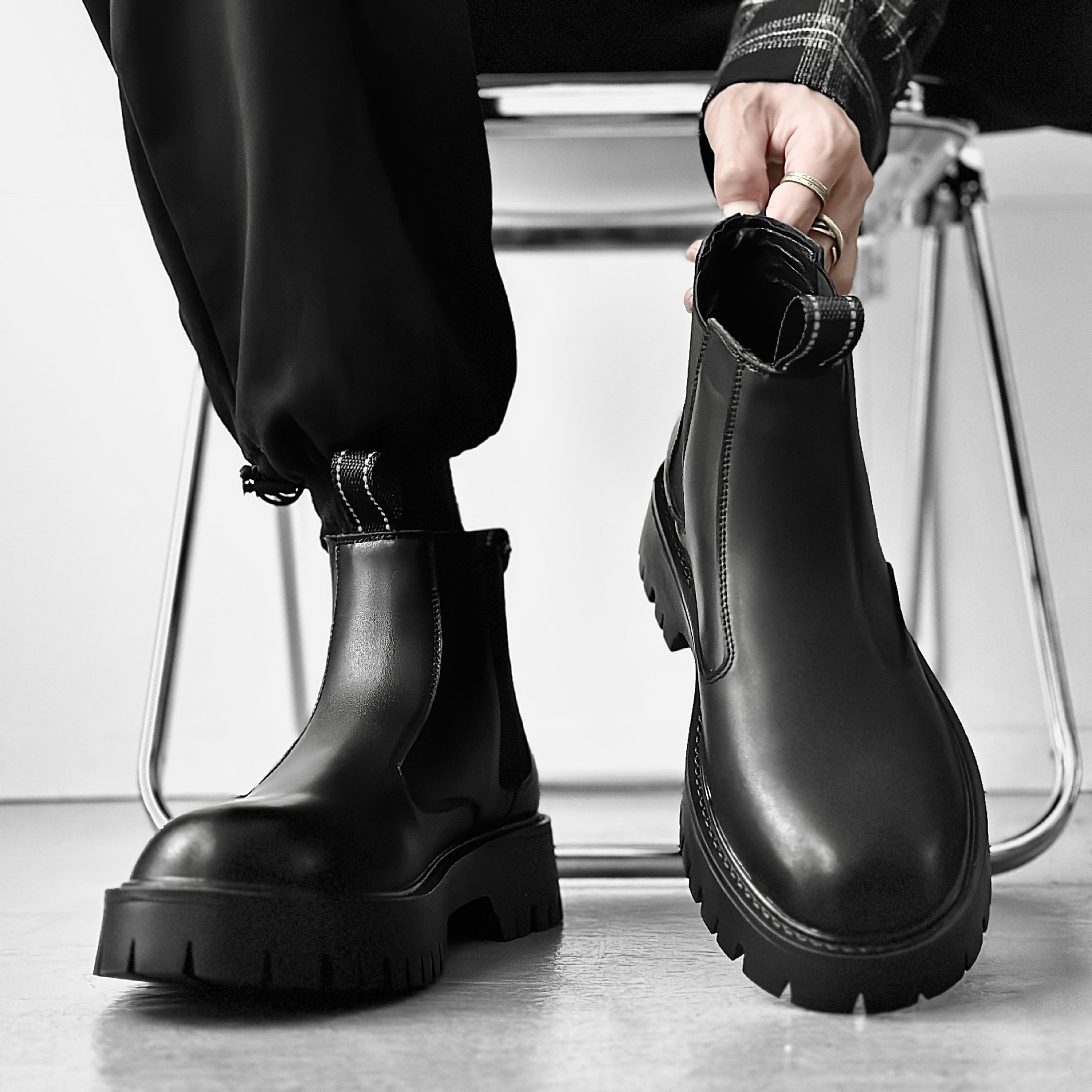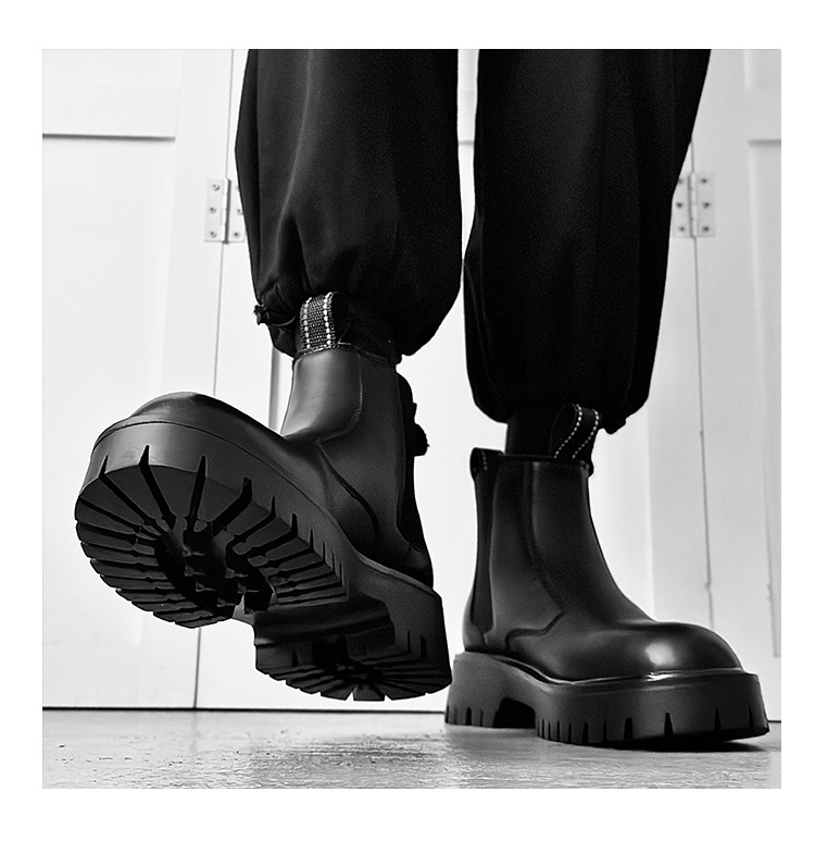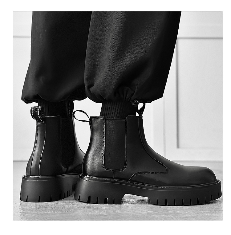 Ботинки Челси, мужские ботинки на толстой подошве в британском стиле, увеличенный низкий верх, Martin, короткие ботинки, мужские высококачественные кожаные туфли с высоким берцем