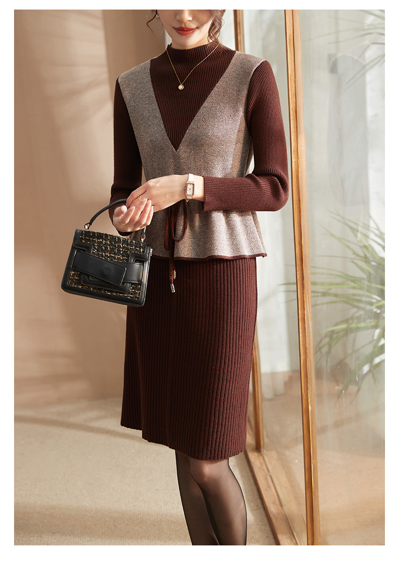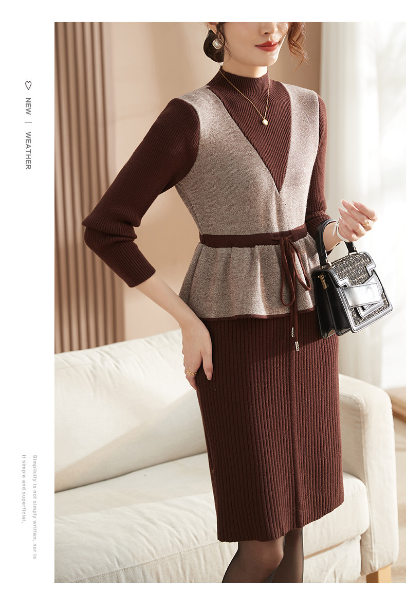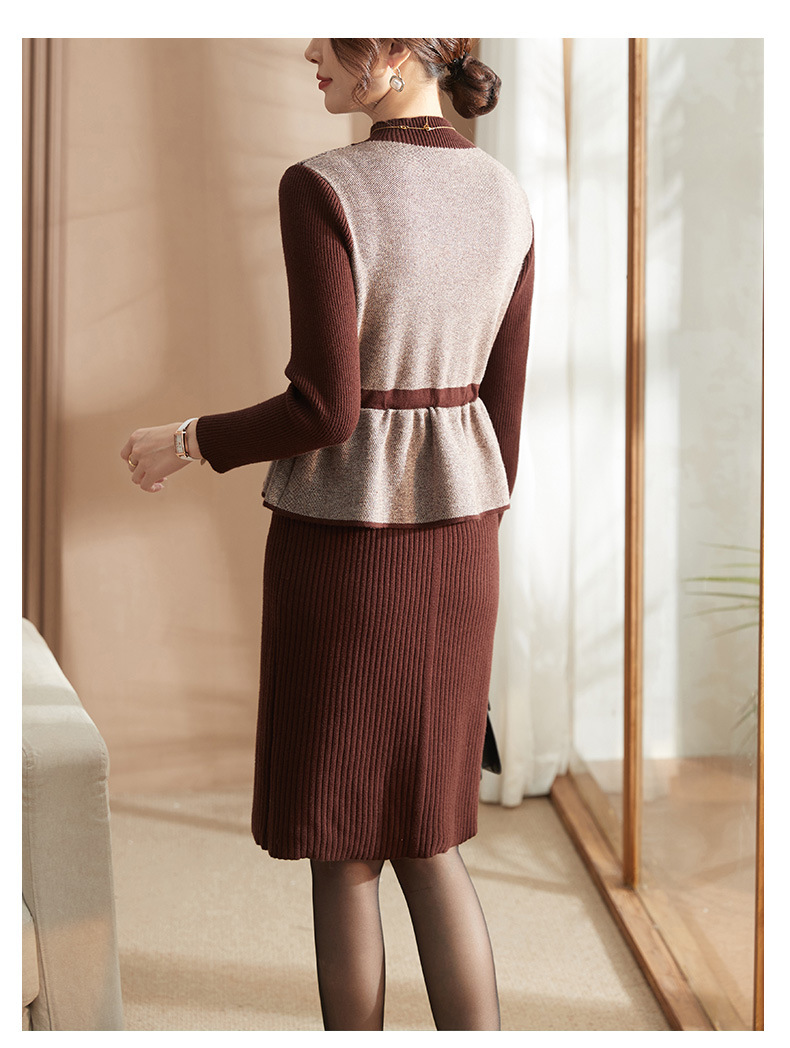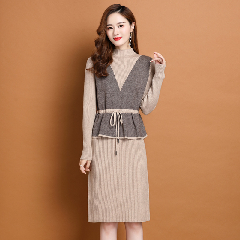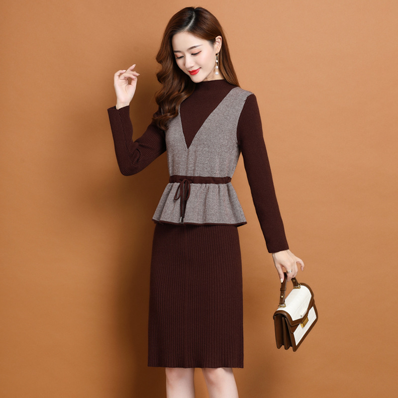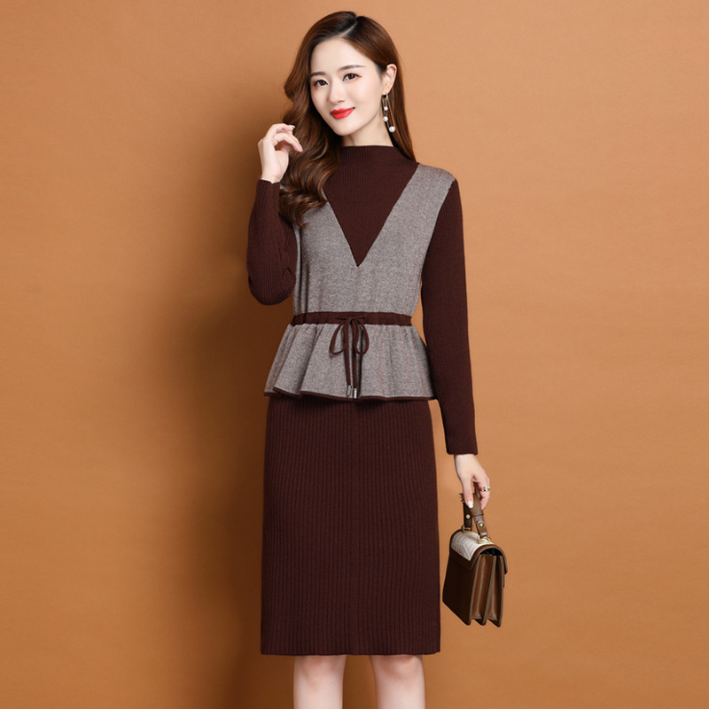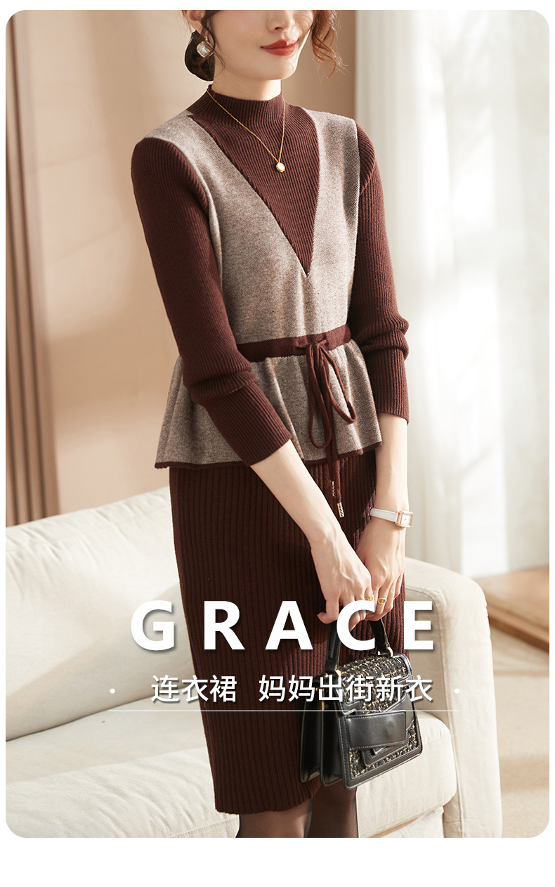 Осеннее платье для мам Платье в иностранном стиле, трикотажное платье-свитер из двух предметов для женщин среднего возраста, вязаная базовая юбка для женщин среднего и старого возраста
