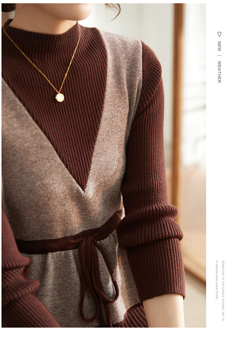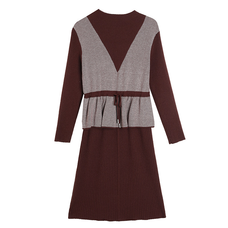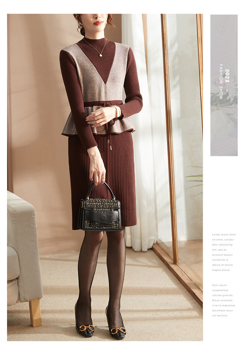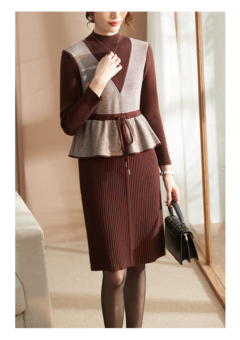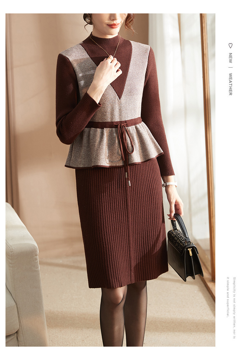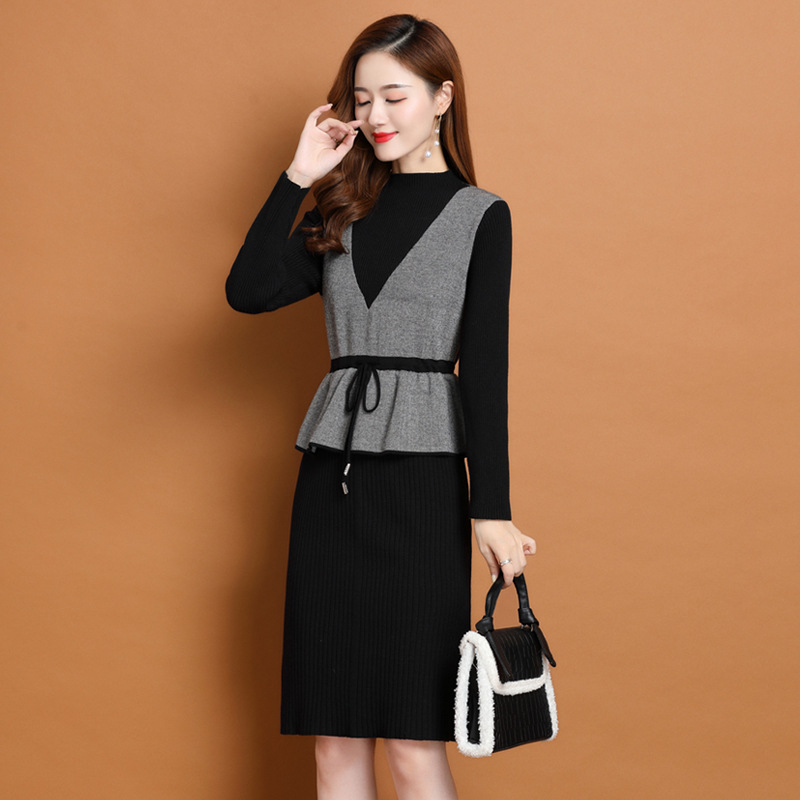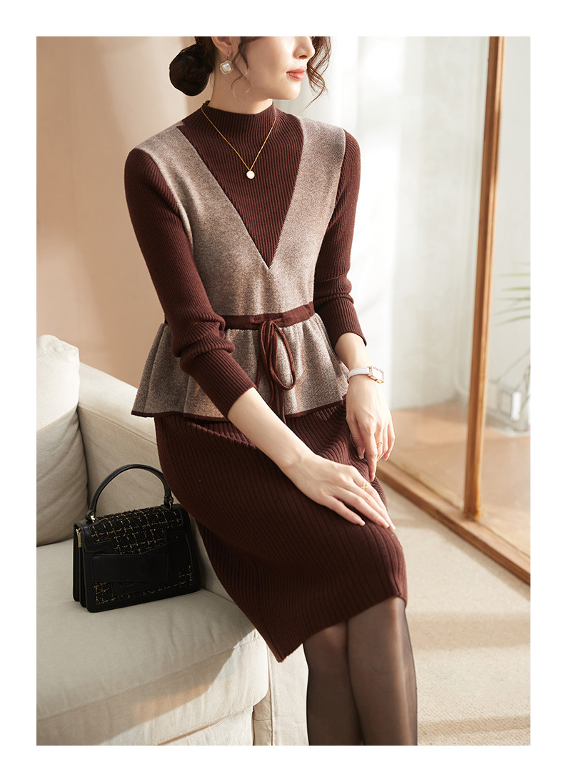 Осеннее платье для мам Платье в иностранном стиле, трикотажное платье-свитер из двух предметов для женщин среднего возраста, вязаная базовая юбка для женщин среднего и старого возраста