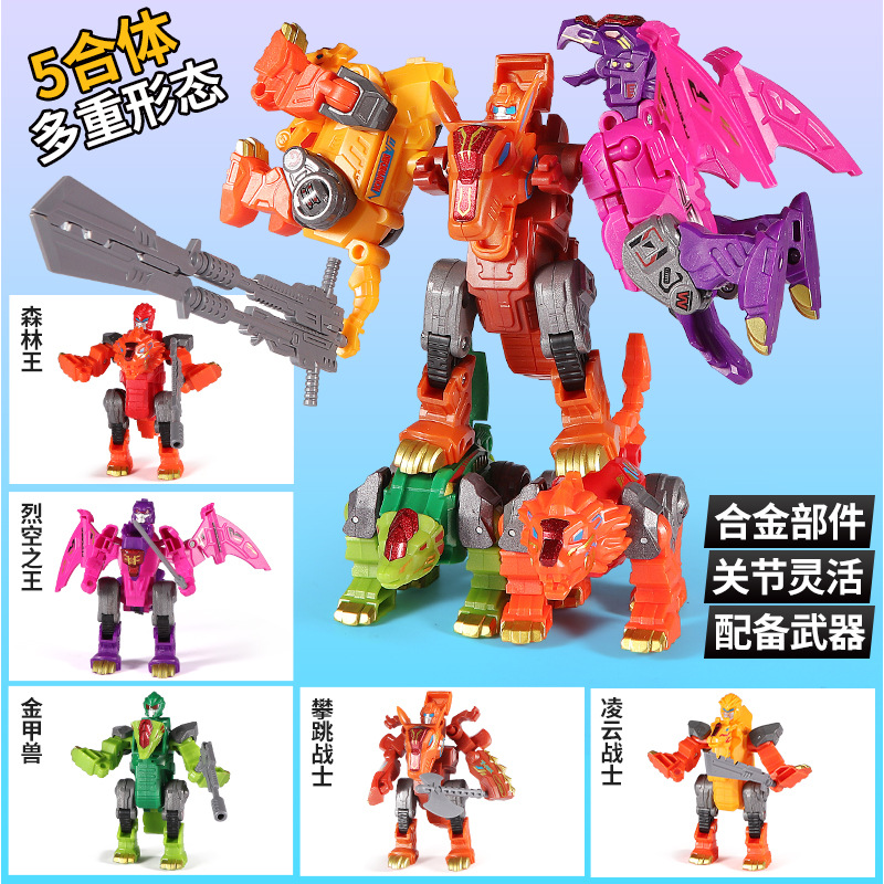 Игрушка-трансформер динозавра робот с пятью телами меха сплав тираннозавр рекс кабель Трицератопс мальчик подарок на день рождения