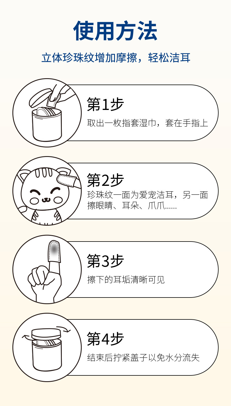 Каждая упаковка салфеток для чистки ушей животных содержит 50 штук, специально разработанных для удаления ушной серы у кошек и собак, изготовленных из гигиенического нетканого материала.
