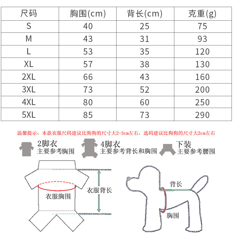 S (рекомендуется обхват груди 40 см 1.5-2.5kg домашних животных); М (рекомендуется обхват груди 43 см 2.5-4kg домашних животных); L (рекомендуется обхват груди 53 см 4-5.5kg домашних животных); XL (рекомендуется обхват груди 57 см 5.5-7kg домашних животных); XXL (рекомендуется обхват груди 66 см 7.5-10kg домашних животных); 3XL (рекомендуется обхват груди 73 см 10.5-13.5kg домашних животных); 4XL (рекомендуется обхват груди 80 см 14-20kg домашних животных); 5XL (рекомендуется обхват груди 85 см 20.5-30kg домашних животных)
