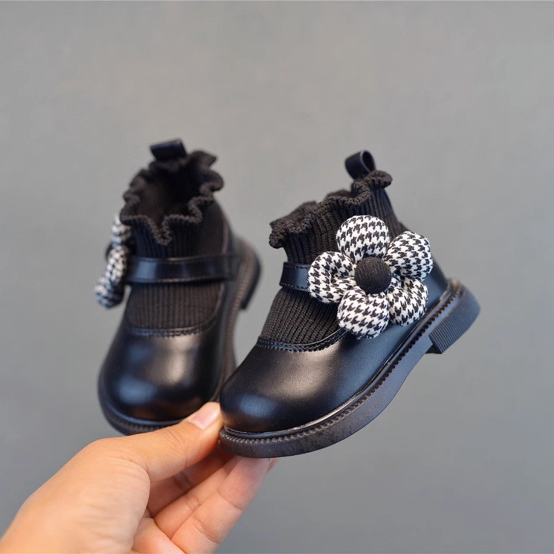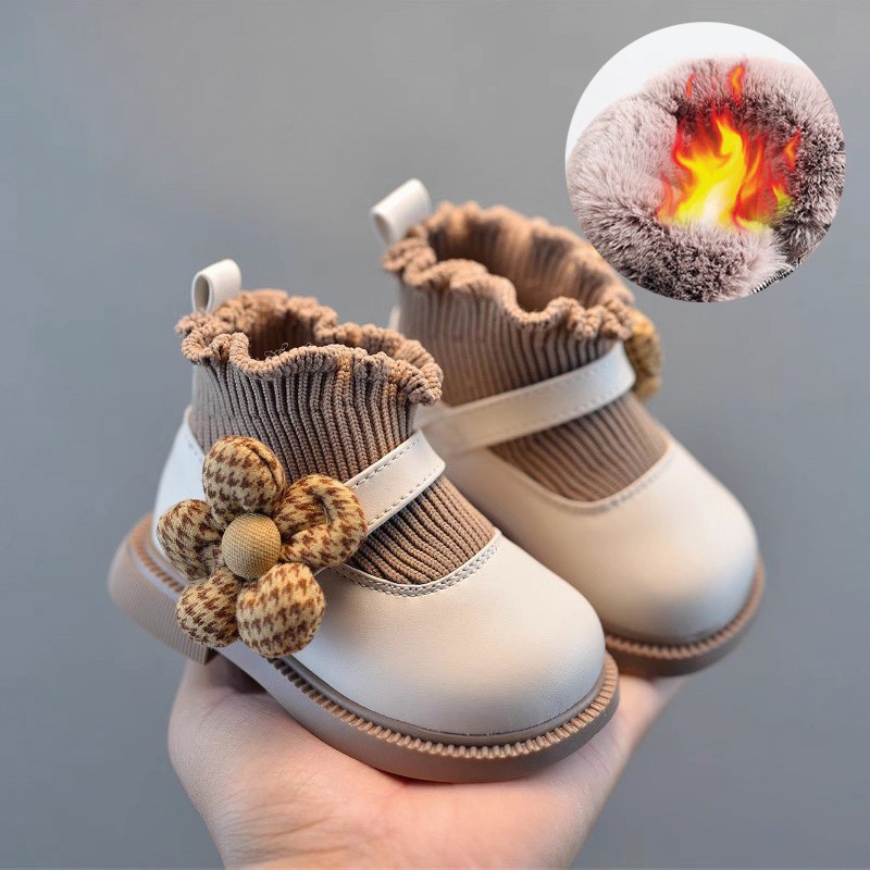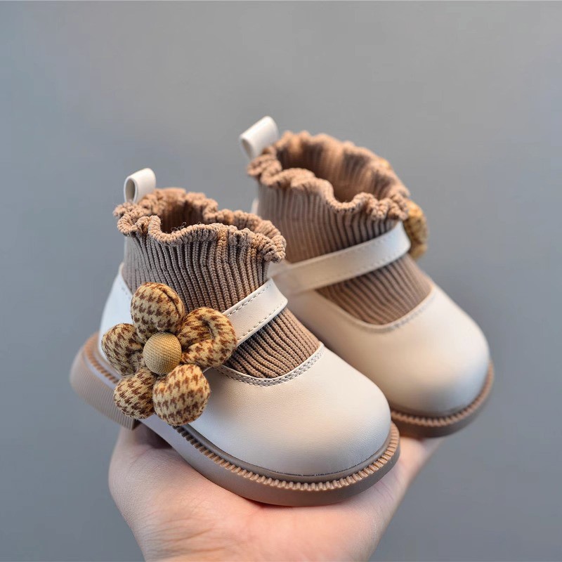 Женская детская обувь, новинка, корейские осенне-зимние короткие сапоги принцессы с подсолнухом, стильная обувь для малышей, нескользящая Мягкая подошва, слипоны
