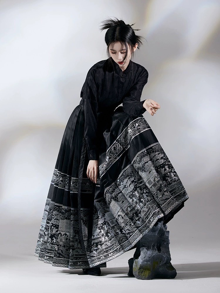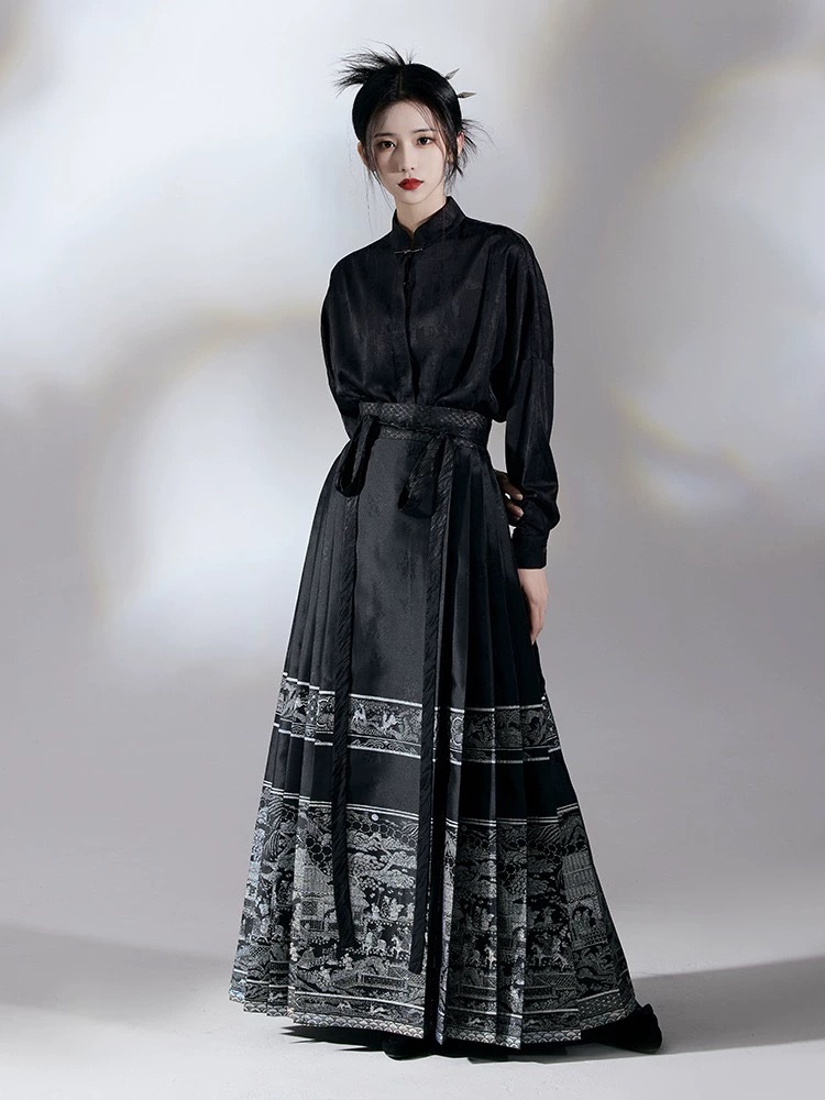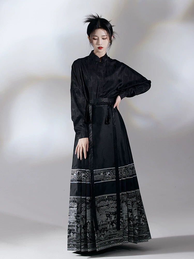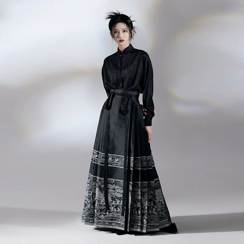 Новый легкий костюм с юбкой в китайском стиле в национальном стиле, женский осенний топ с длинными рукавами и полуюбкой, комплект из двух предметов