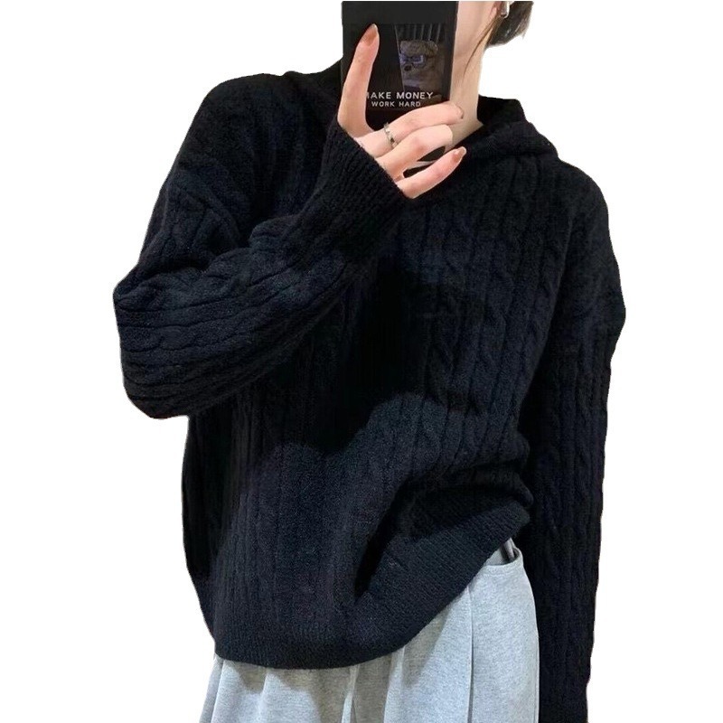 Женский свитер в ленивом стиле с капюшоном Twist в Корейском стиле, Новинка осени и зимы 2023, повседневный Универсальный Свободный вязаный пуловер для женщин