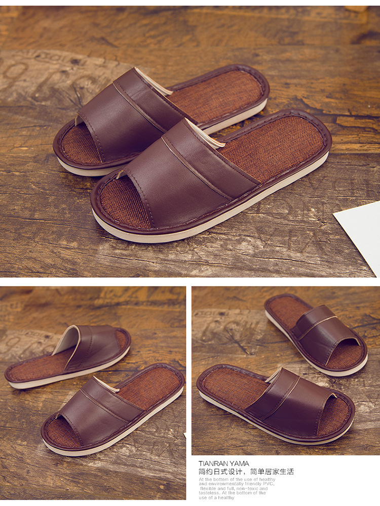 Пара Корейская версия льняных тапочек домашние мужские и женские тапочки летние домашние противоскользящие кожаные тапочки с толстой подошвой