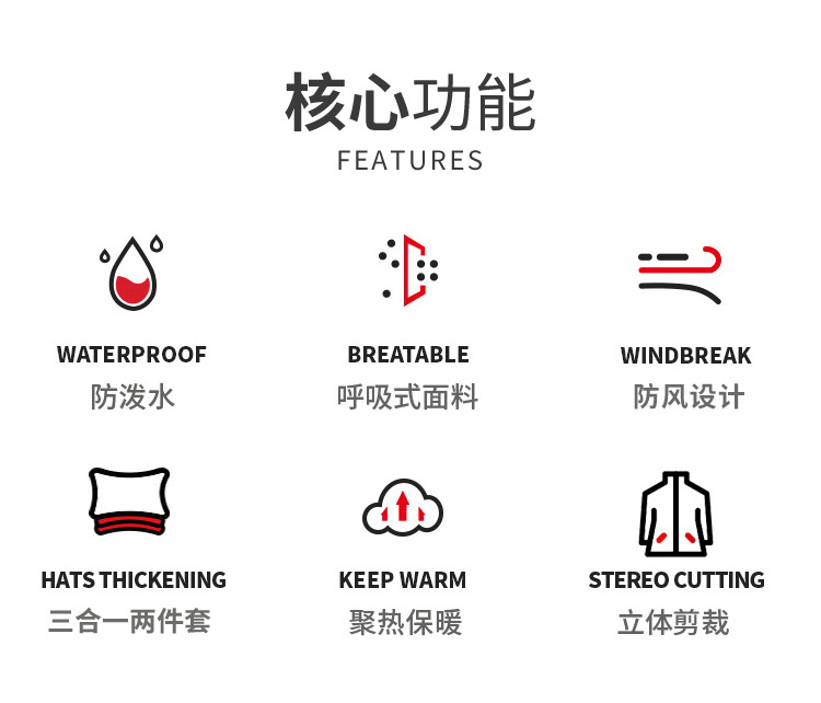Дышащий; Водонепроницаемый; Теплый; Сопротивление носки; Ветрозащитный