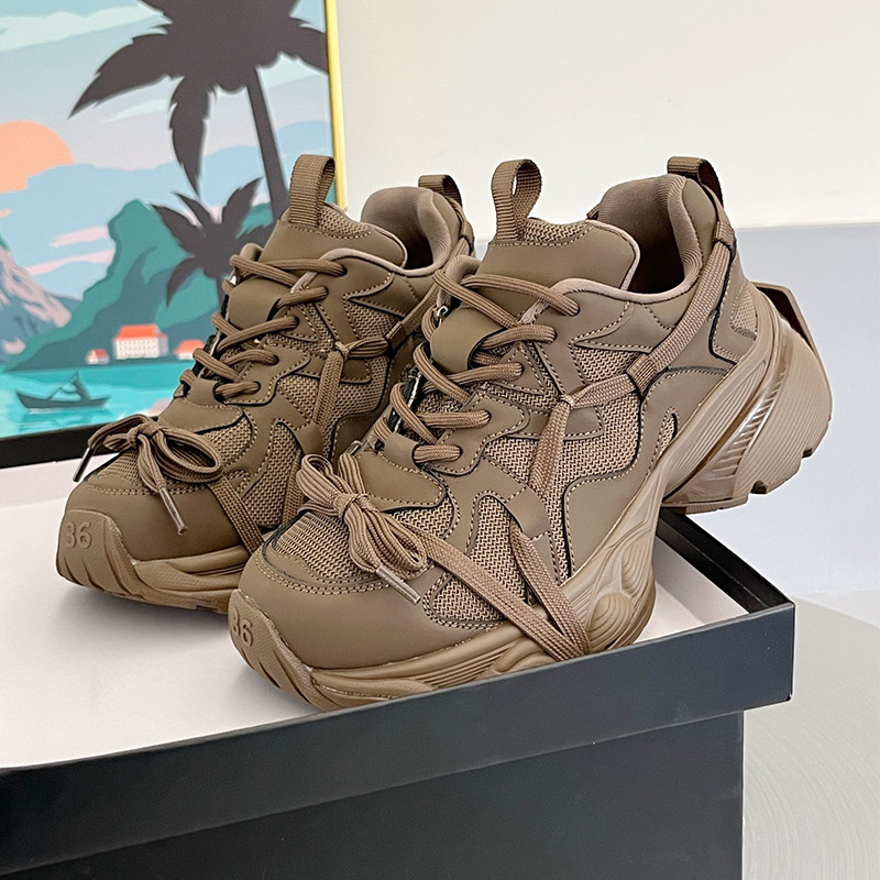 Женские туфли из натуральной европейской кожи, новинка 2024 года, европейская мода, на толстой платформе, на шнуровке, повседневные, в стиле "dad shoes", кроссовки