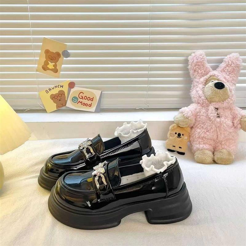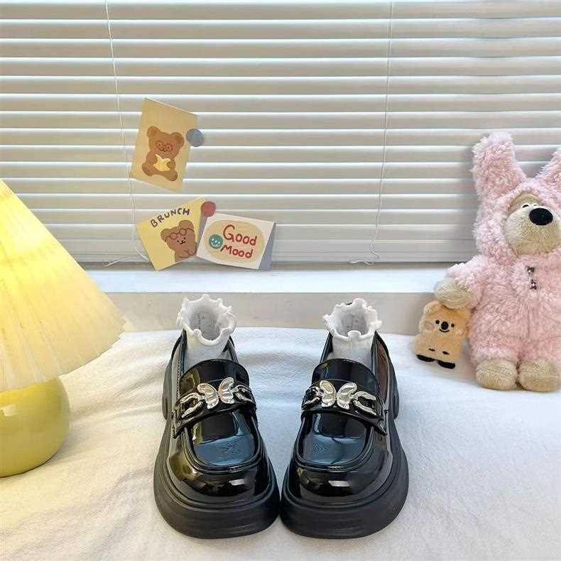 JVBG Кожаные туфли в британском стиле, женская обувь 2023 Осенние новые лоферы-каффы на толстой подошве универсальные туфли Mary Jane