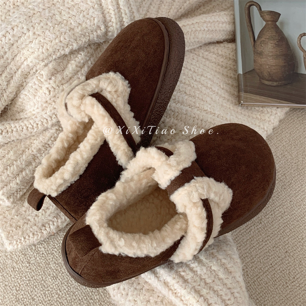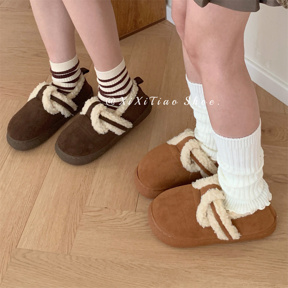 Детские корейские тапочки Все включено Хлопковые тапочки для родителей и детей Модная теплая плюшевая верхняя одежда на флисовой подкладке для девочек Повседневная обувь Birkenneth