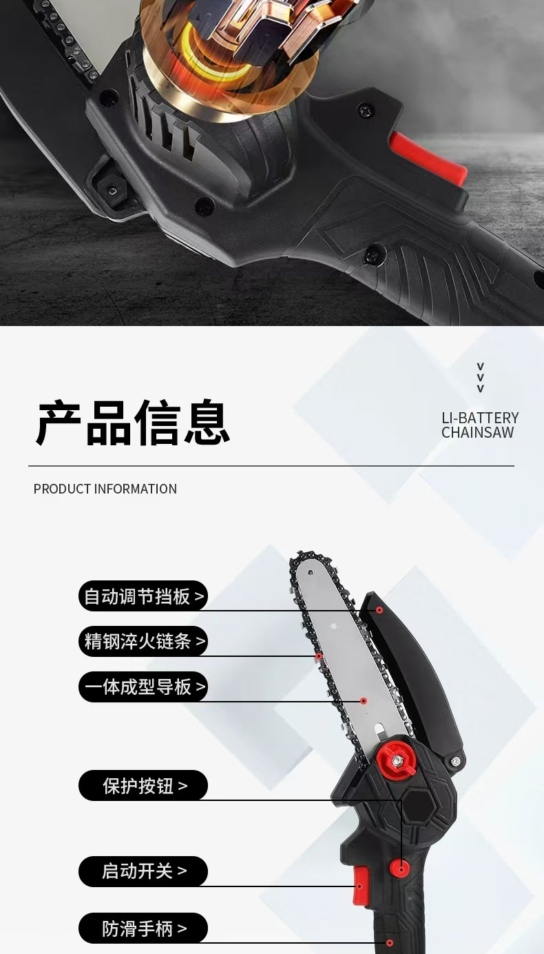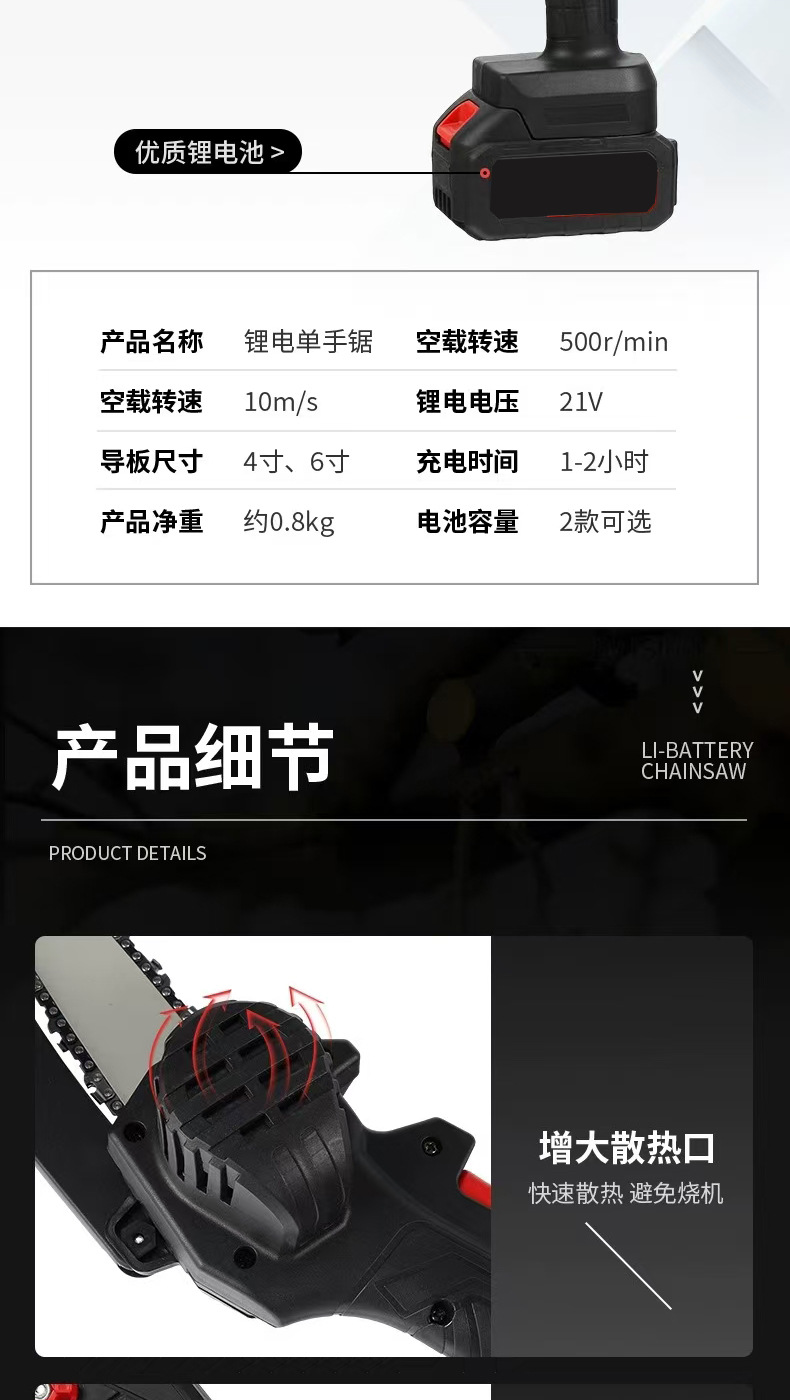 4-дюймовая 6-дюймовая ручная литиевая бензопила зарядная портативная бензопила наружная беспроводная маленькая лесозаготовка одноручная пила