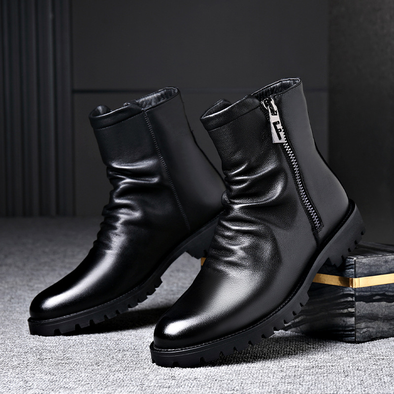 2024 Осень и зима Мартин сапоги мужчины в британском стиле кожаные сапоги высокие кожаные туфли на молнии модные теплые сапоги челси
