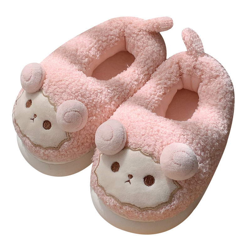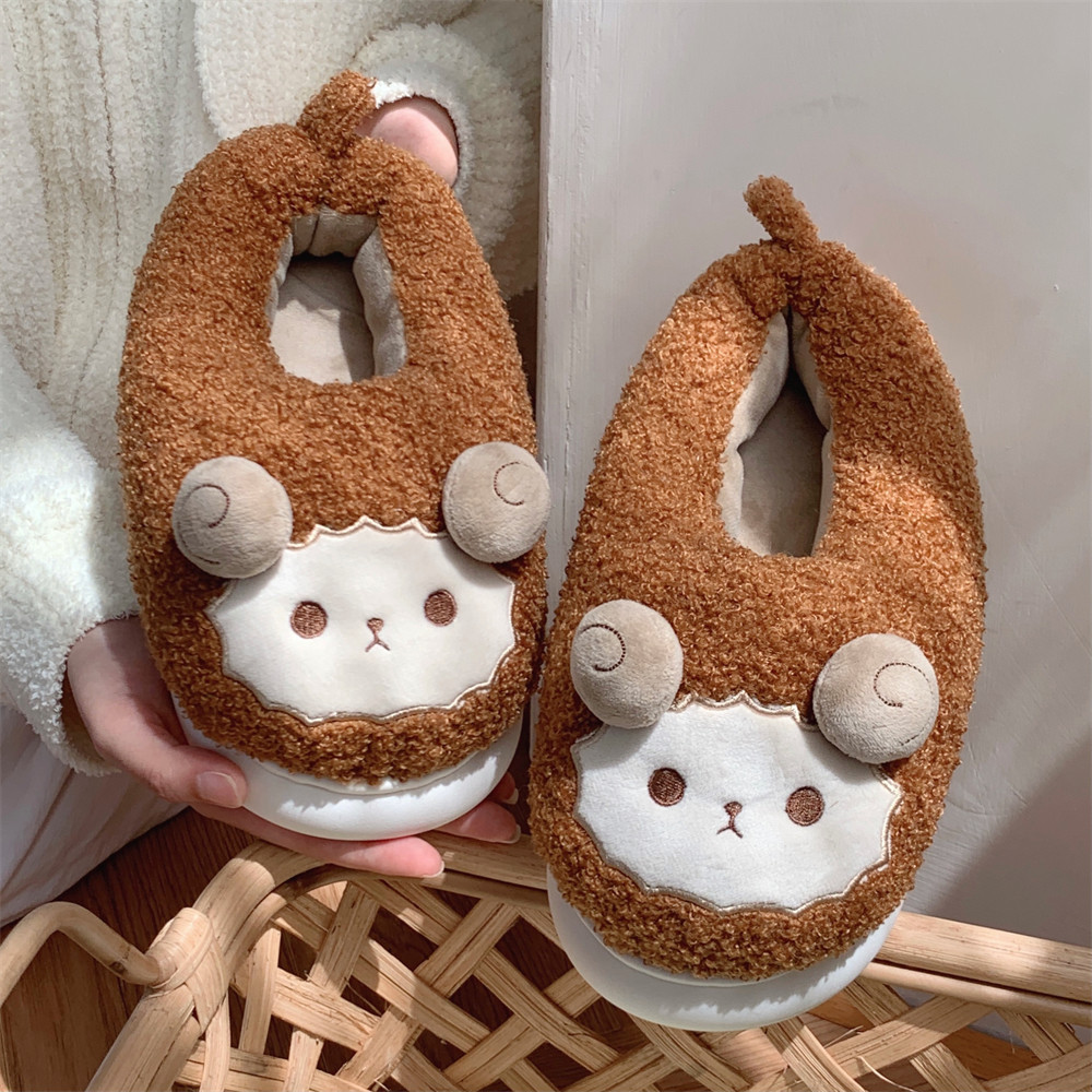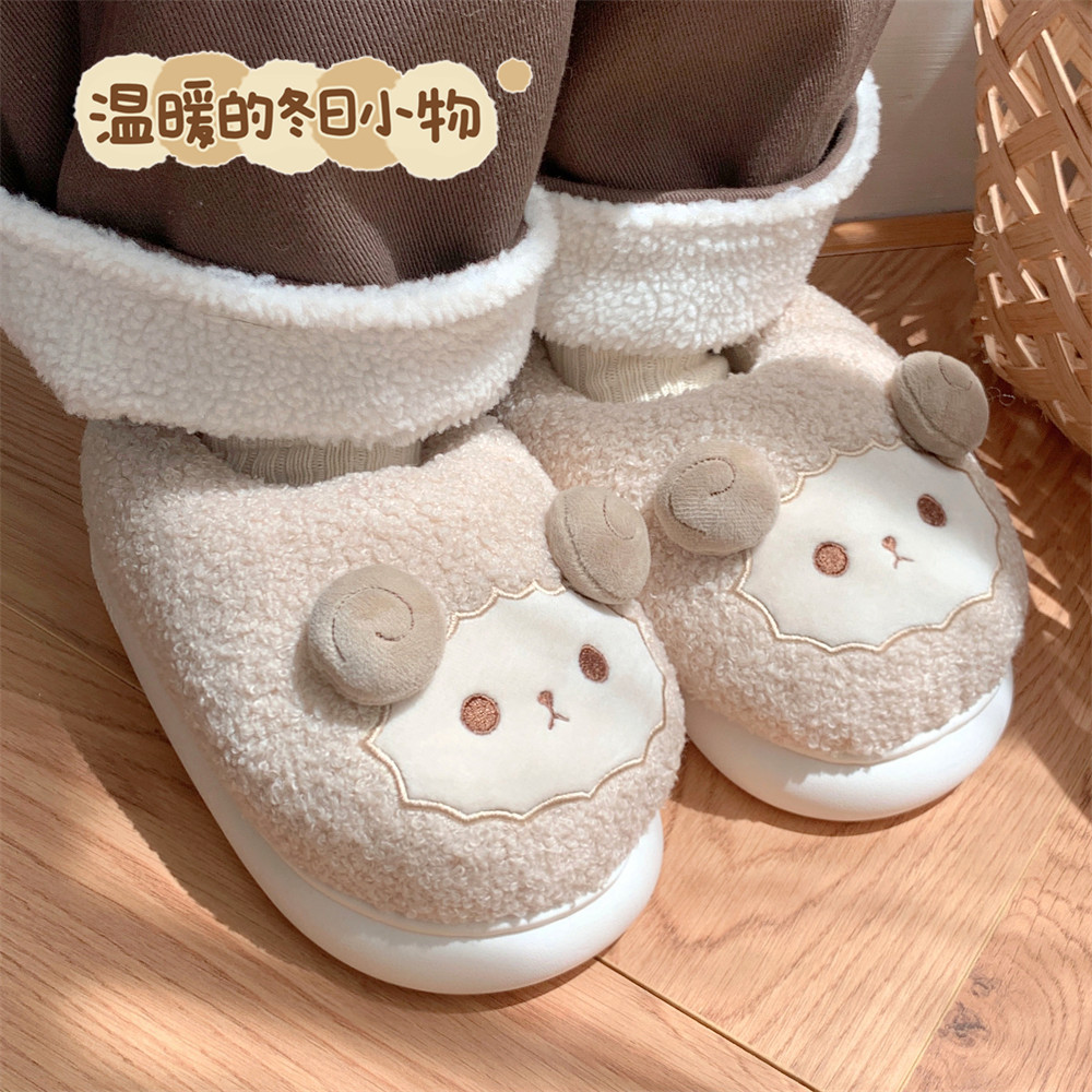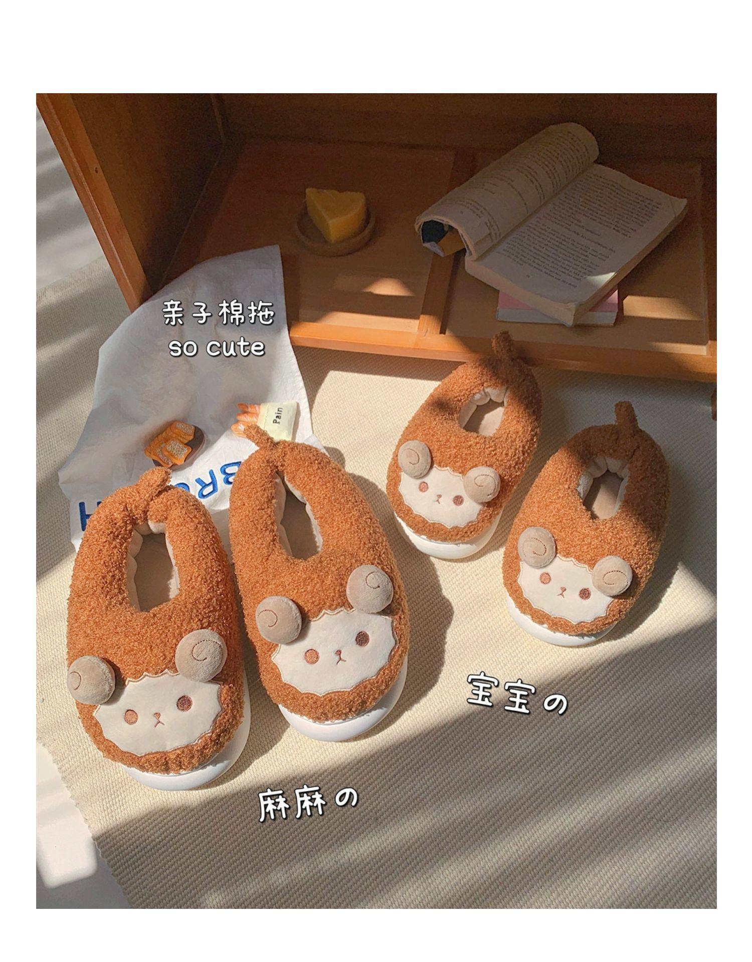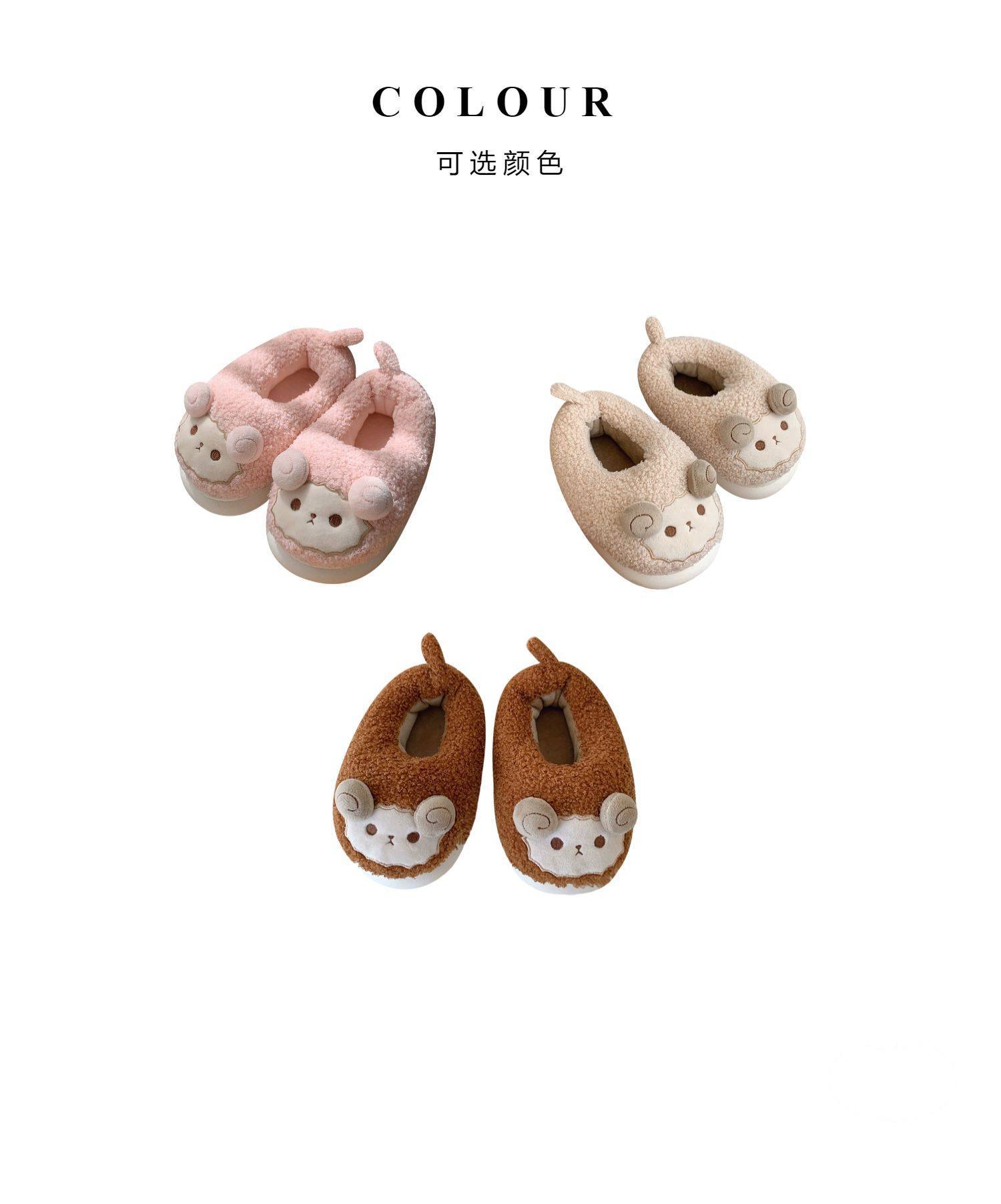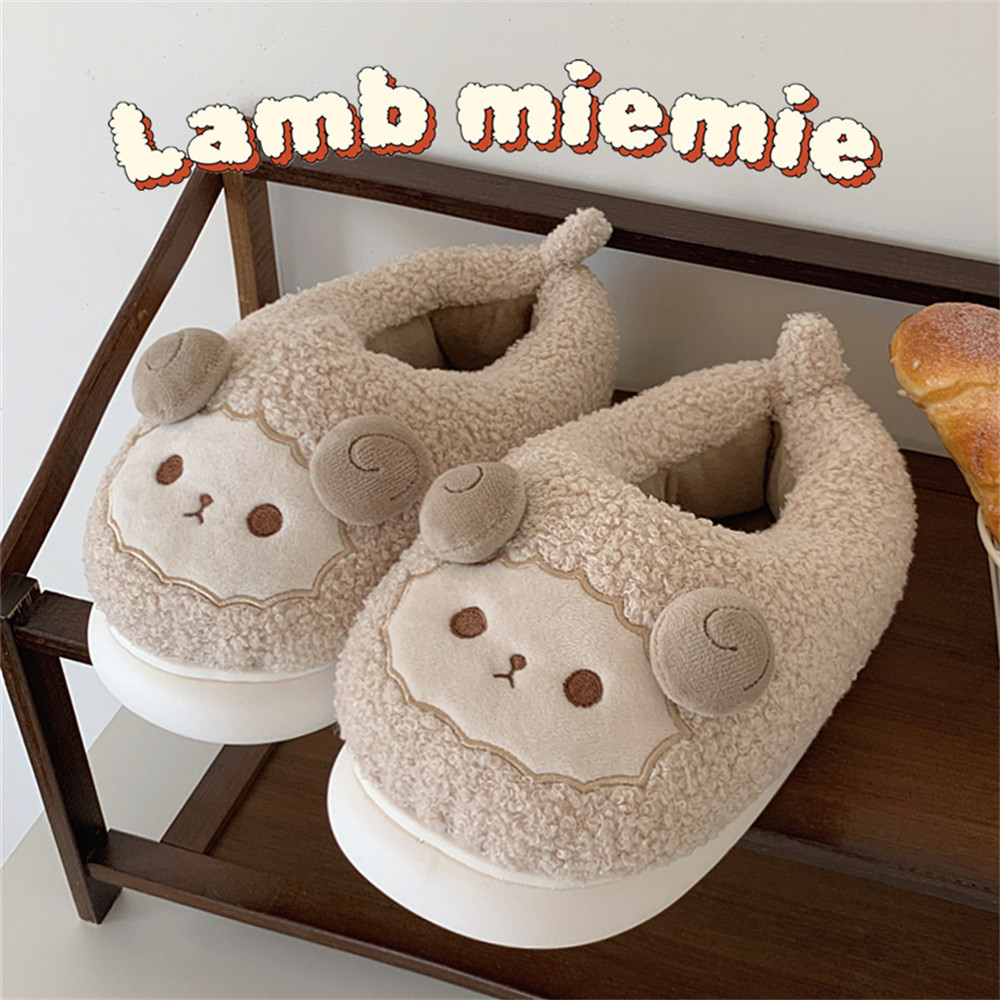Зимние мягкие милые детские хлопковые тапочки с ягненком для девочек, нескользящая теплая плюшевая хлопковая обувь на полном каблуке для дома