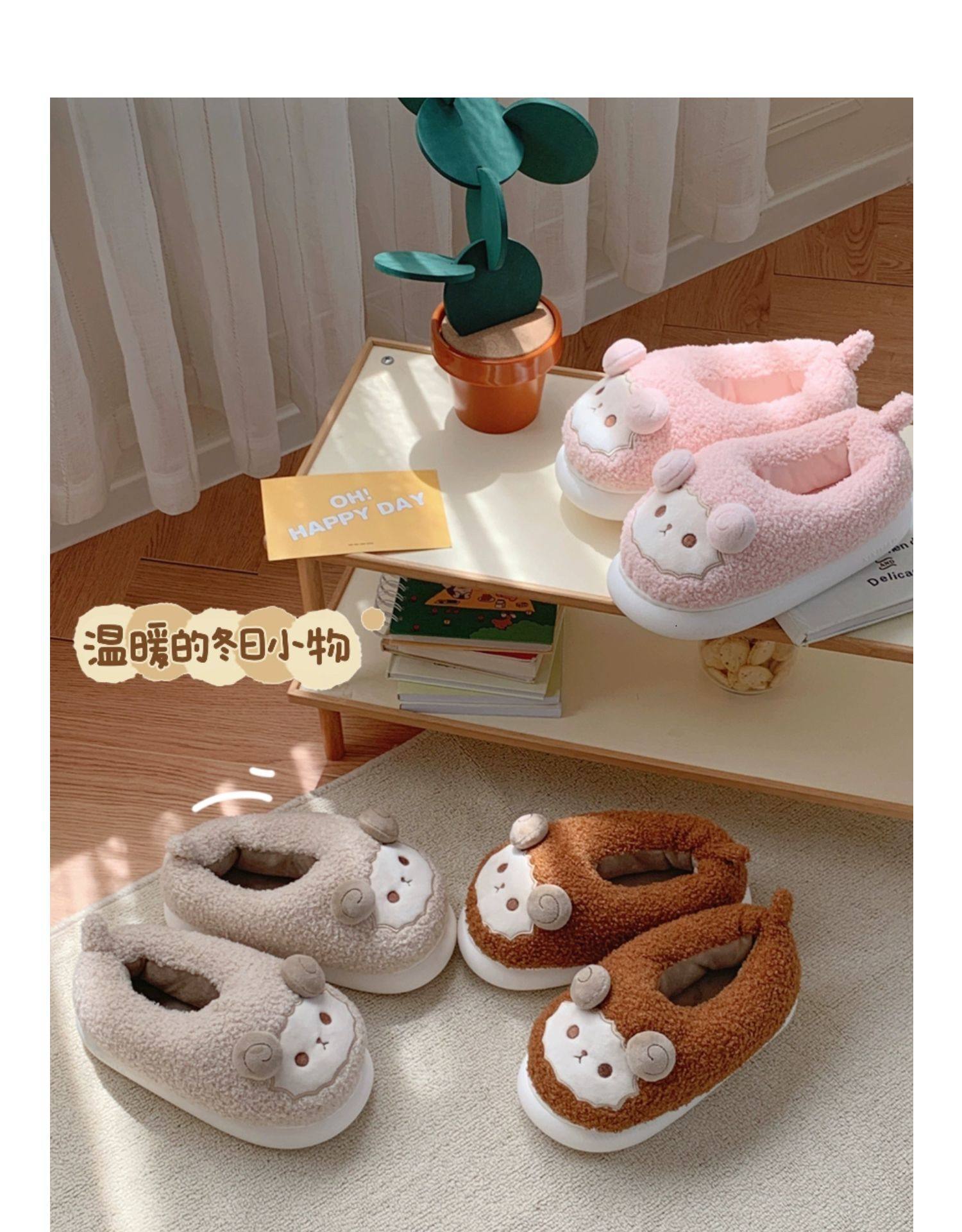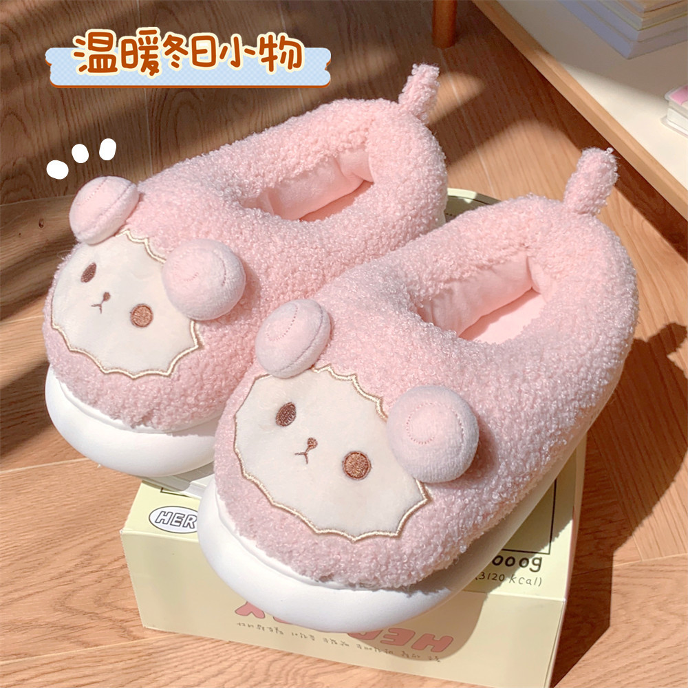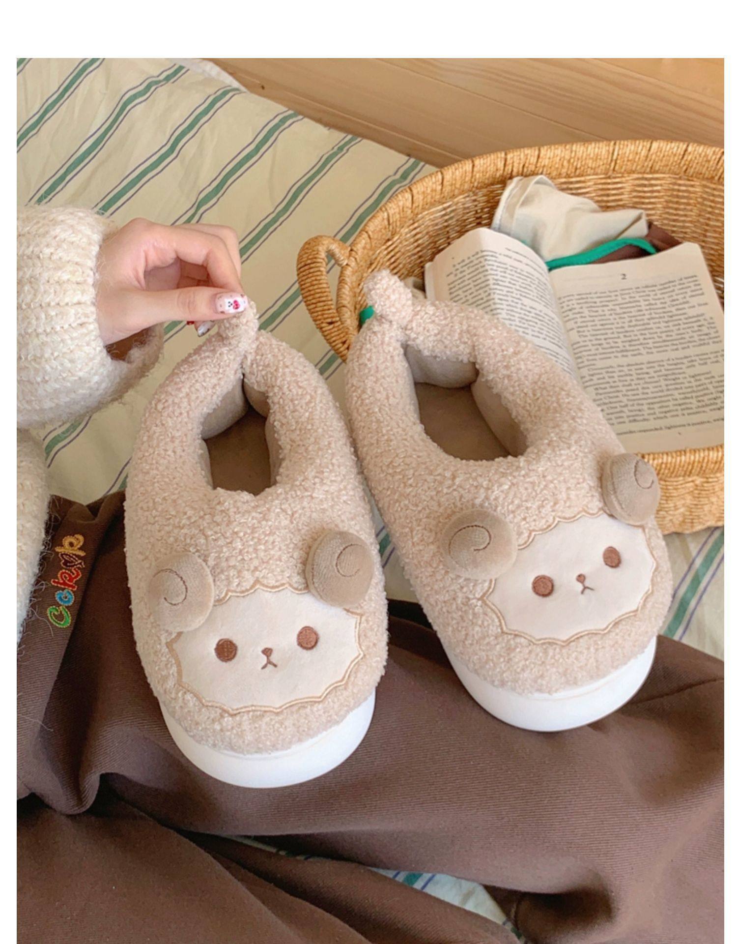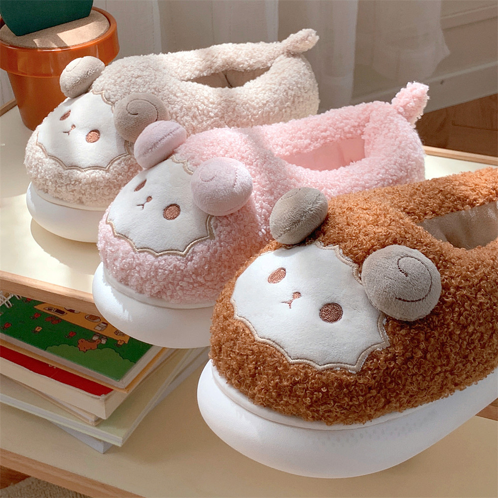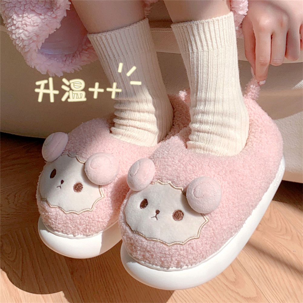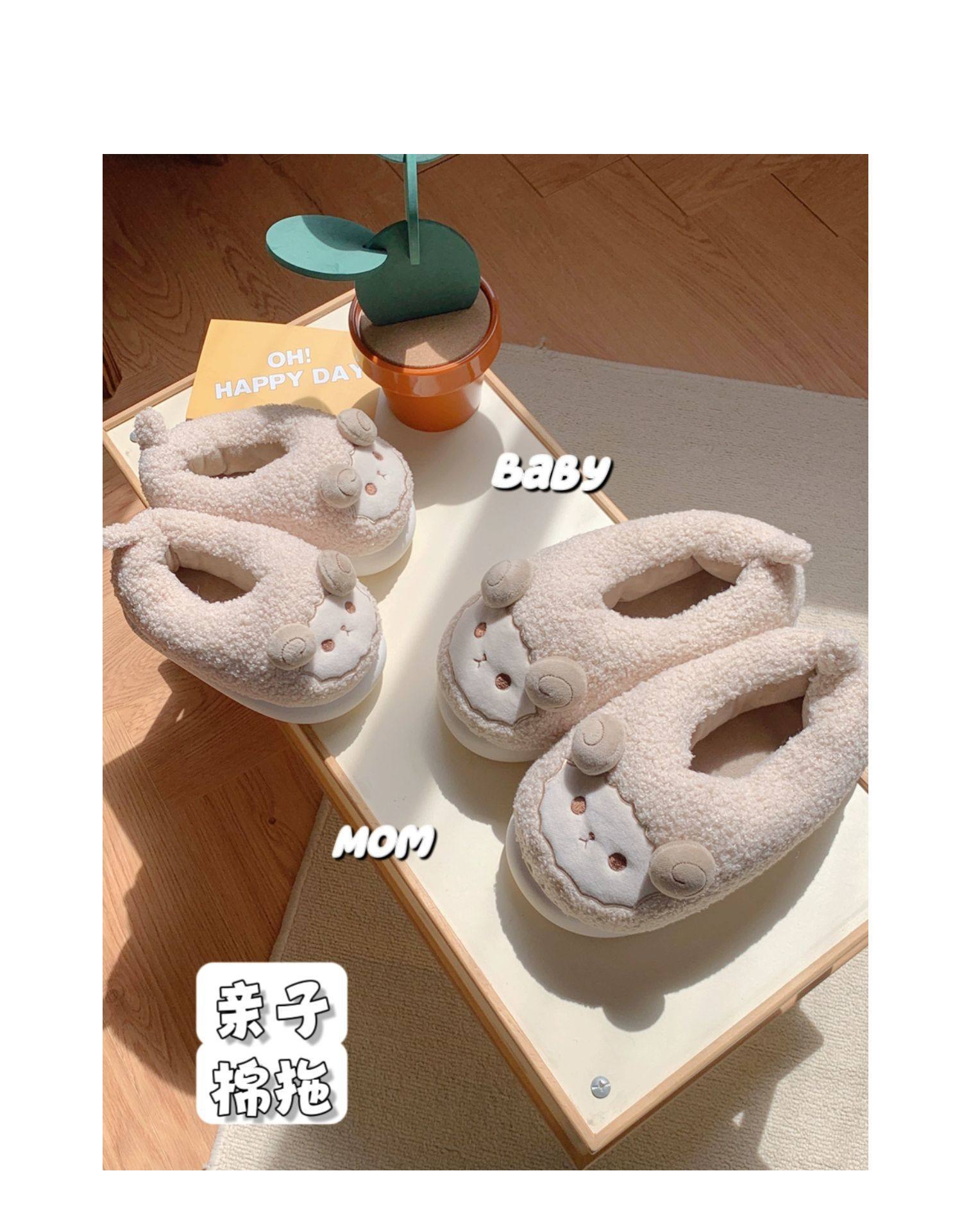 Зимние мягкие милые детские хлопковые тапочки с ягненком для девочек, нескользящая теплая плюшевая хлопковая обувь на полном каблуке для дома