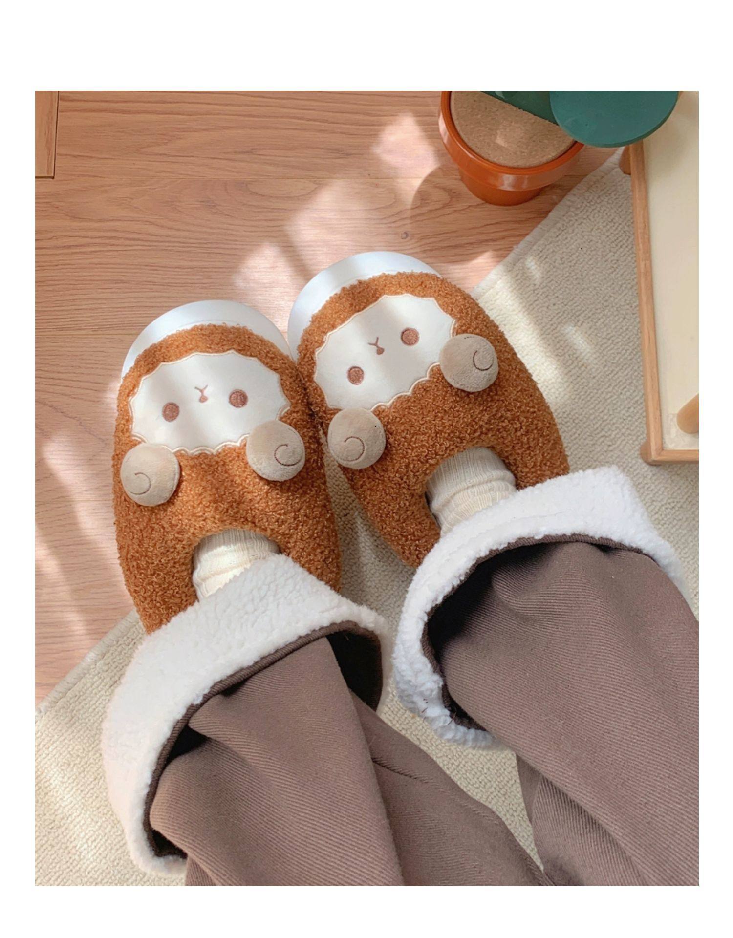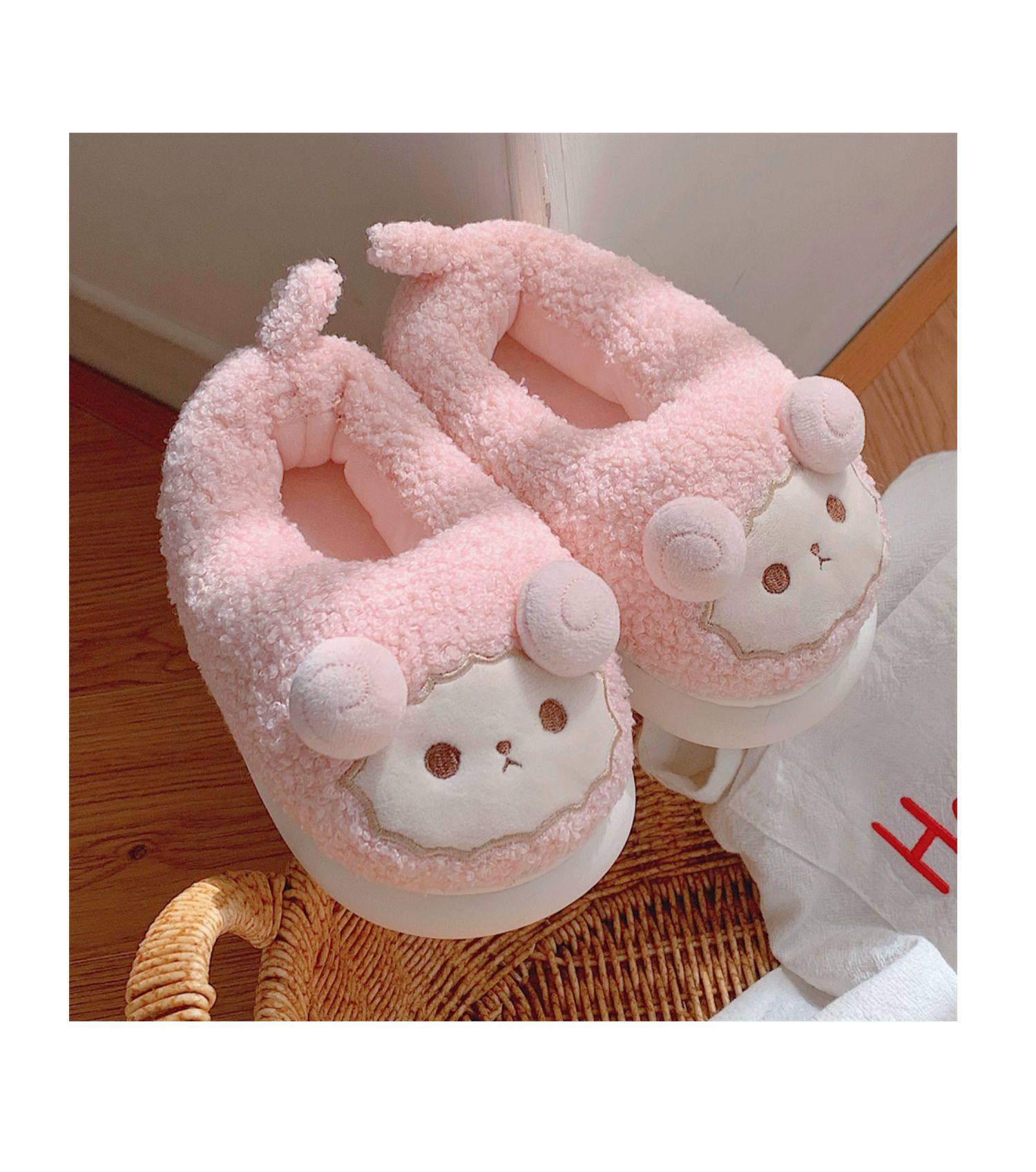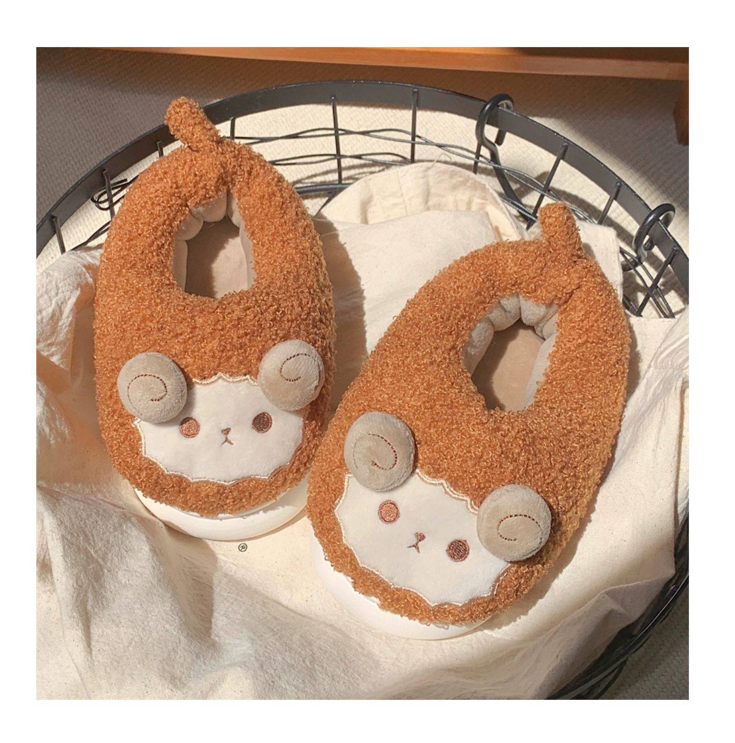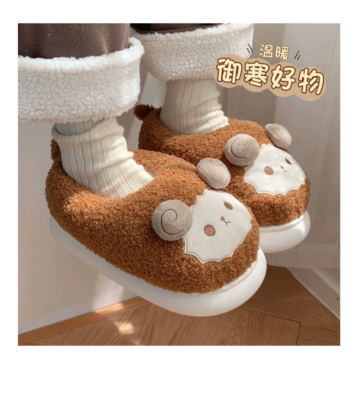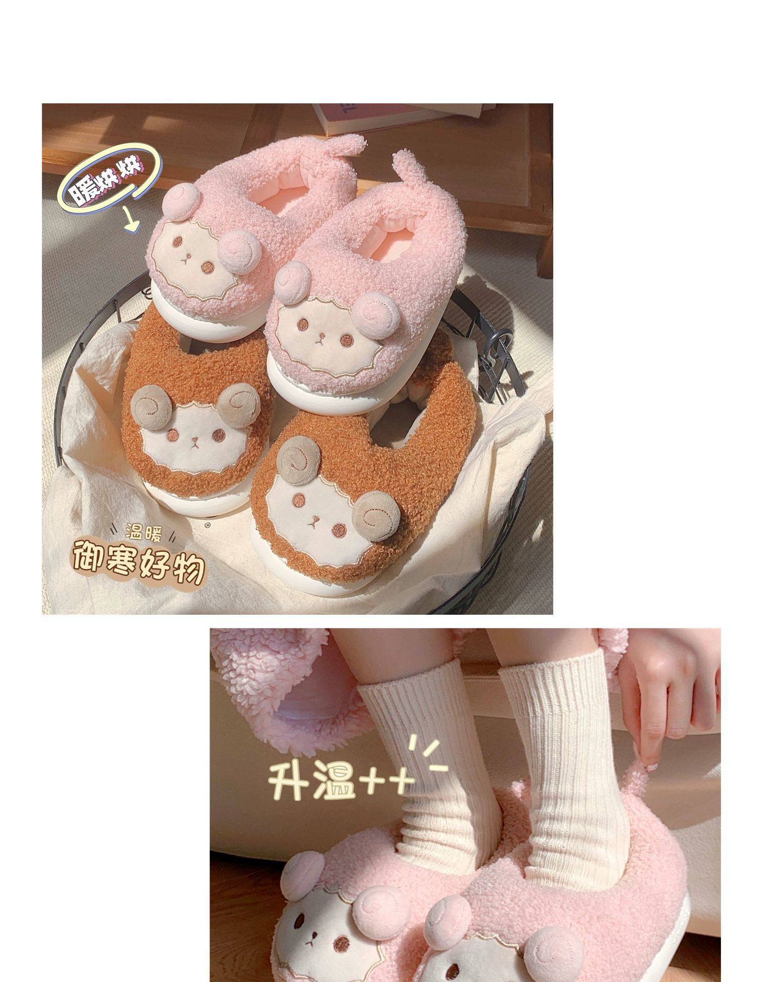 Зимние мягкие милые детские хлопковые тапочки с ягненком для девочек, нескользящая теплая плюшевая хлопковая обувь на полном каблуке для дома