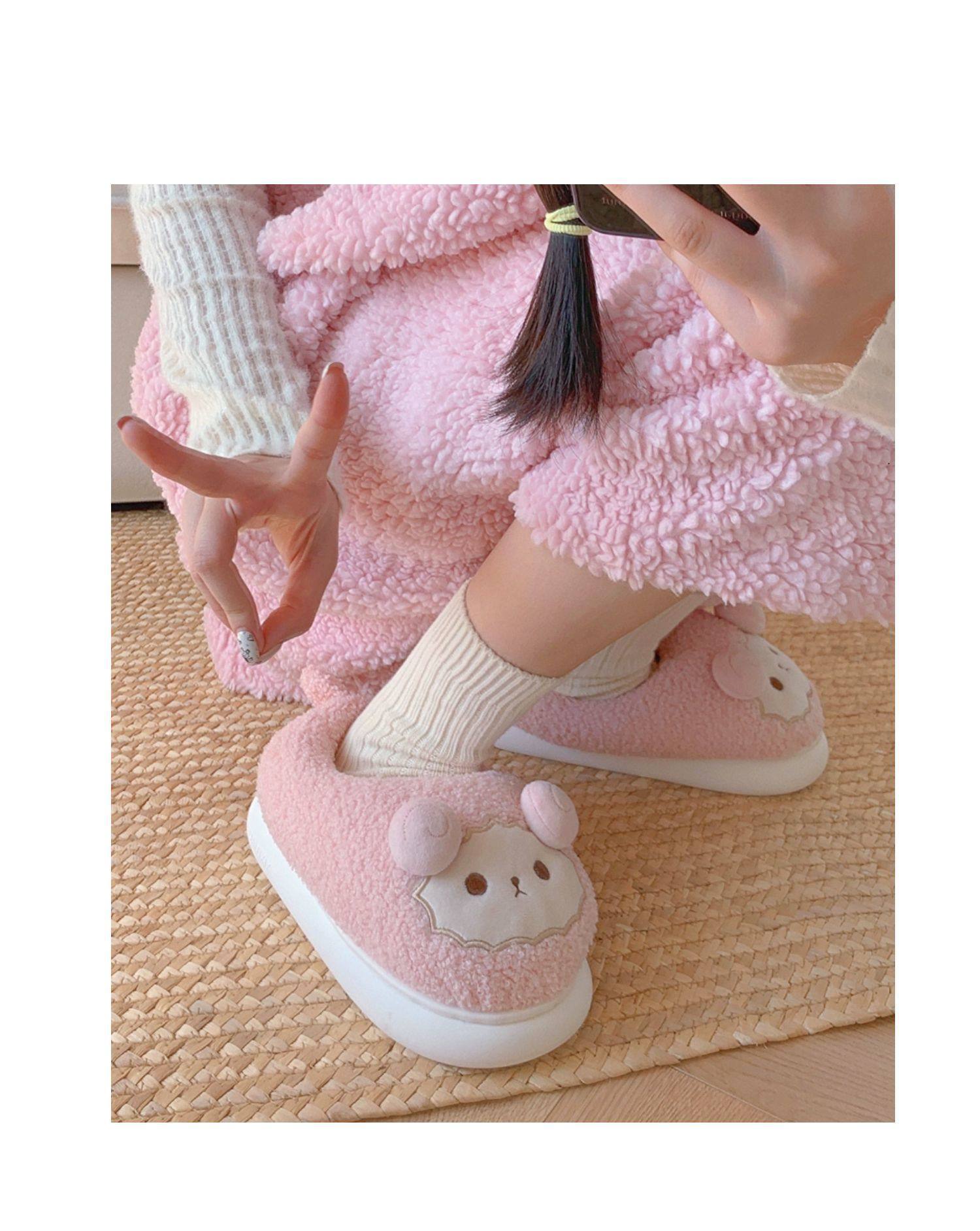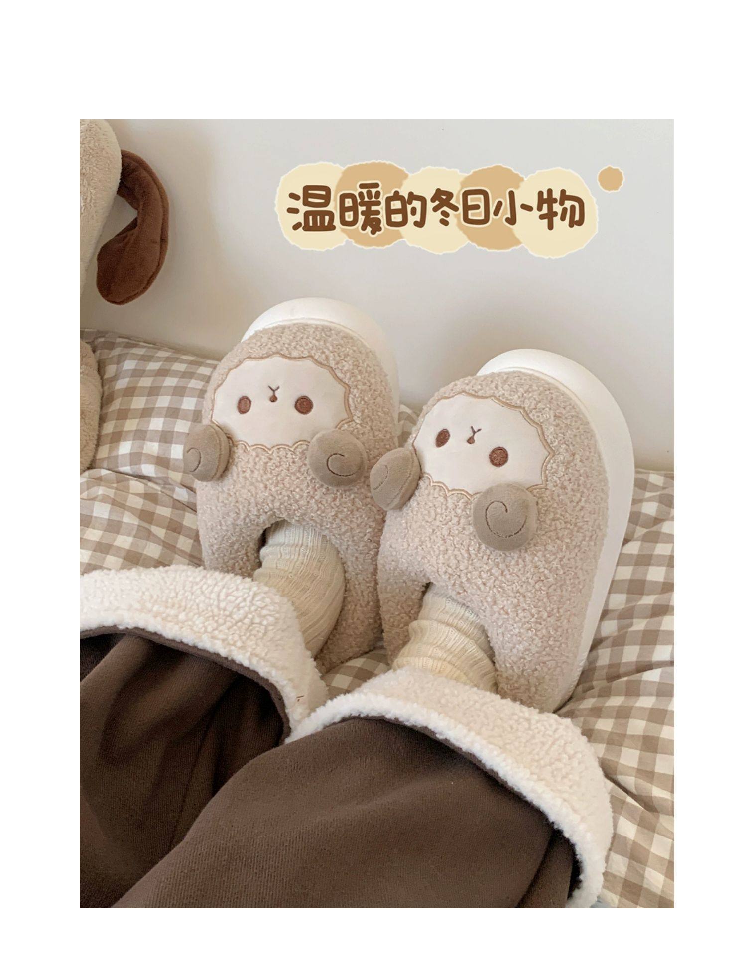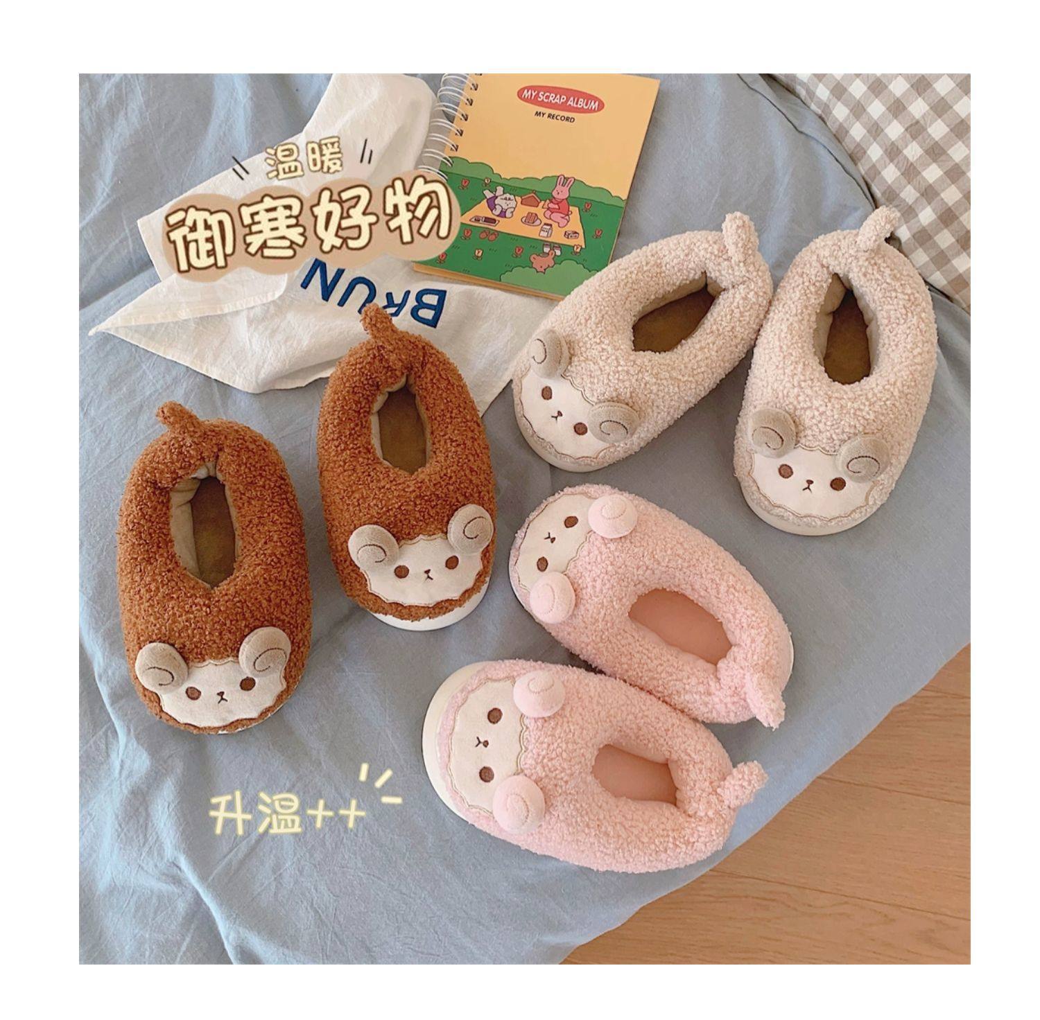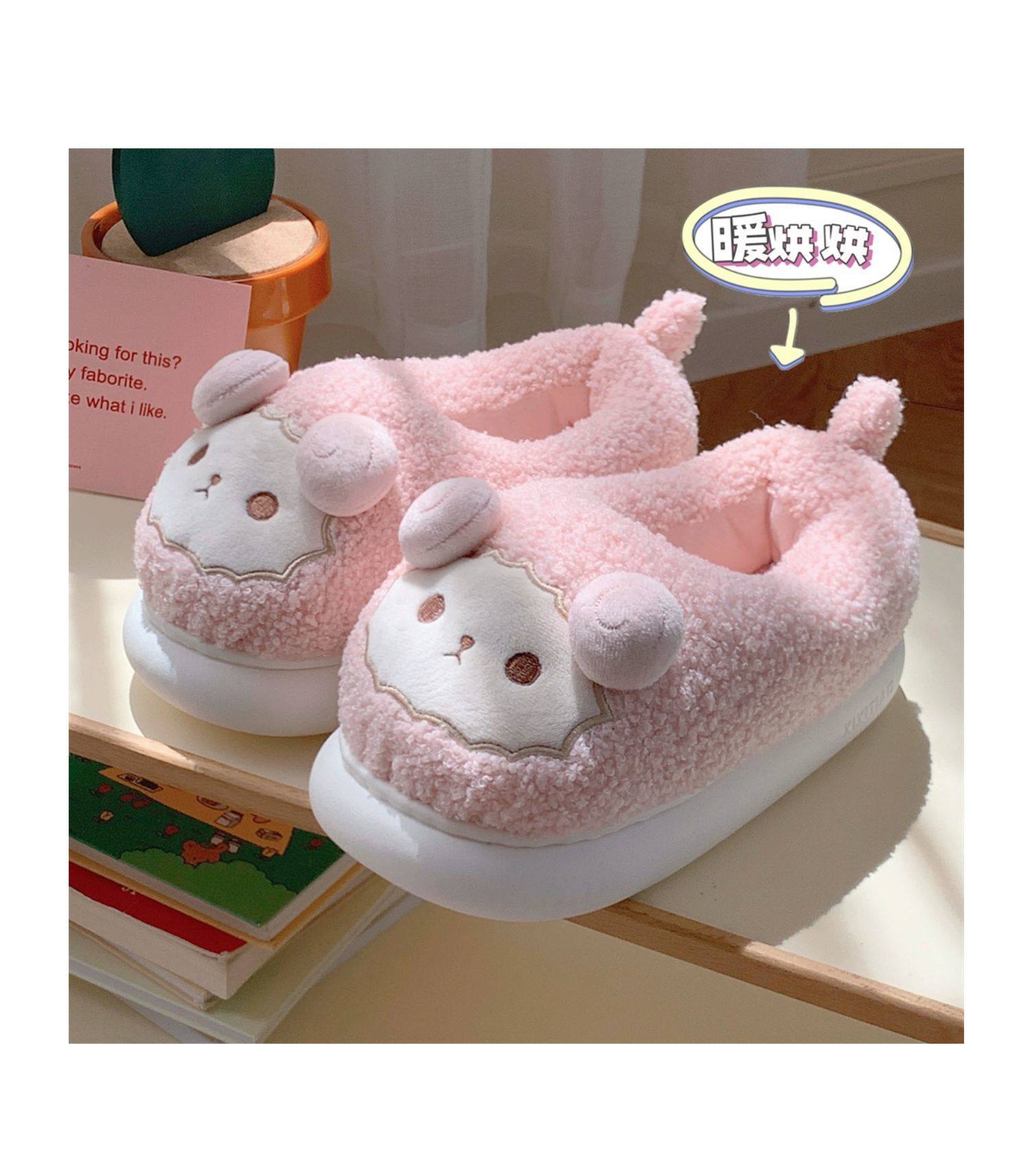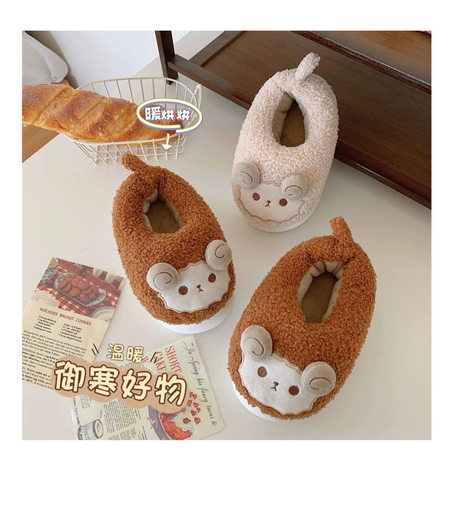 Зимние мягкие милые детские хлопковые тапочки с ягненком для девочек, нескользящая теплая плюшевая хлопковая обувь на полном каблуке для дома