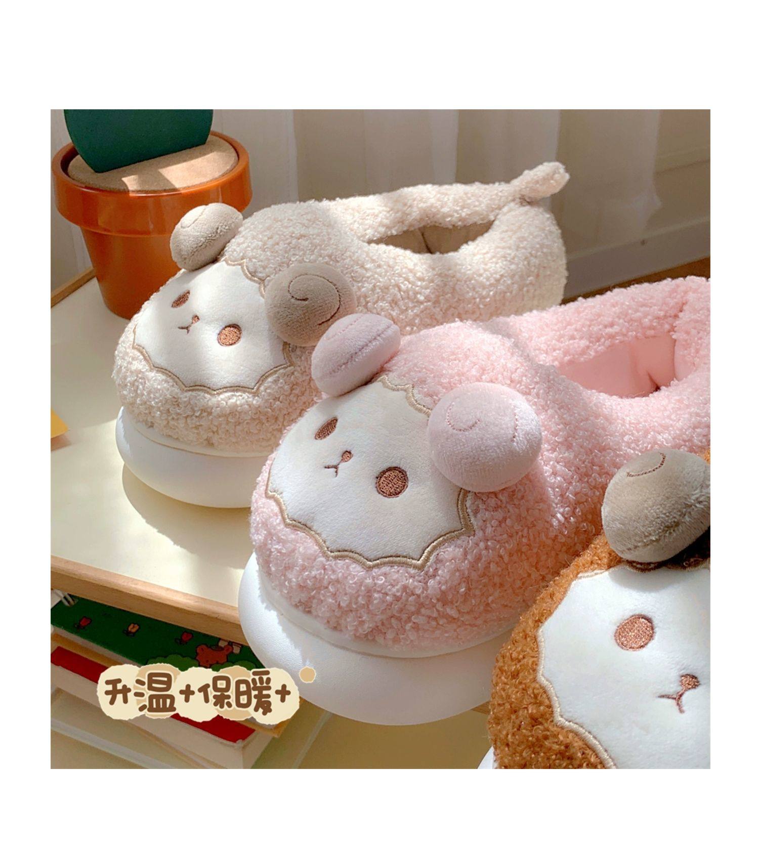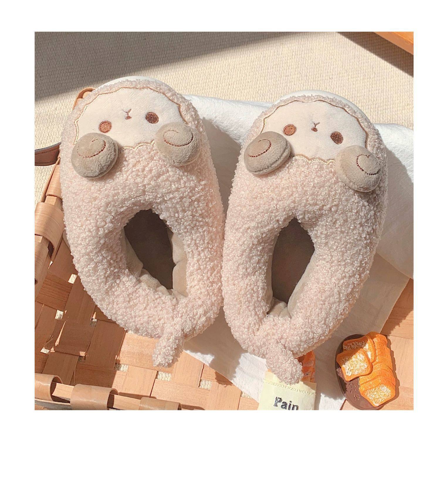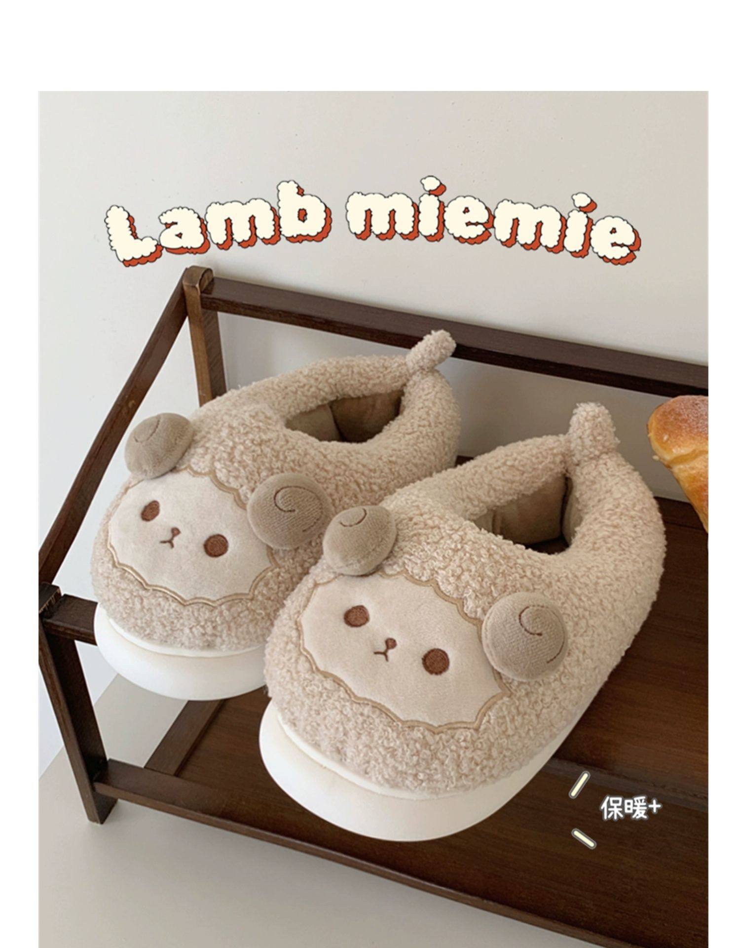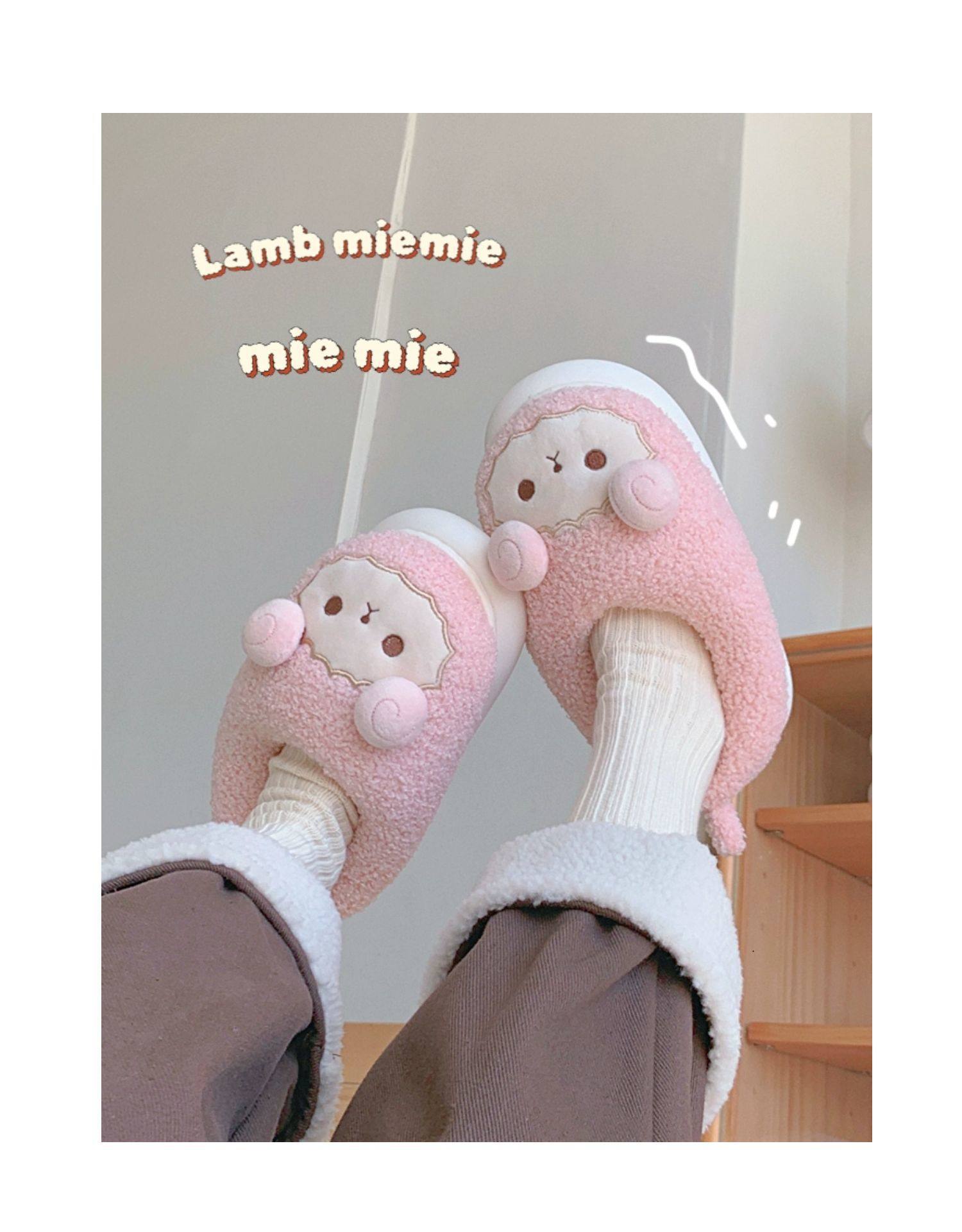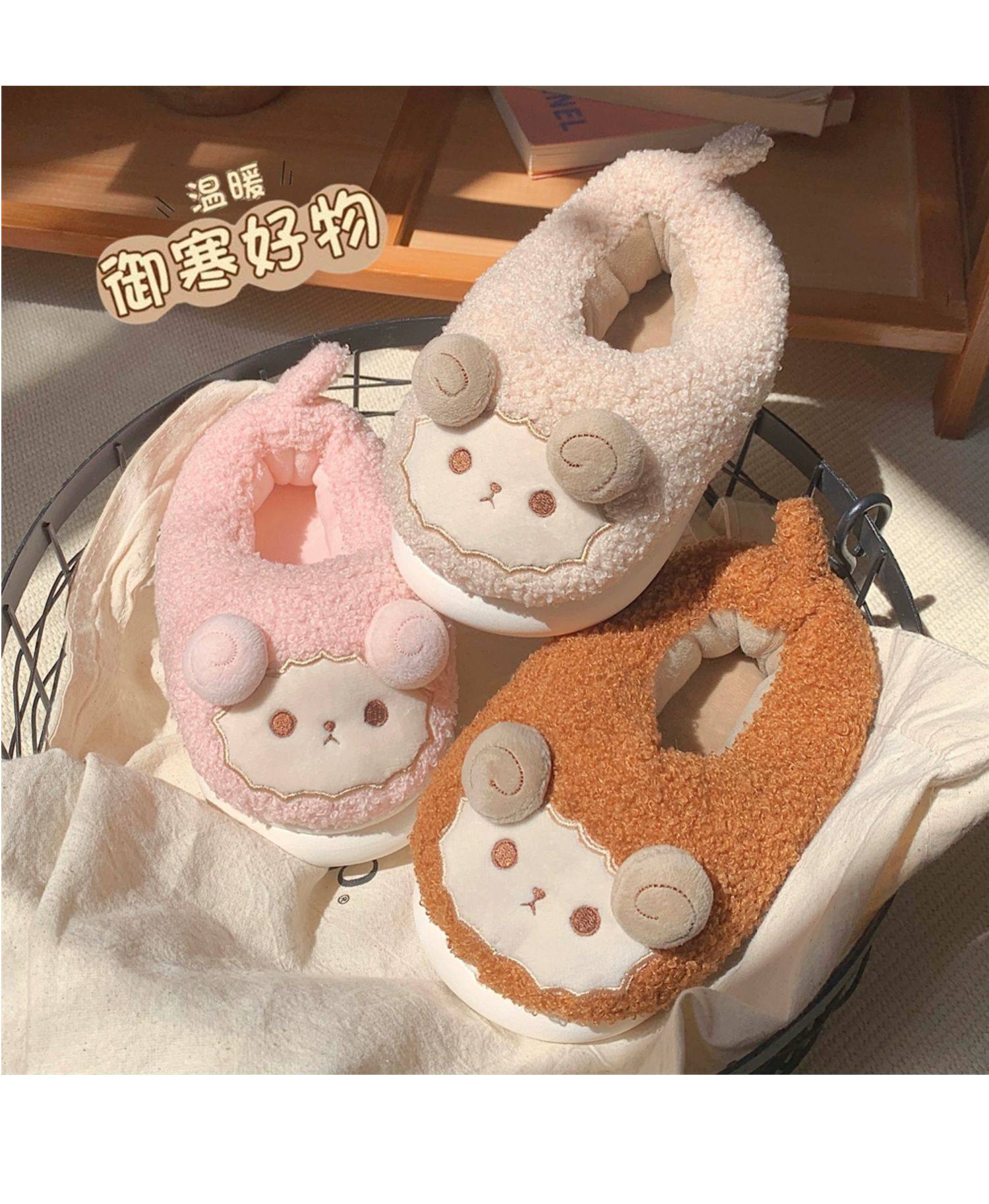Зимние мягкие милые детские хлопковые тапочки с ягненком для девочек, нескользящая теплая плюшевая хлопковая обувь на полном каблуке для дома