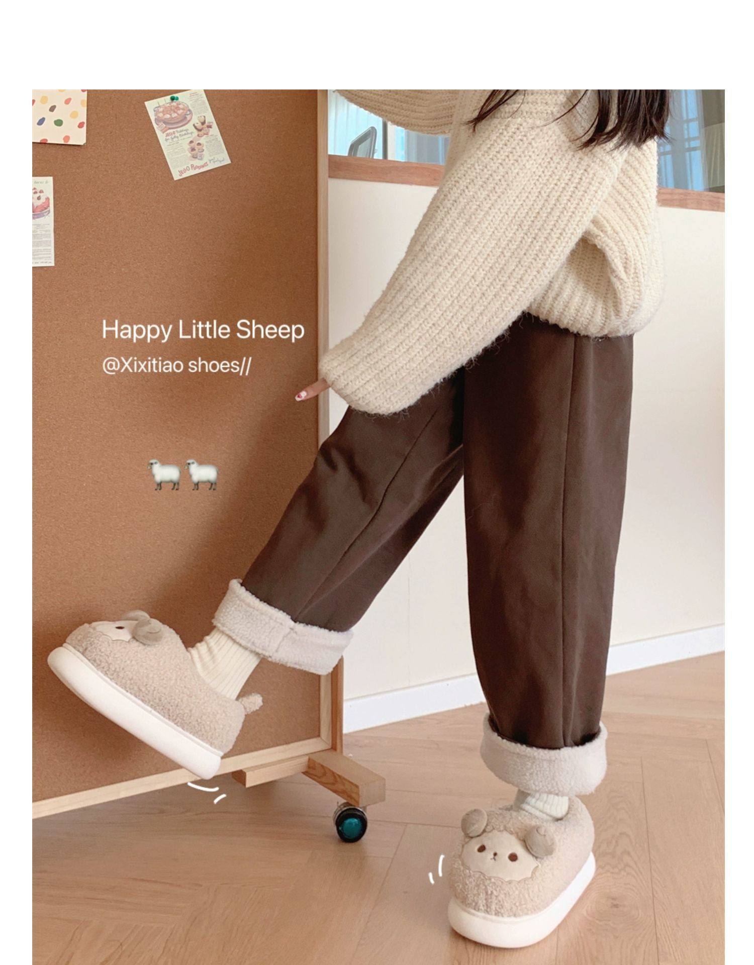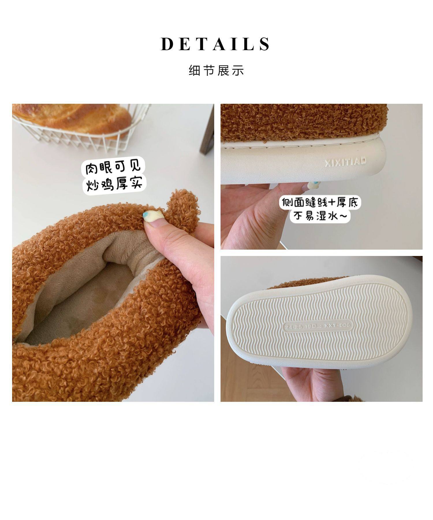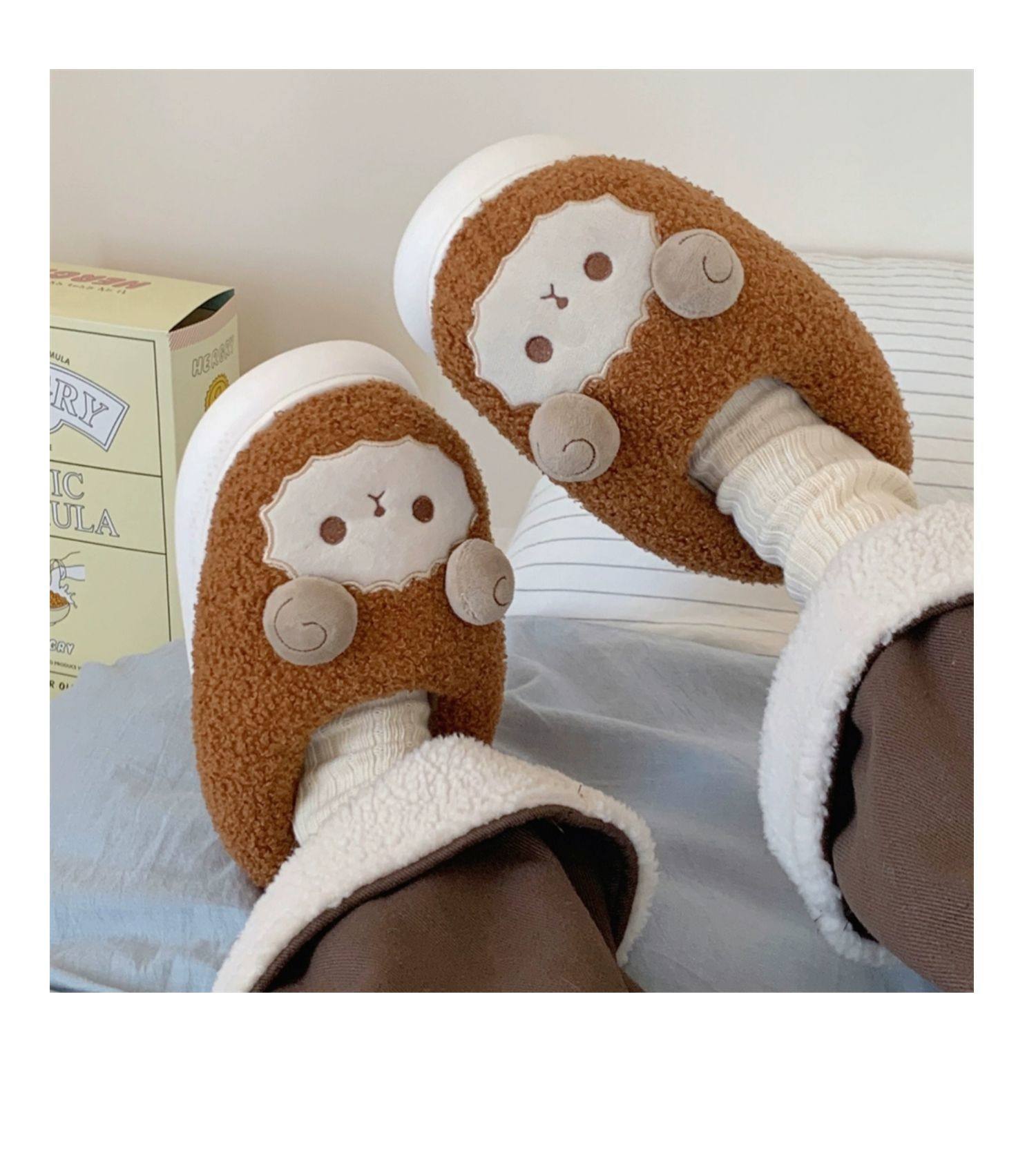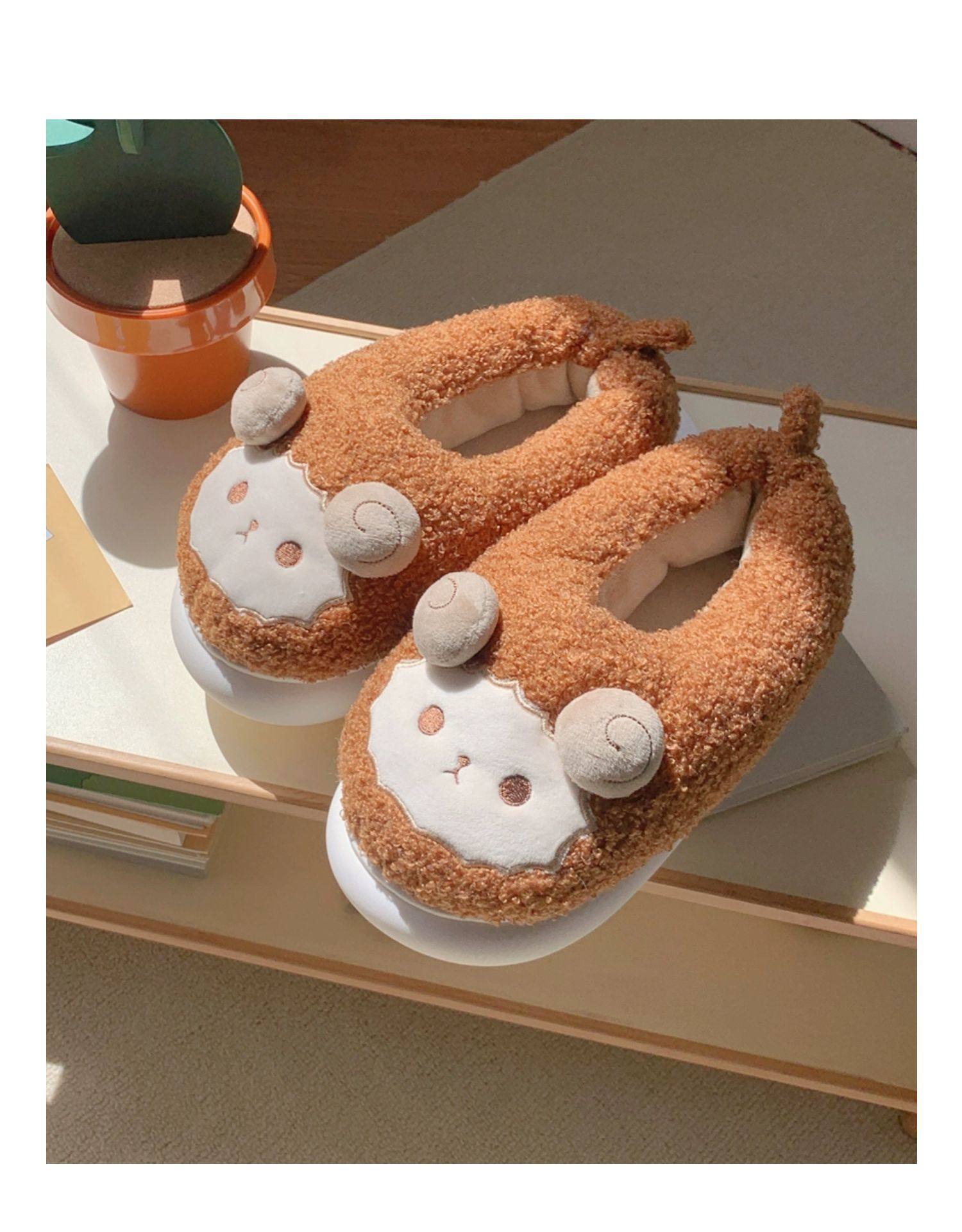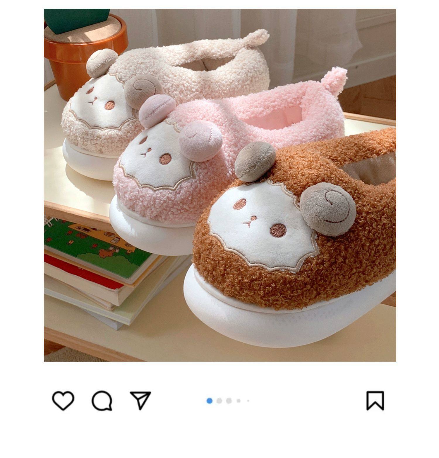 Зимние мягкие милые детские хлопковые тапочки с ягненком для девочек, нескользящая теплая плюшевая хлопковая обувь на полном каблуке для дома