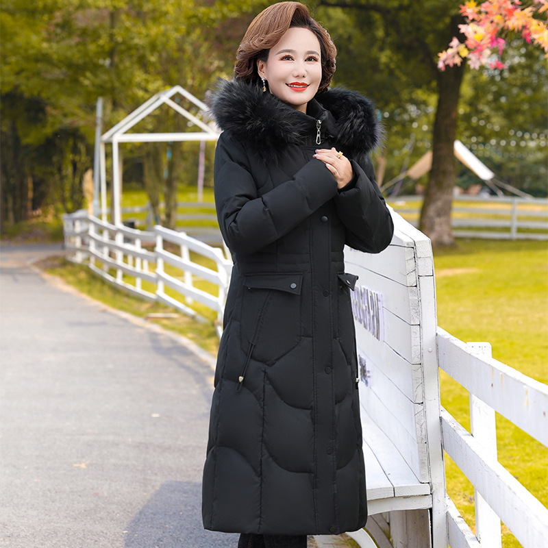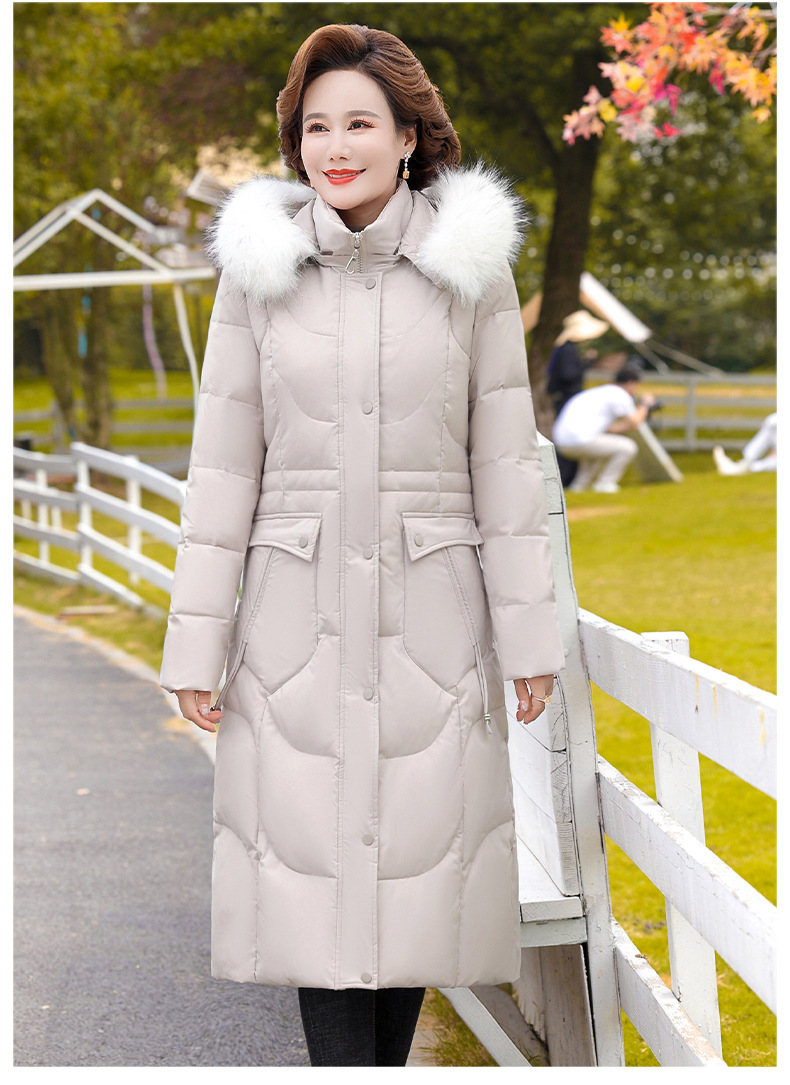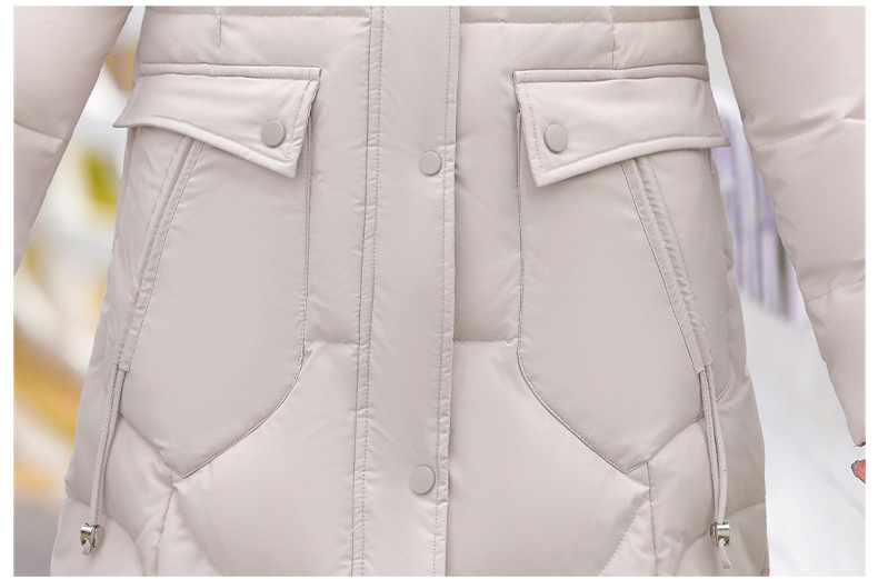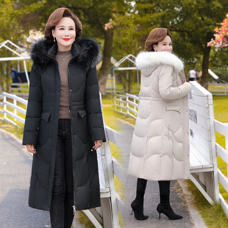 Высококачественный длинный пуховик выше колена 2023, новая цельная теплая дышащая зимняя Горячая пуховая куртка с капюшоном и хлопковой подкладкой
