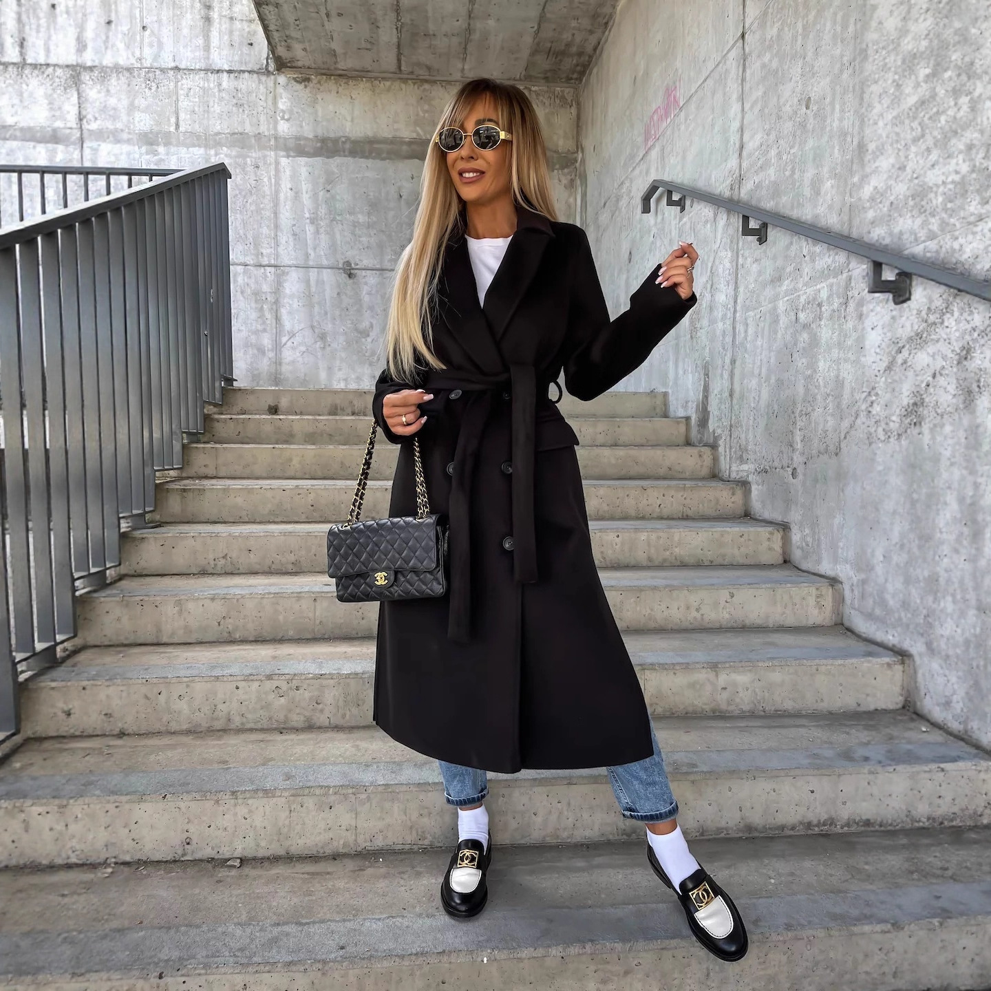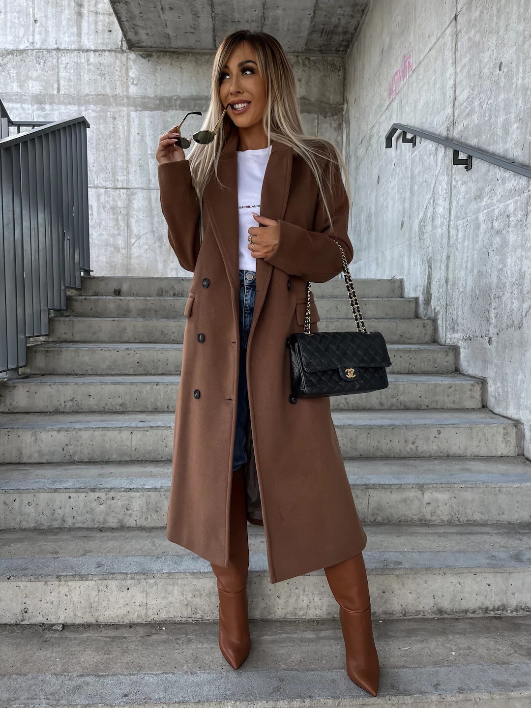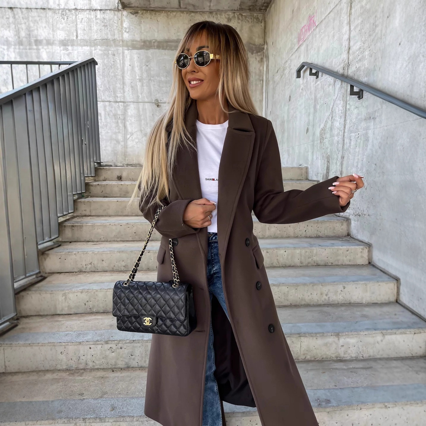 2023 Независимая станция EABY Amazon Взрывы осень и зима Простое Шерстяное Пальто с длинным рукавом и лацканами на пуговицах с разрезом для женщин