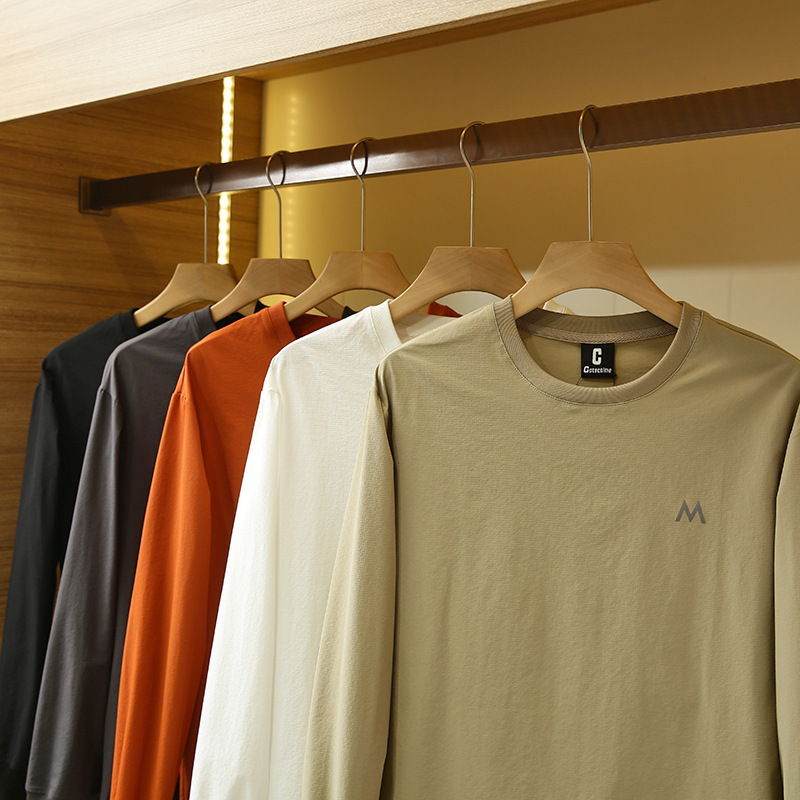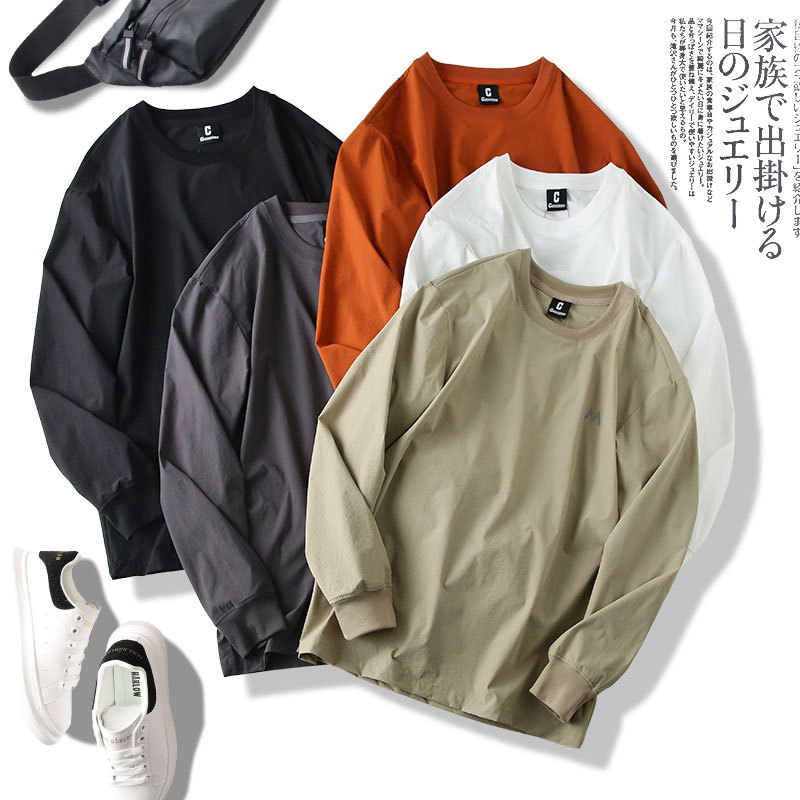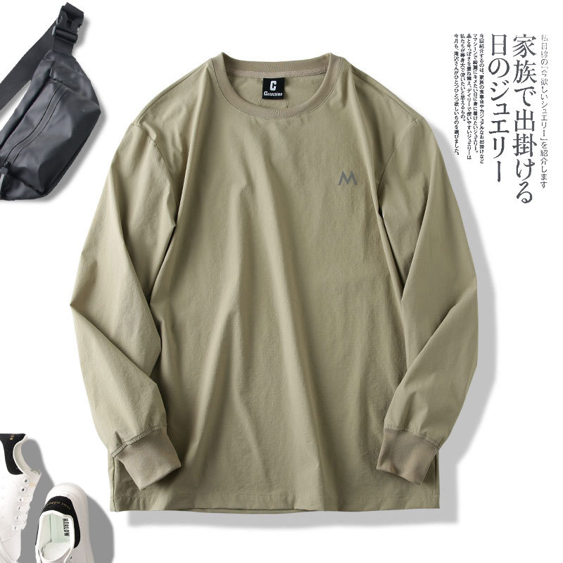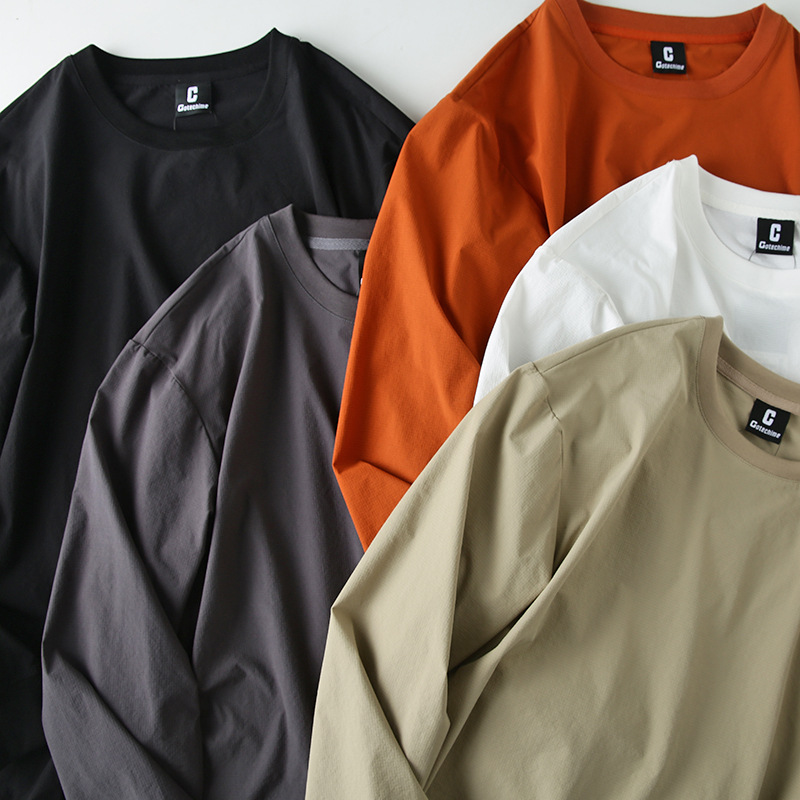 Японская High Street легкая быстросохнущая дышащая эластичная Осенняя тонкая мужская толстовка с круглым вырезом, функциональная Повседневная Уличная футболка