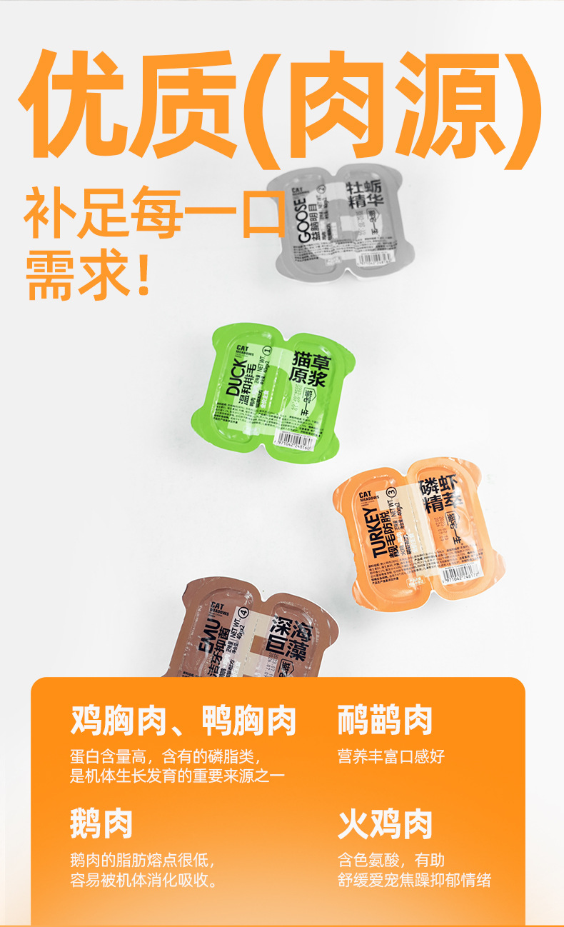 [Очистка полости рта] Курица + глубоководные ламинарии; [Красивые волосы, защищающие волосы] Мясо индейки + эссенция криля; [С высоким содержанием белка] Курица + эссенция устриц; [Вспомогательные волосы] мясо утки + пюре из кошачьей травы