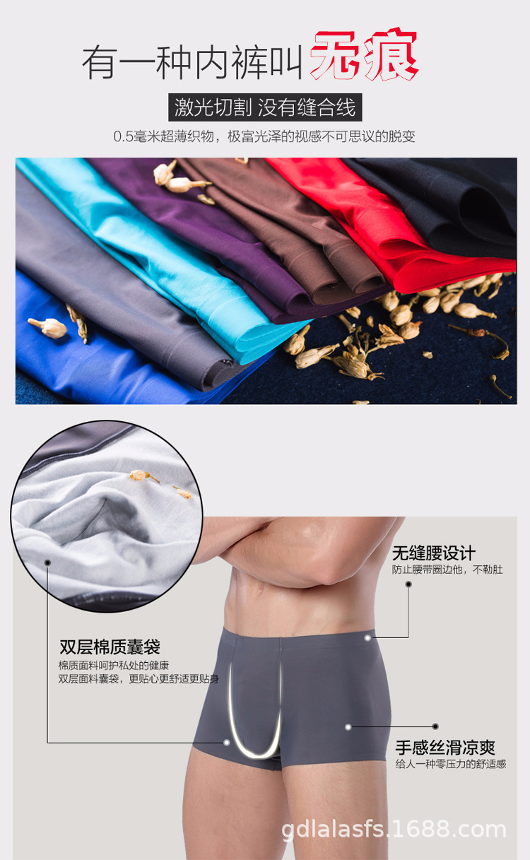 Летние взрывы Ледяной шелк Цельное бесшовное Мужское нижнее белье Удобные Модные дышащие боксеры Антибактериальные бактериостатические быстросохнущие