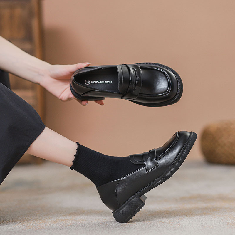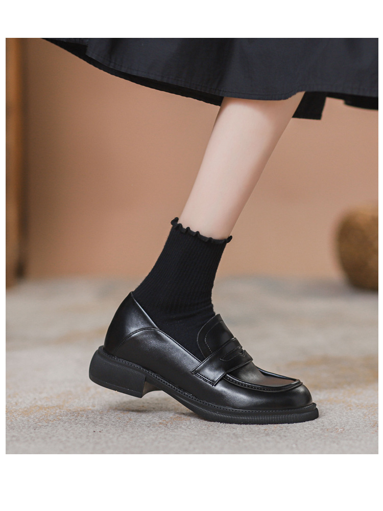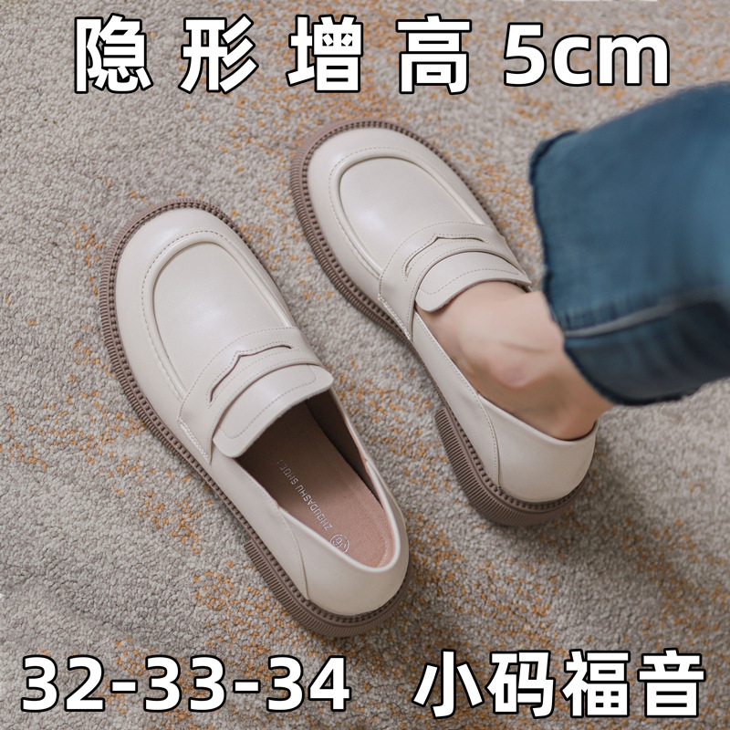Женская обувь маленького размера 313233, увеличивающая Невидимый рост, ленивые лоферы на толстой подошве, женские однослойные туфли, черные кожаные туфли в британском стиле