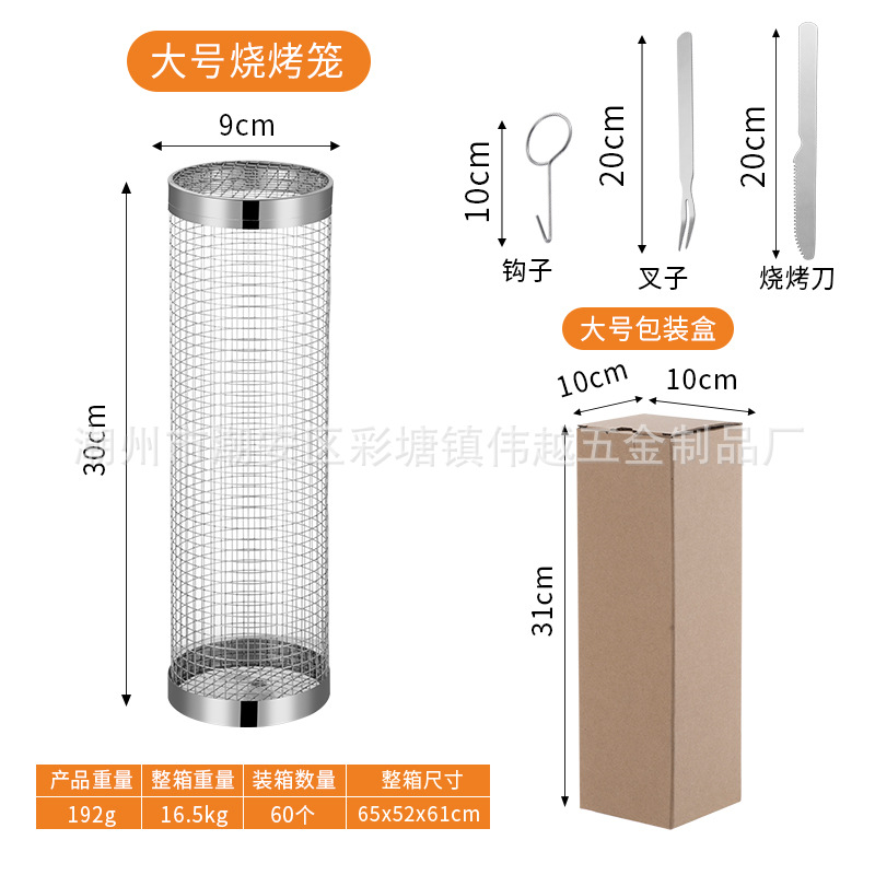 Трансграничная клетка для барбекю из нержавеющей стали 304 открытый цилиндр для барбекю копченая сетчатая трубка Амазонка поставка инструментов для барбекю