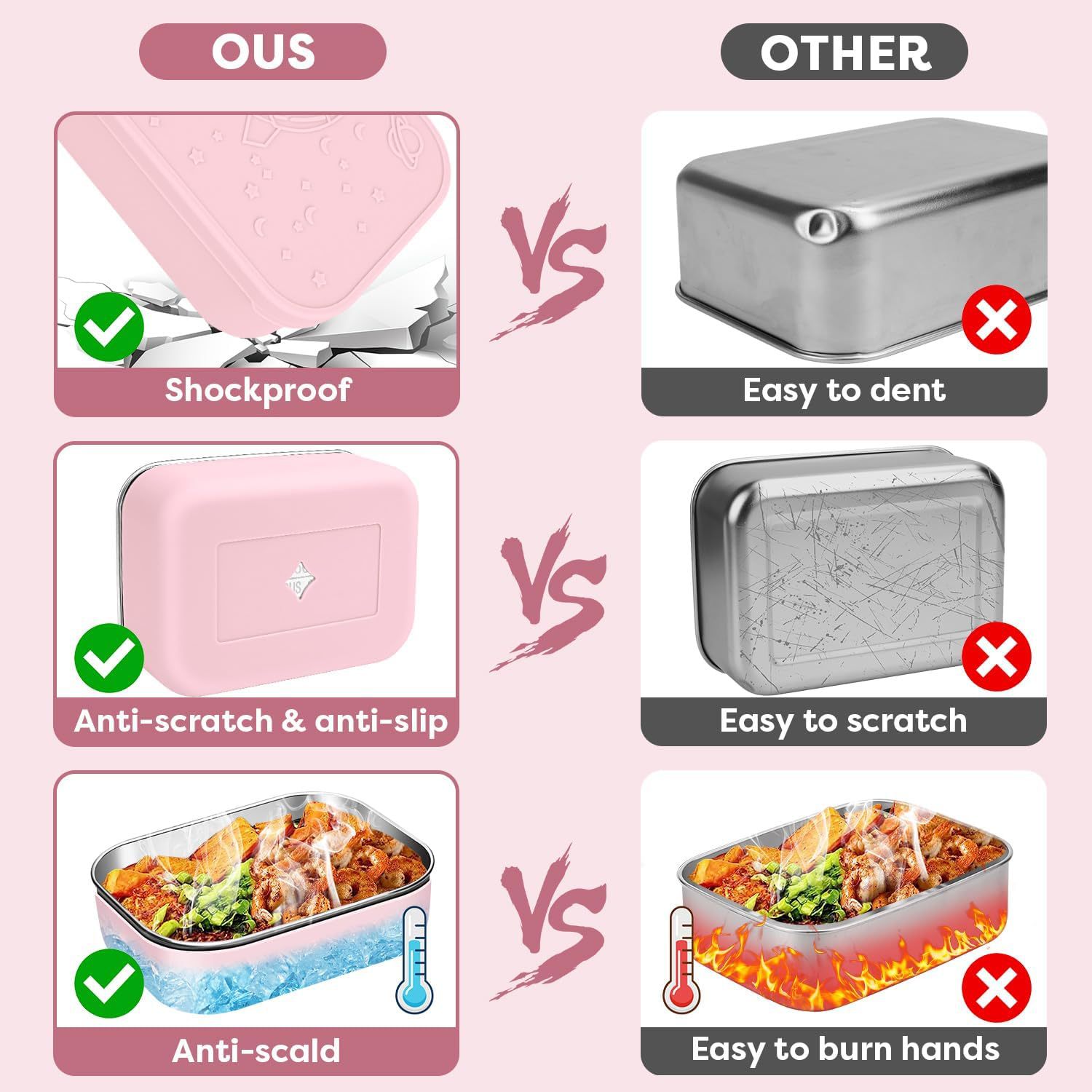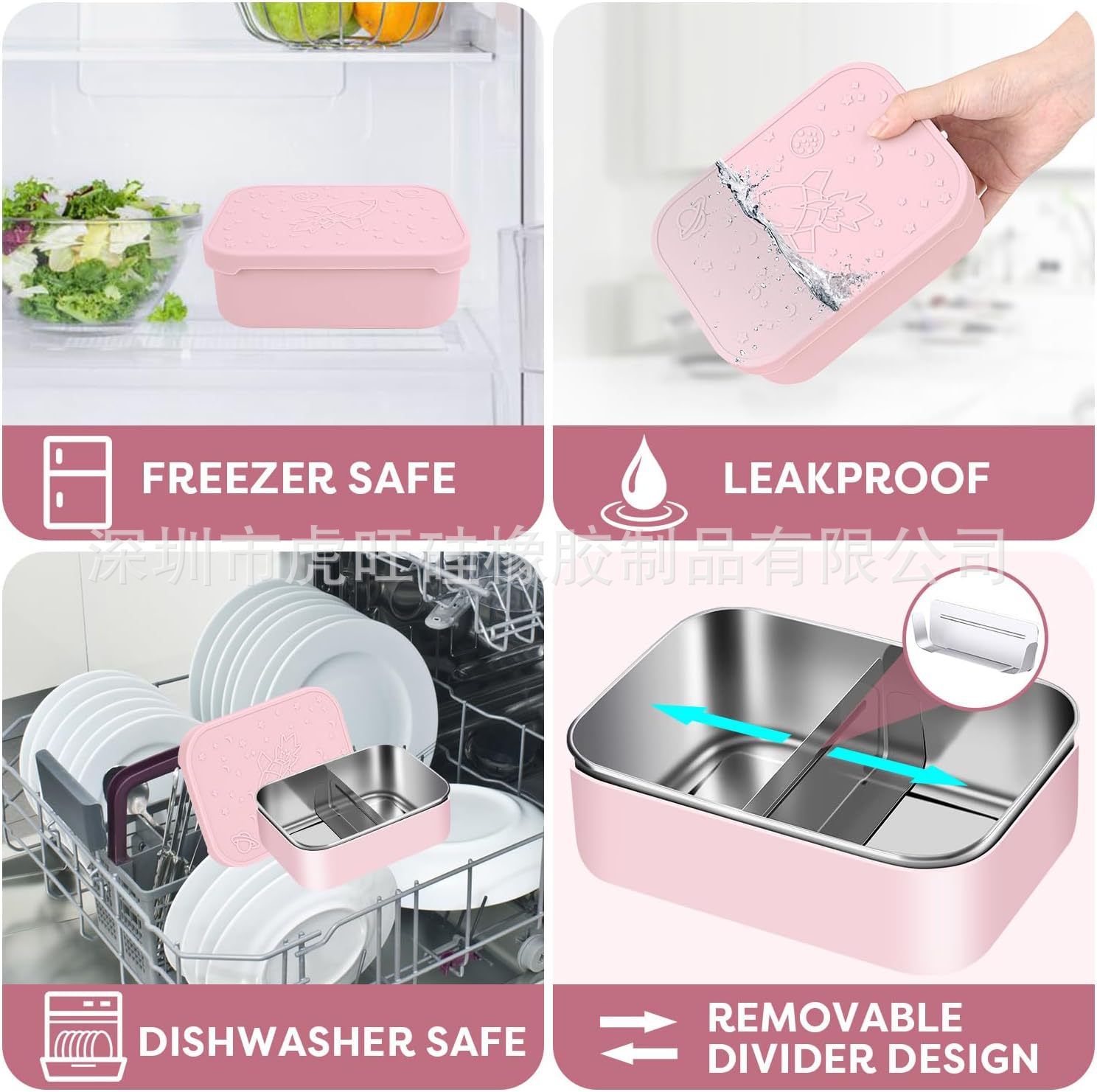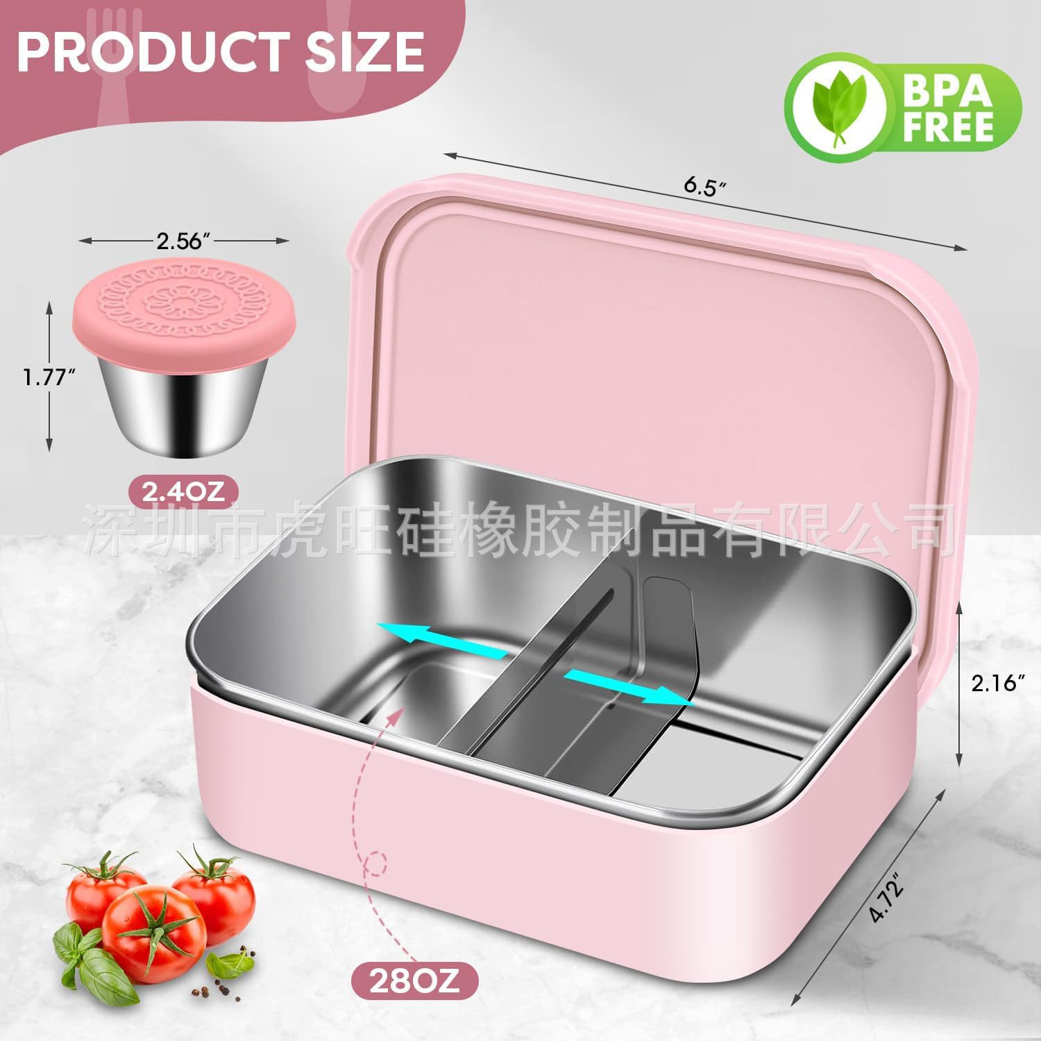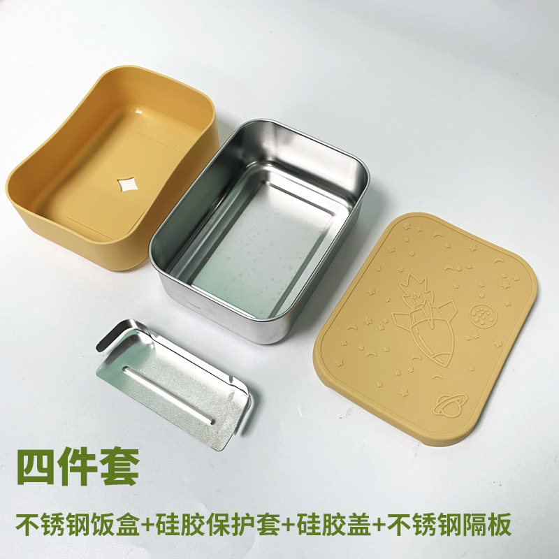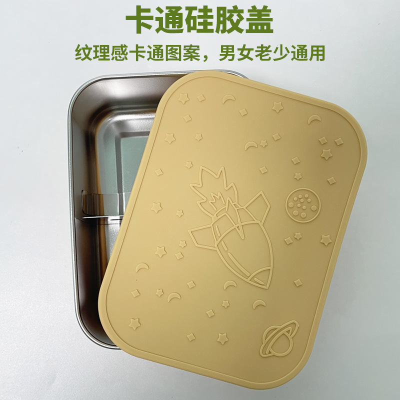 产品特点:不锈钢盒子搭配硅胶套,不仅防摔防烫而且更美观。不锈钢易清洗可重复使用。产品密封性强,可用于饭盒,保鲜盒,小巧精致,非常适合上班族,学生党。