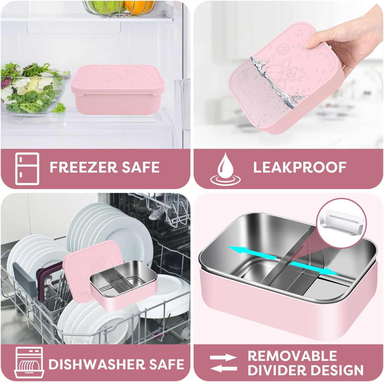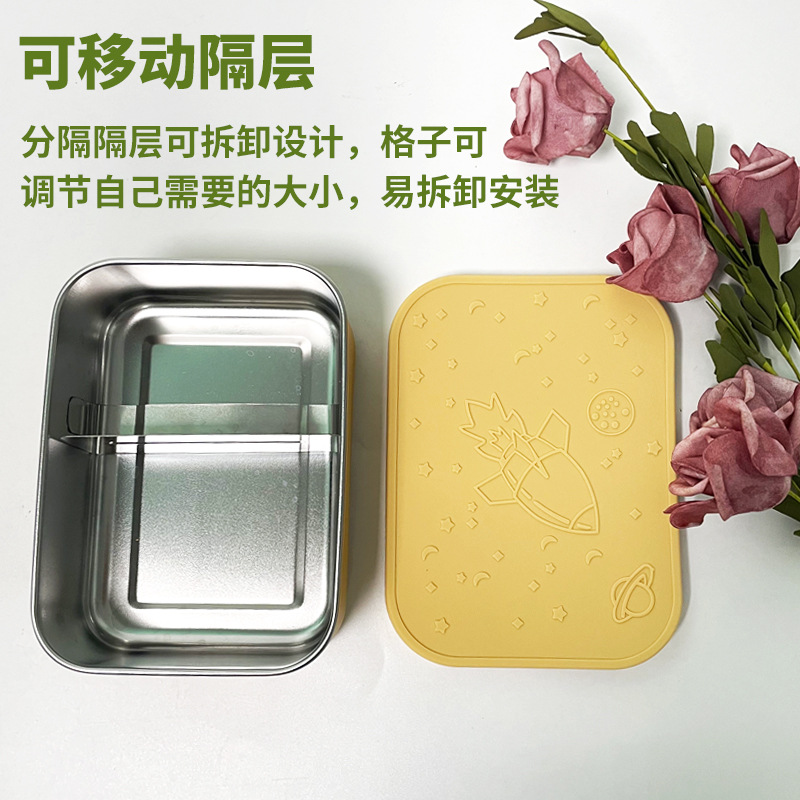 304 нержавеющая сталь Ланч-бокс Съемная перегородка Ланч-бокс герметичный с силиконовой крышкой квадратный Ланч-бокс для хранения продуктов