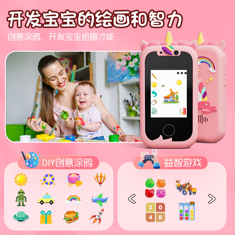 Новый двойной дисплей сенсорный экран детский мобильный телефон единорог головоломка машина раннего обучения спортивная камера смартфон игрушка мобильный телефон