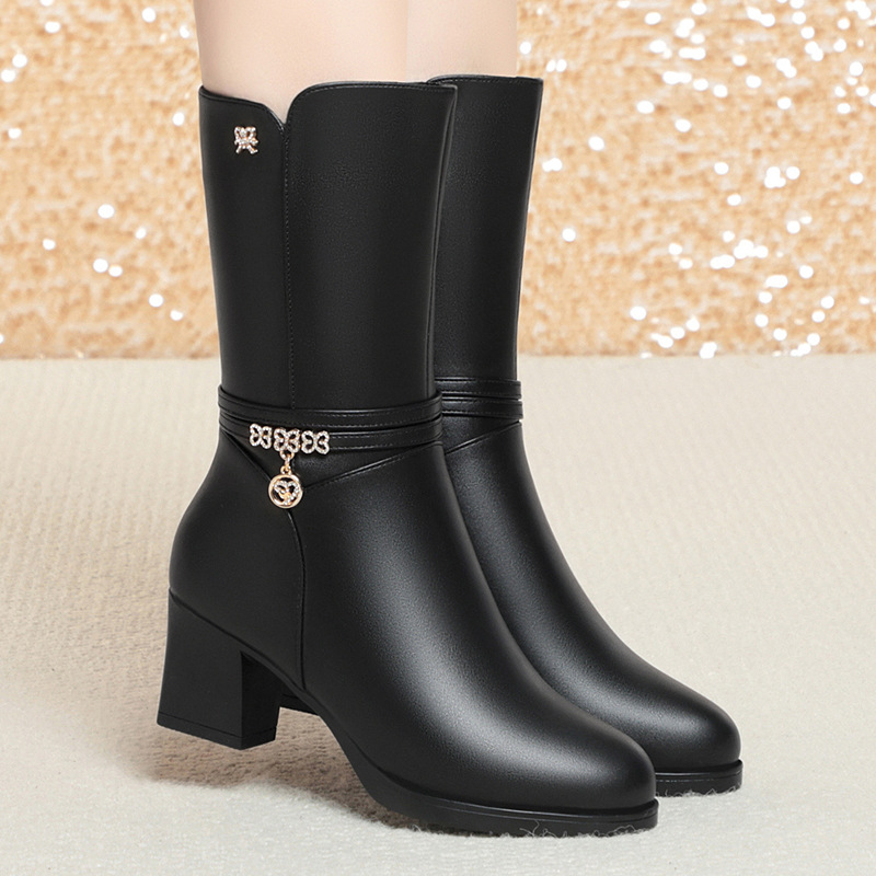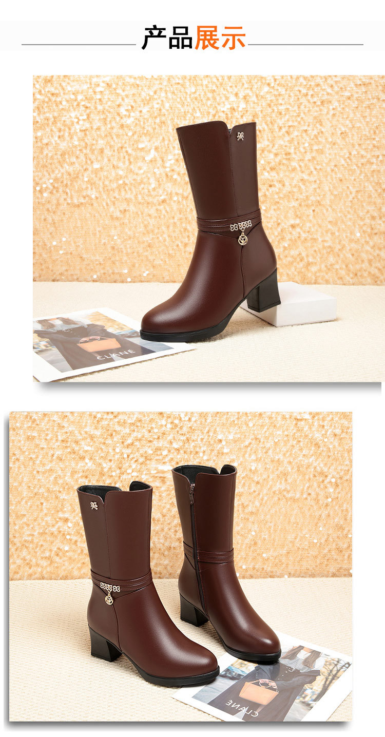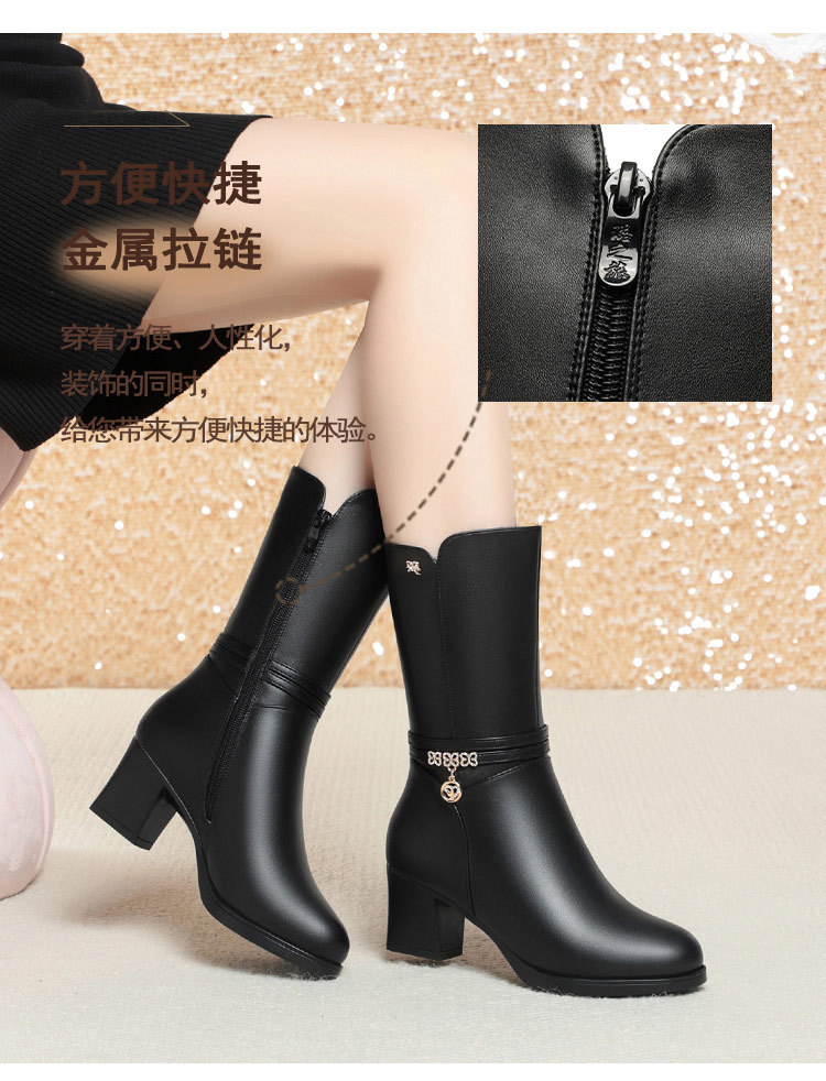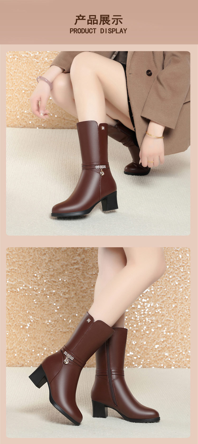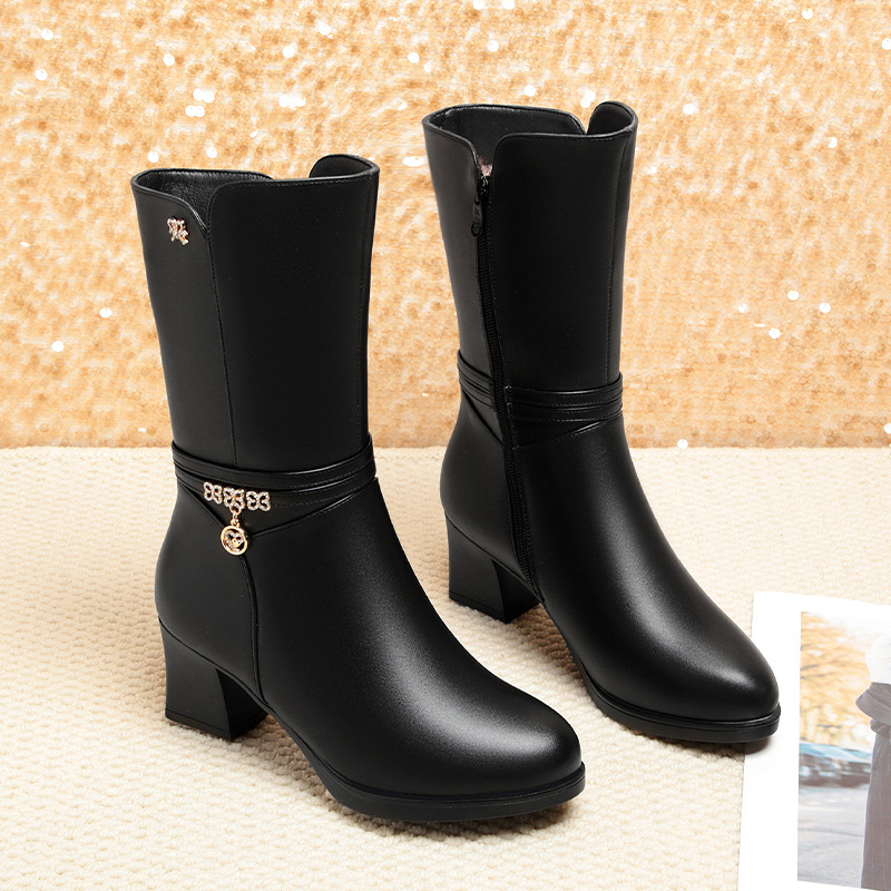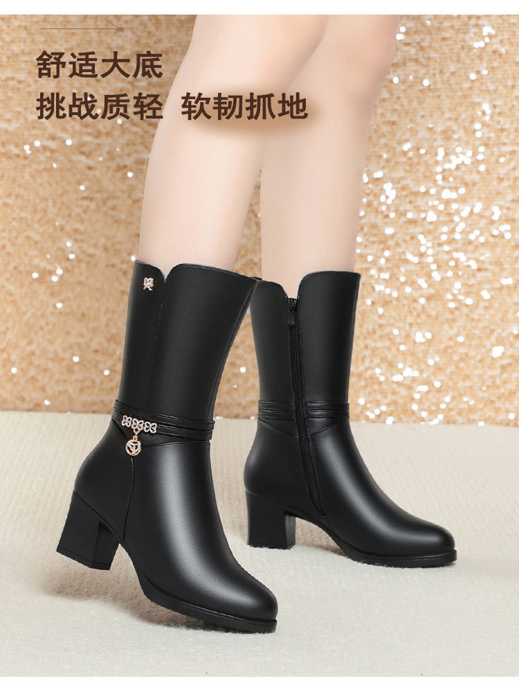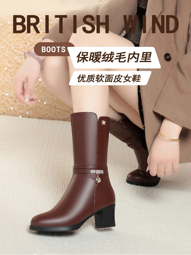 Сапоги до середины икры для женщин 2023 новые женские сапоги из хлопка среднего и пожилого возраста зимние сапоги с мягким дном кожаная обувь на флисовой подкладке осенне-зимние сапоги для мам