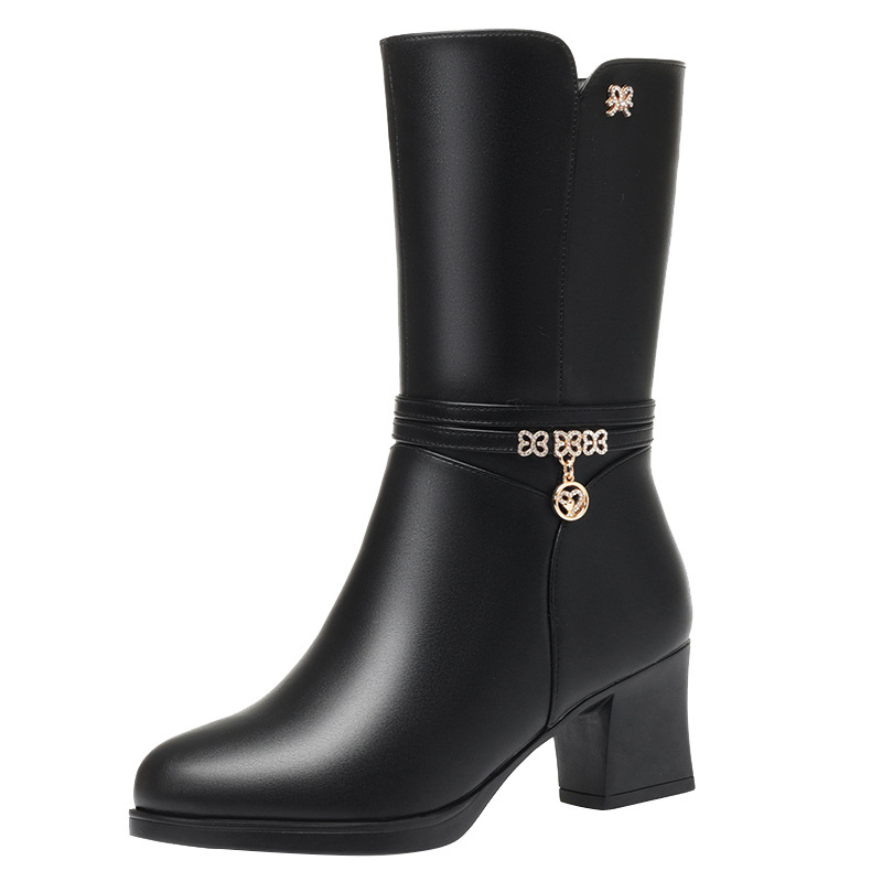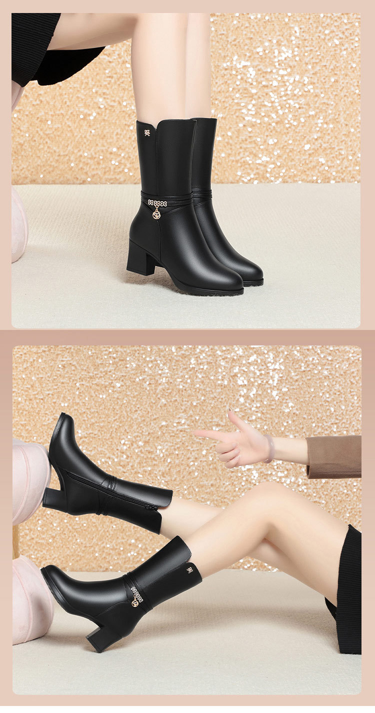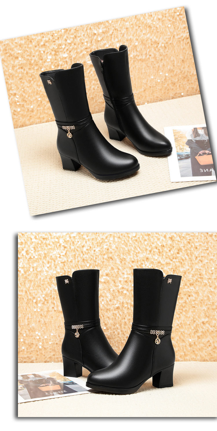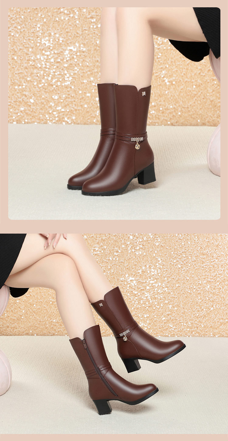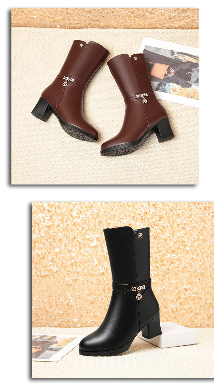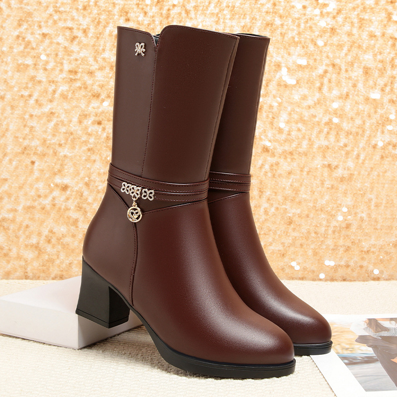 Сапоги до середины икры для женщин 2023 новые женские сапоги из хлопка среднего и пожилого возраста зимние сапоги с мягким дном кожаная обувь на флисовой подкладке осенне-зимние сапоги для мам
