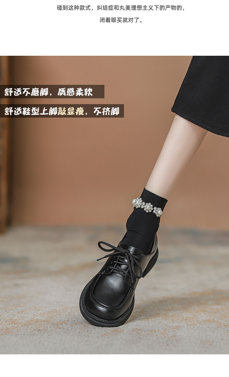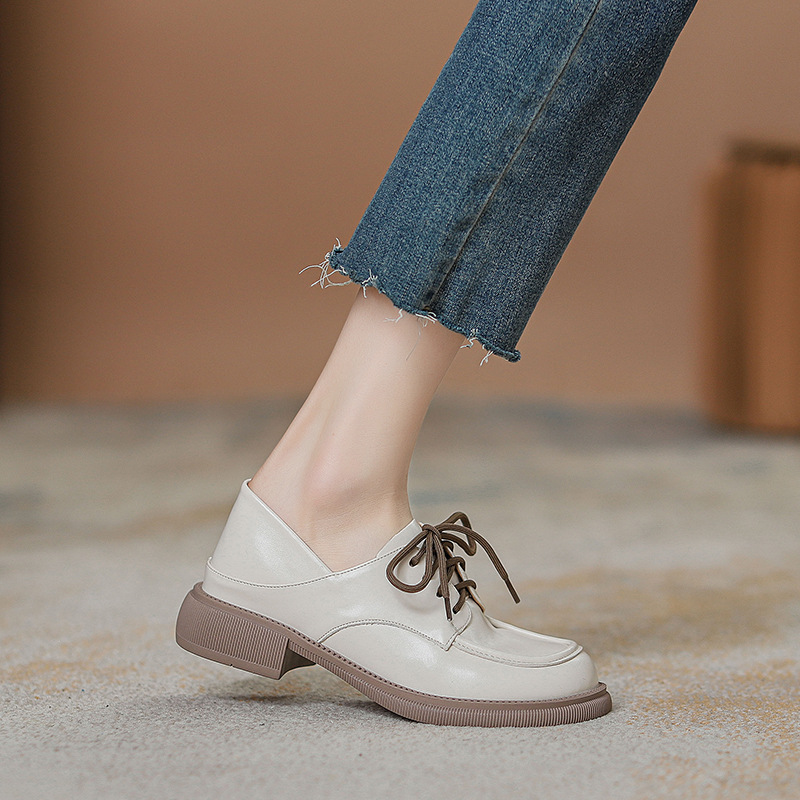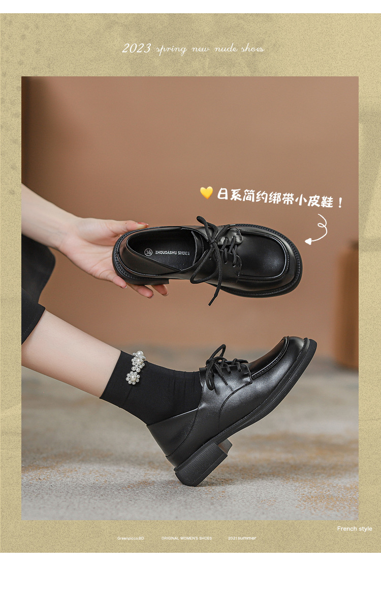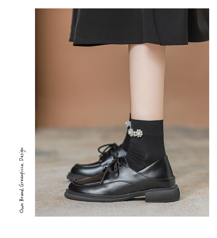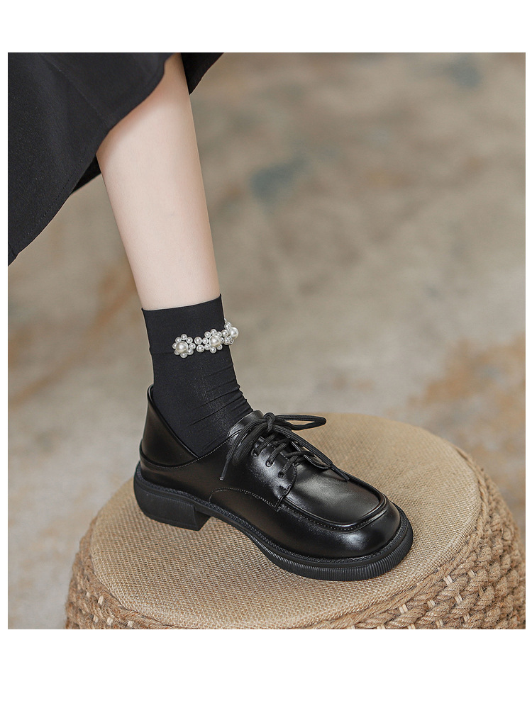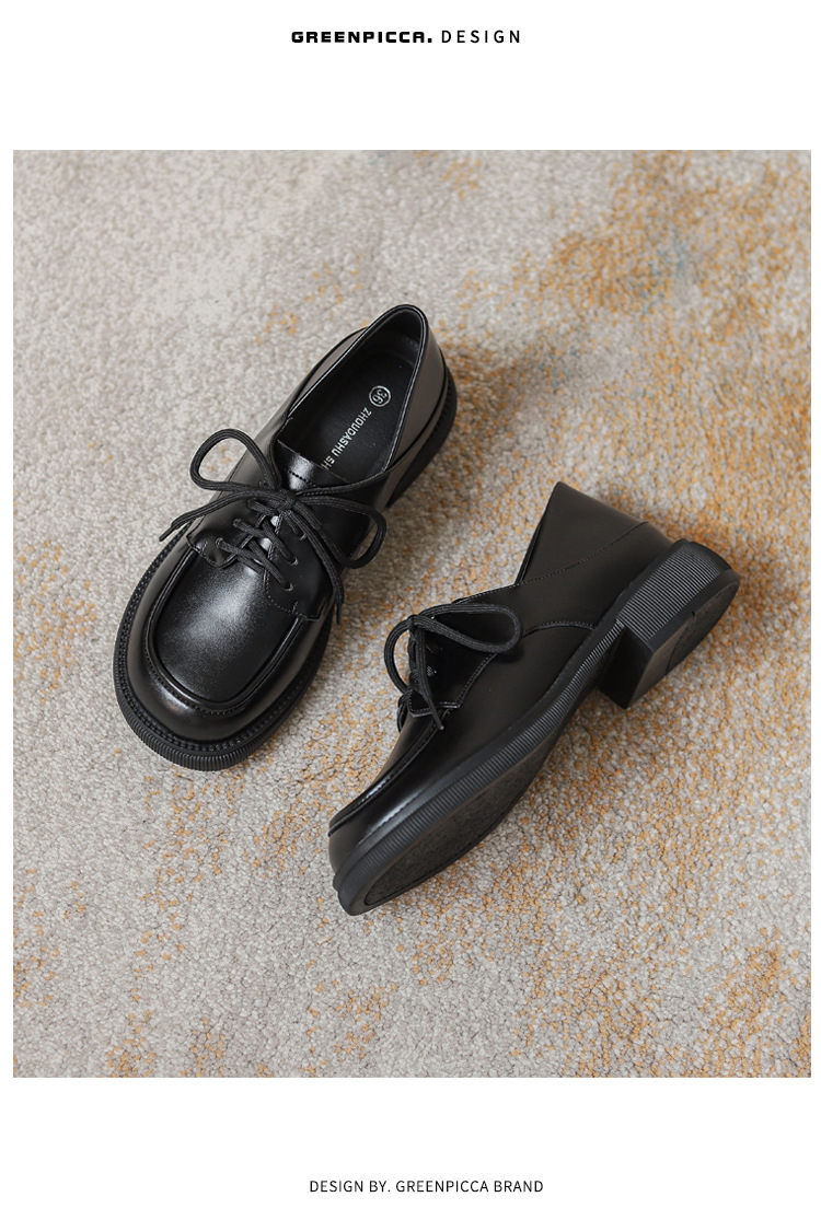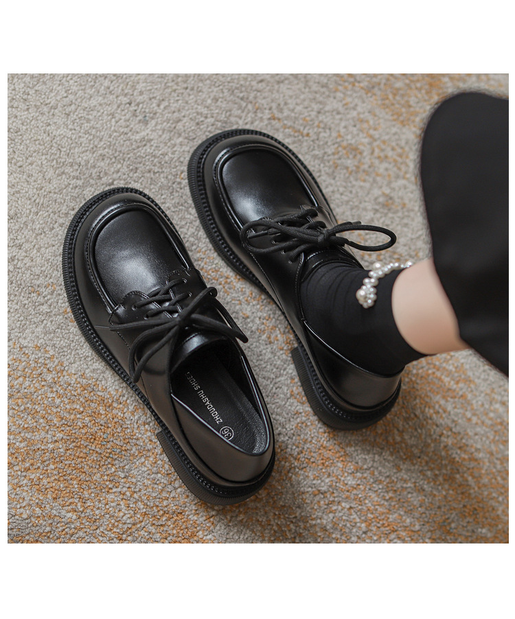 313233, женская обувь маленького размера, увеличивающая рост, лоферы на толстом каблуке, на шнуровке, женские однослойные туфли, черные кожаные туфли в британском стиле