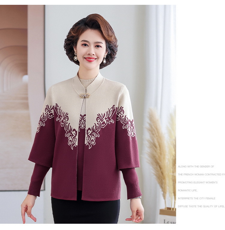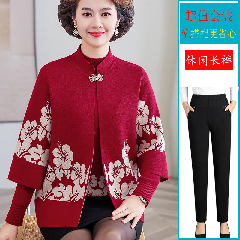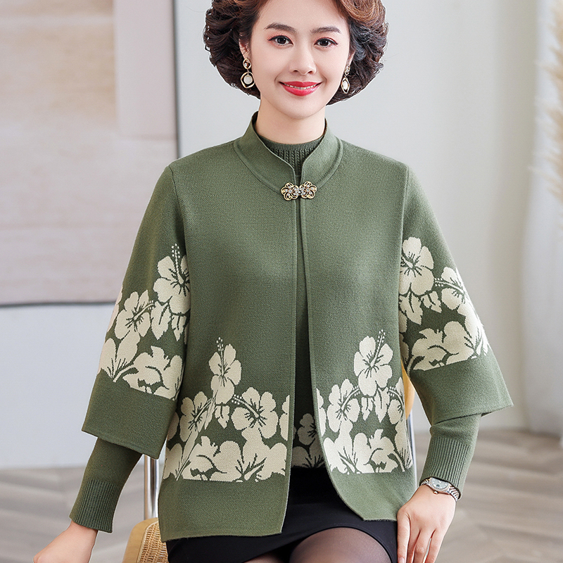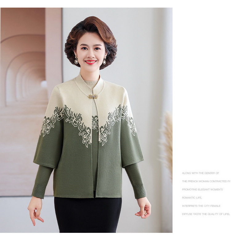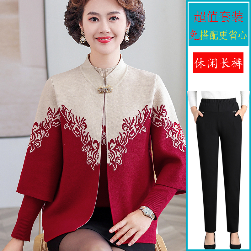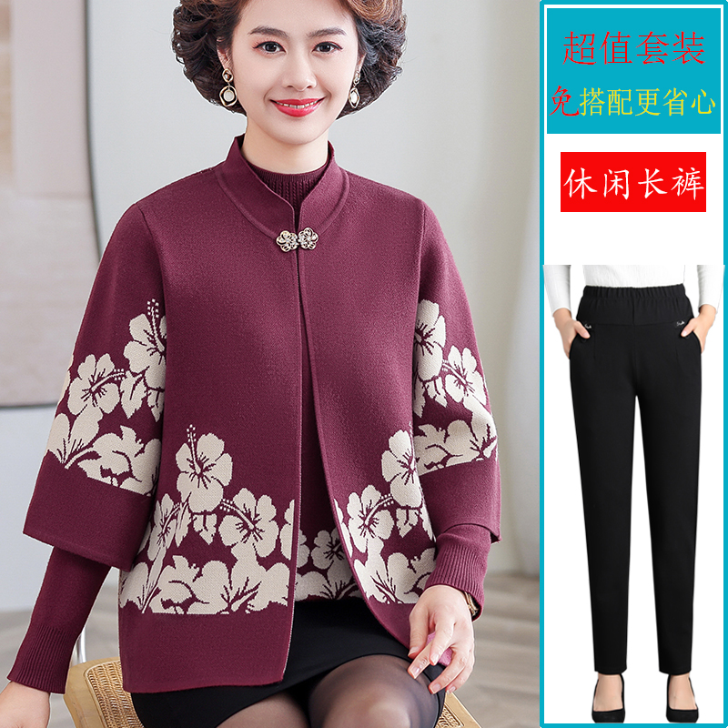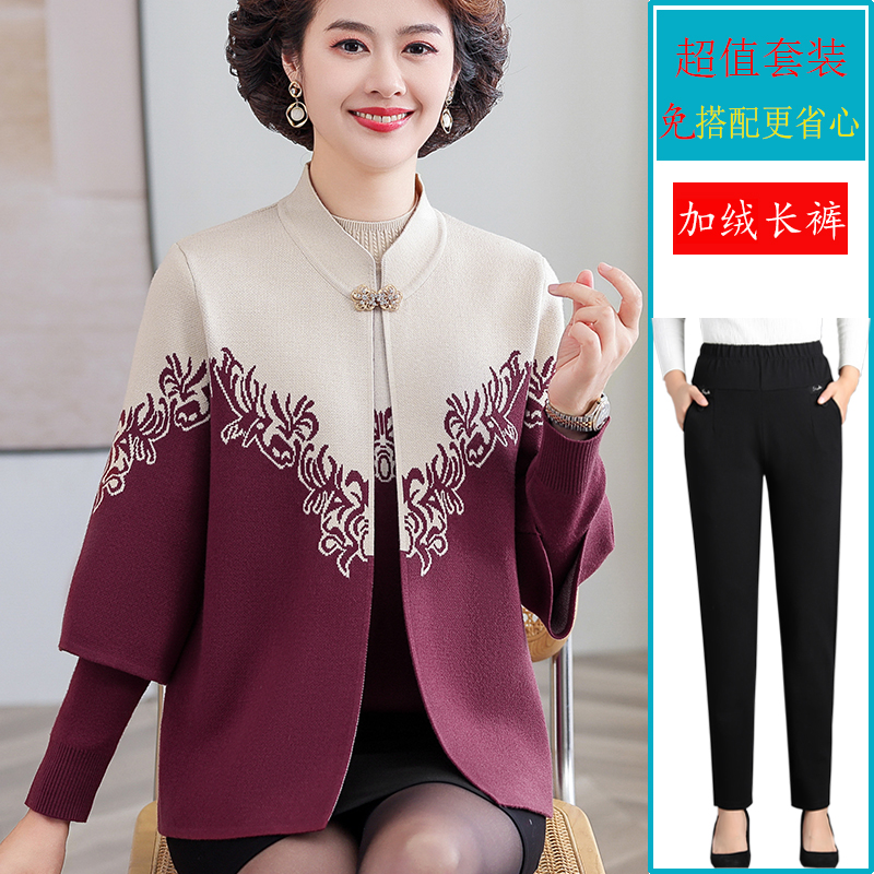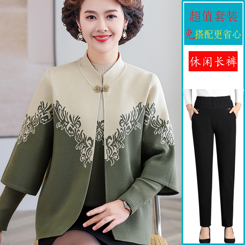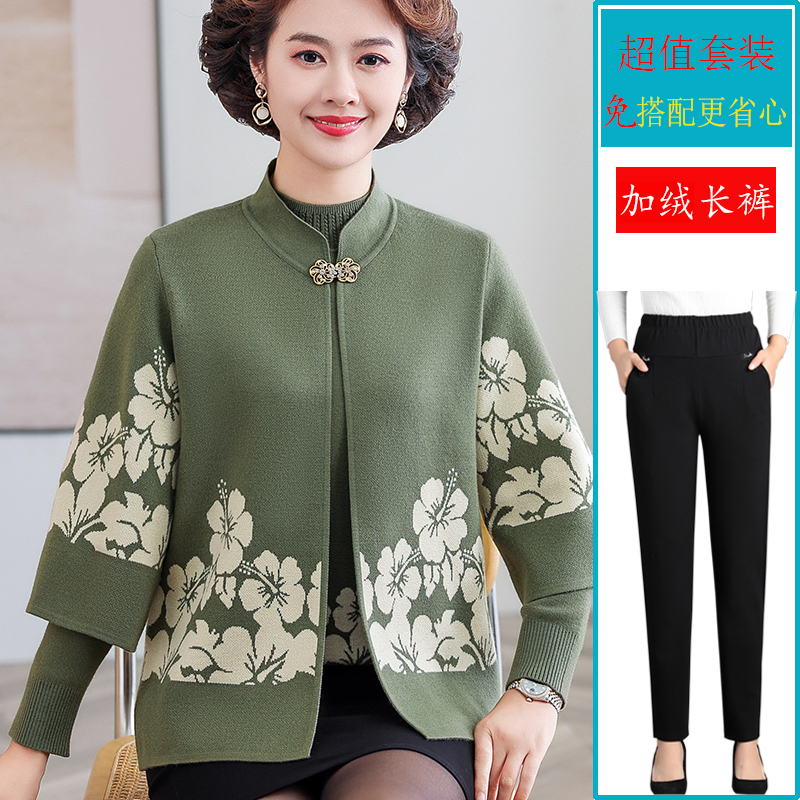 2023 осень и зима для матери Новое пальто костюм вязаный свитер 50-летней давности кардиган для женщин среднего и пожилого возраста пальто в иностранном стиле
