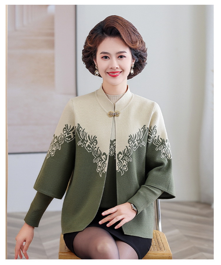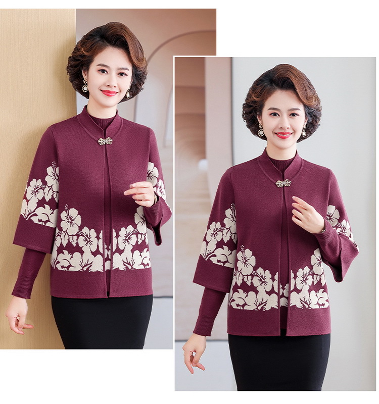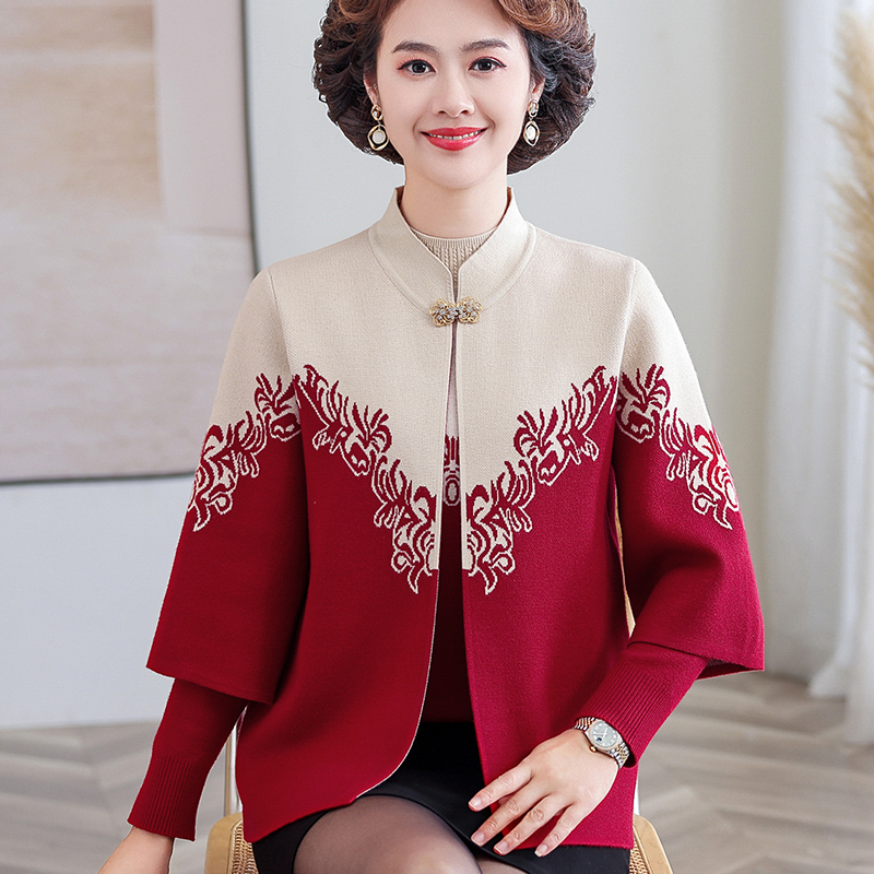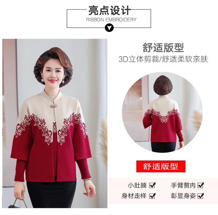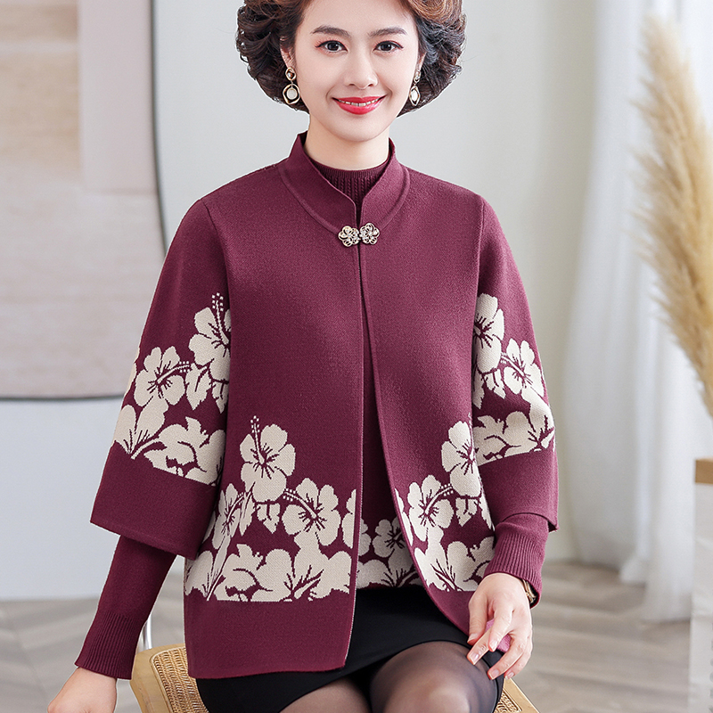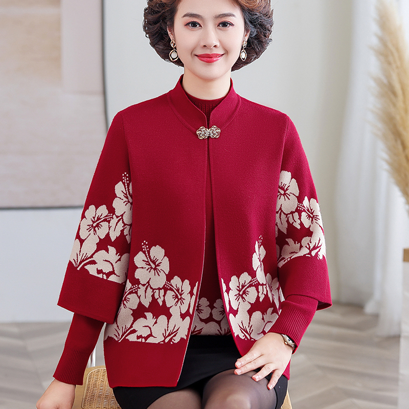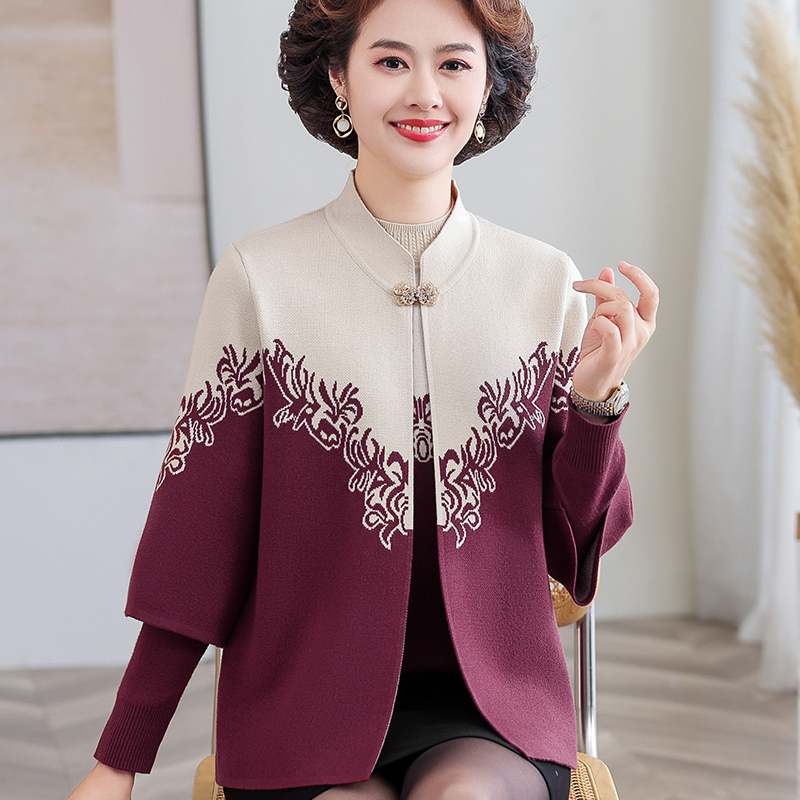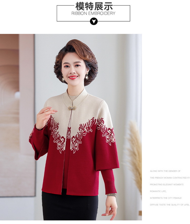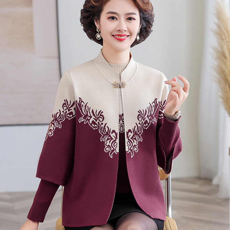 2023 осень и зима для матери Новое пальто костюм вязаный свитер 50-летней давности кардиган для женщин среднего и пожилого возраста пальто в иностранном стиле