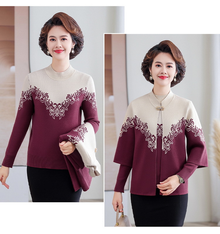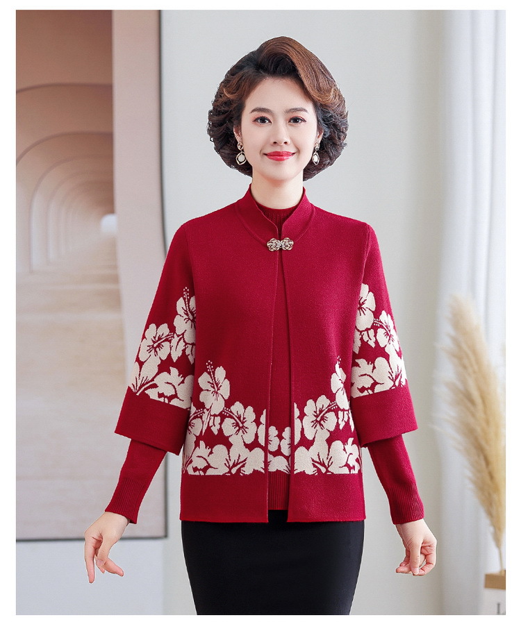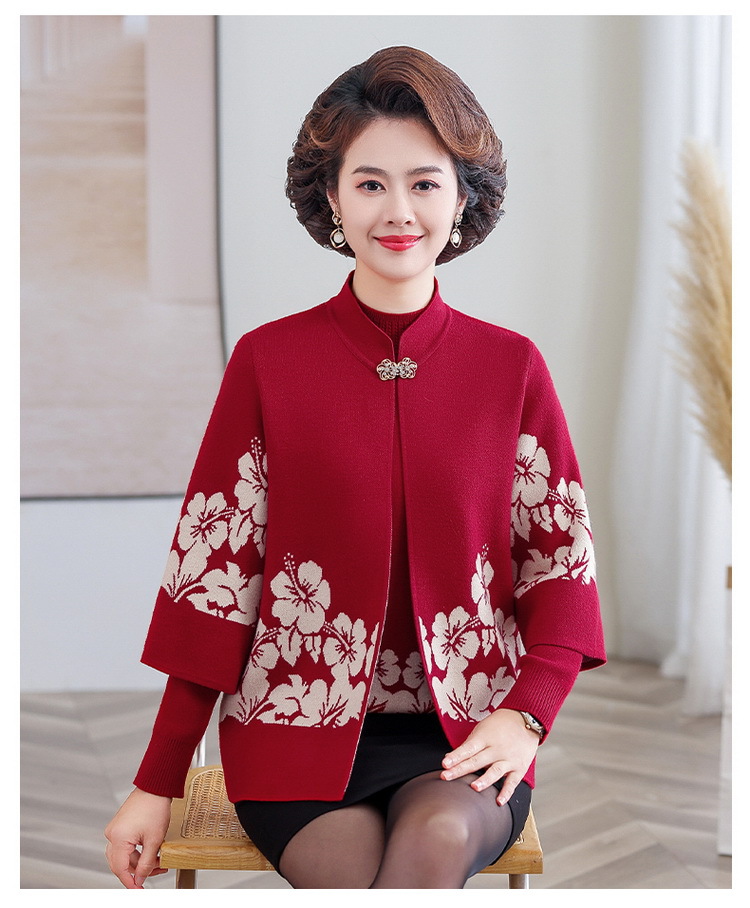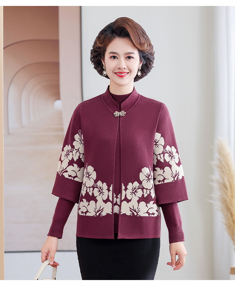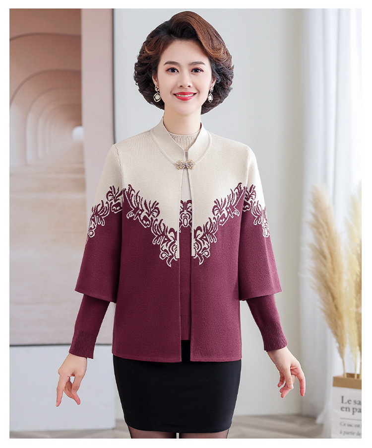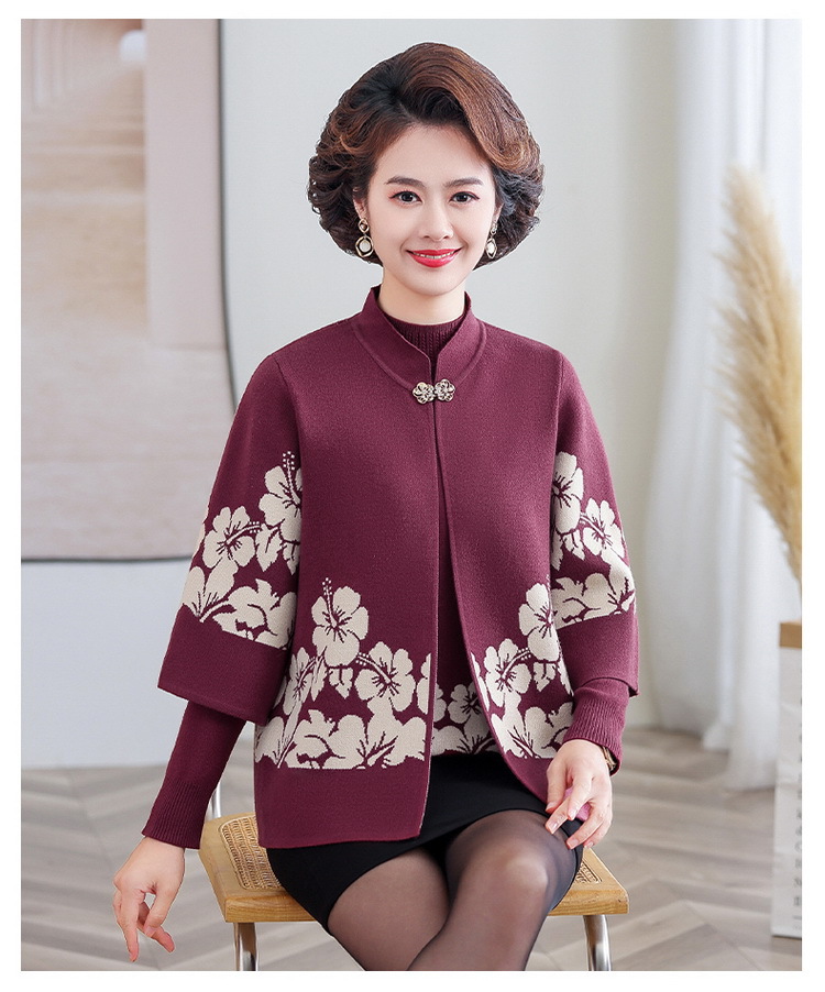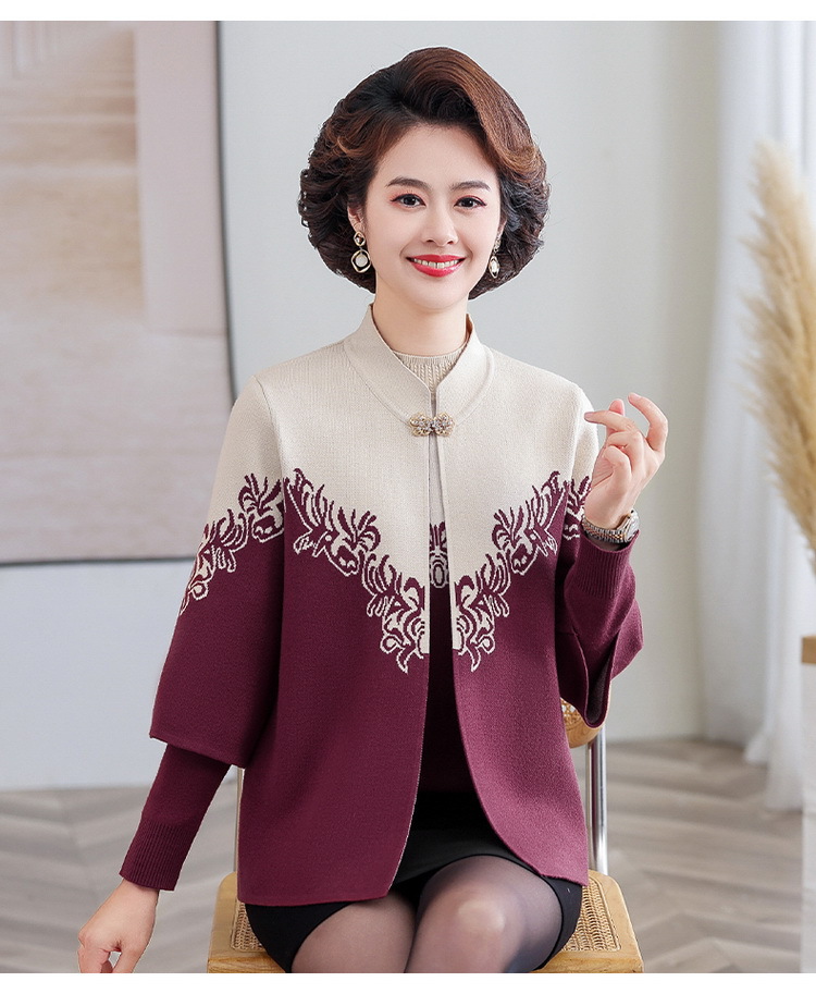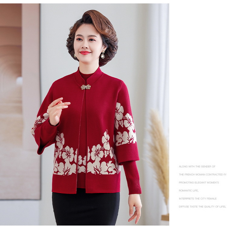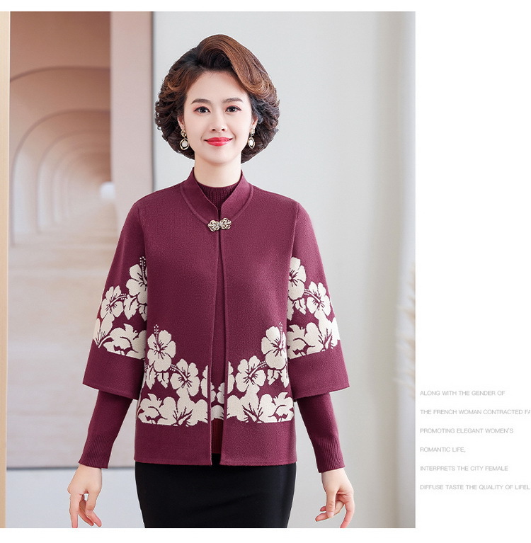 2023 осень и зима для матери Новое пальто костюм вязаный свитер 50-летней давности кардиган для женщин среднего и пожилого возраста пальто в иностранном стиле
