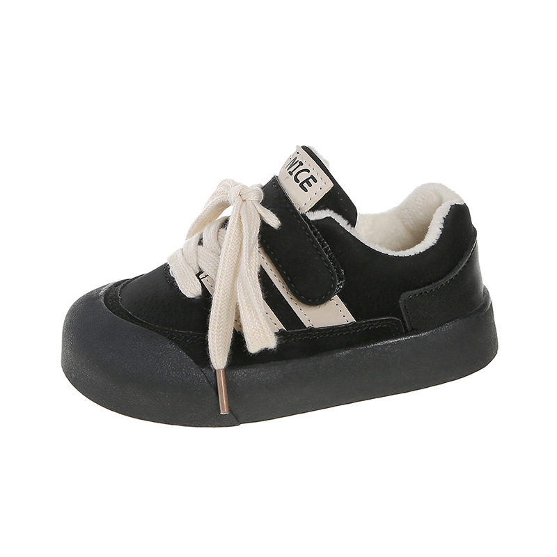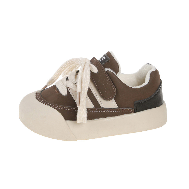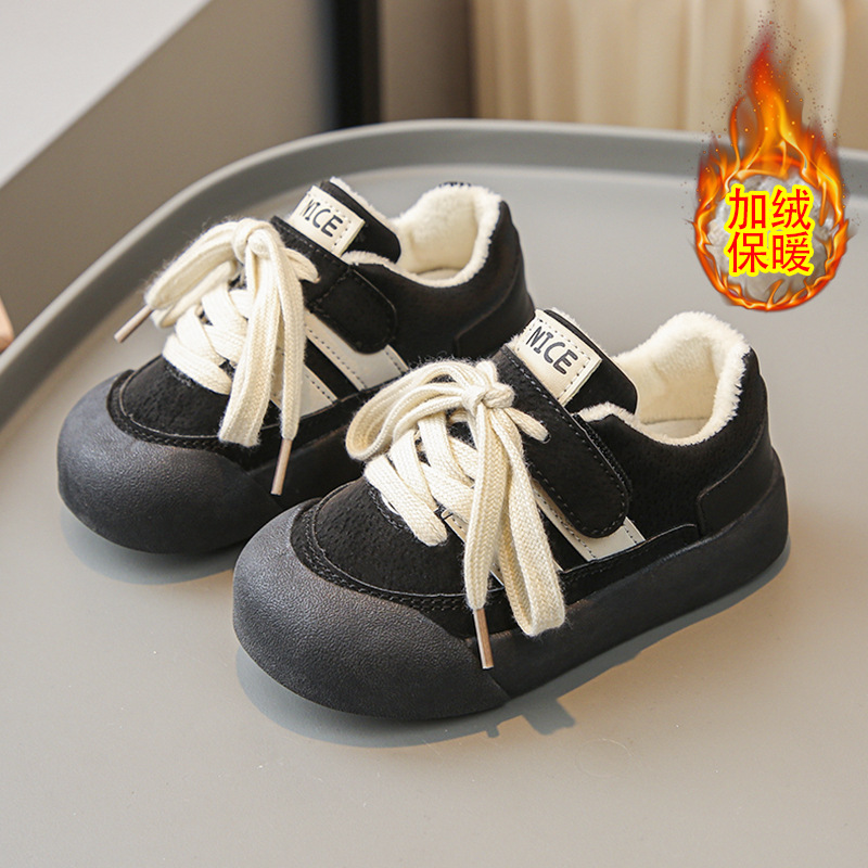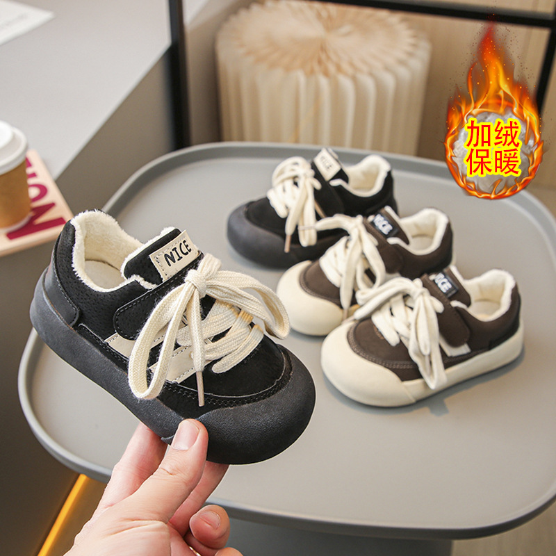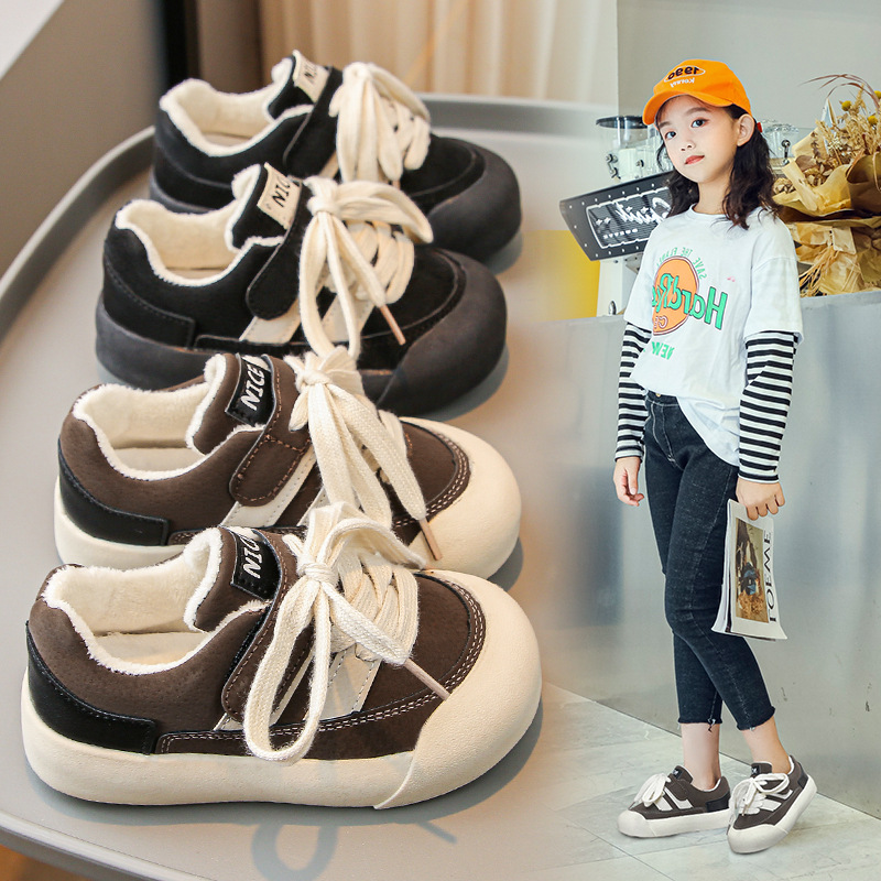 2023 Зимняя детская повседневная обувь на флисовой подкладке, новые мальчики из натуральной кожи, мягкая теплая обувь с низким верхом, обувь из двух хлопков для девочек