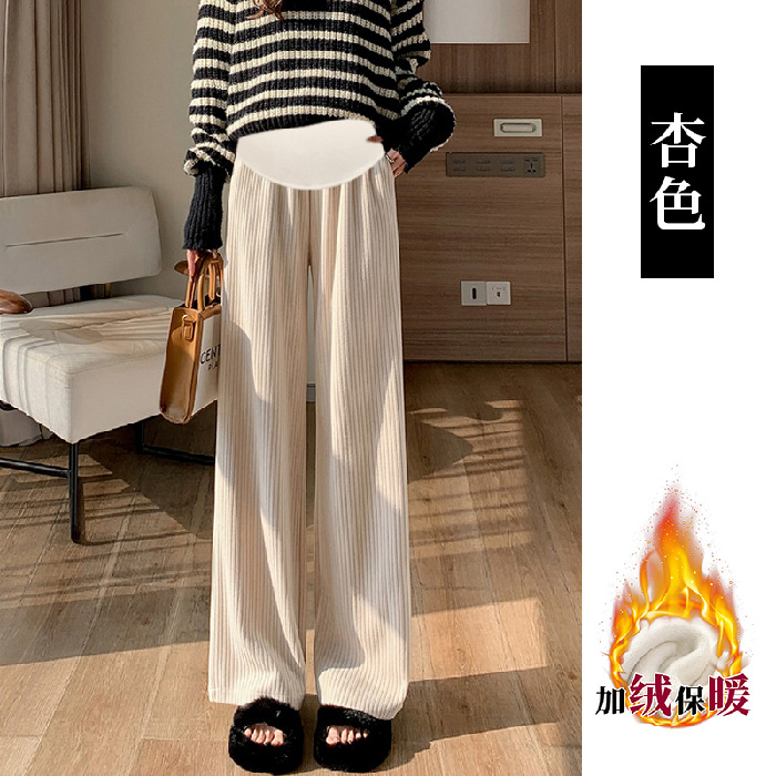 Брюки для беременных, осенняя верхняя одежда, брюки для поддержки живота, зимняя одежда, брюки для беременных, Свободные повседневные брюки с широкими штанинами на флисовой подкладке, осенние брюки для беременных