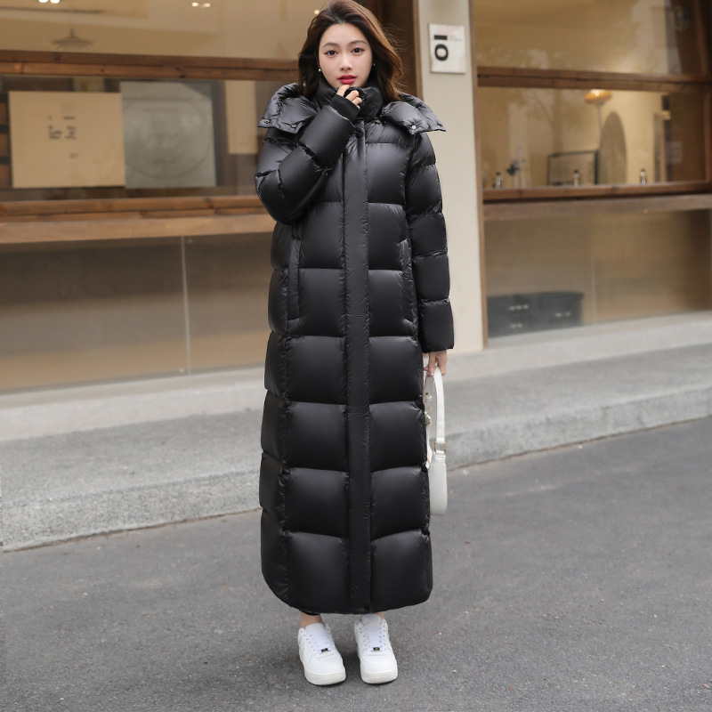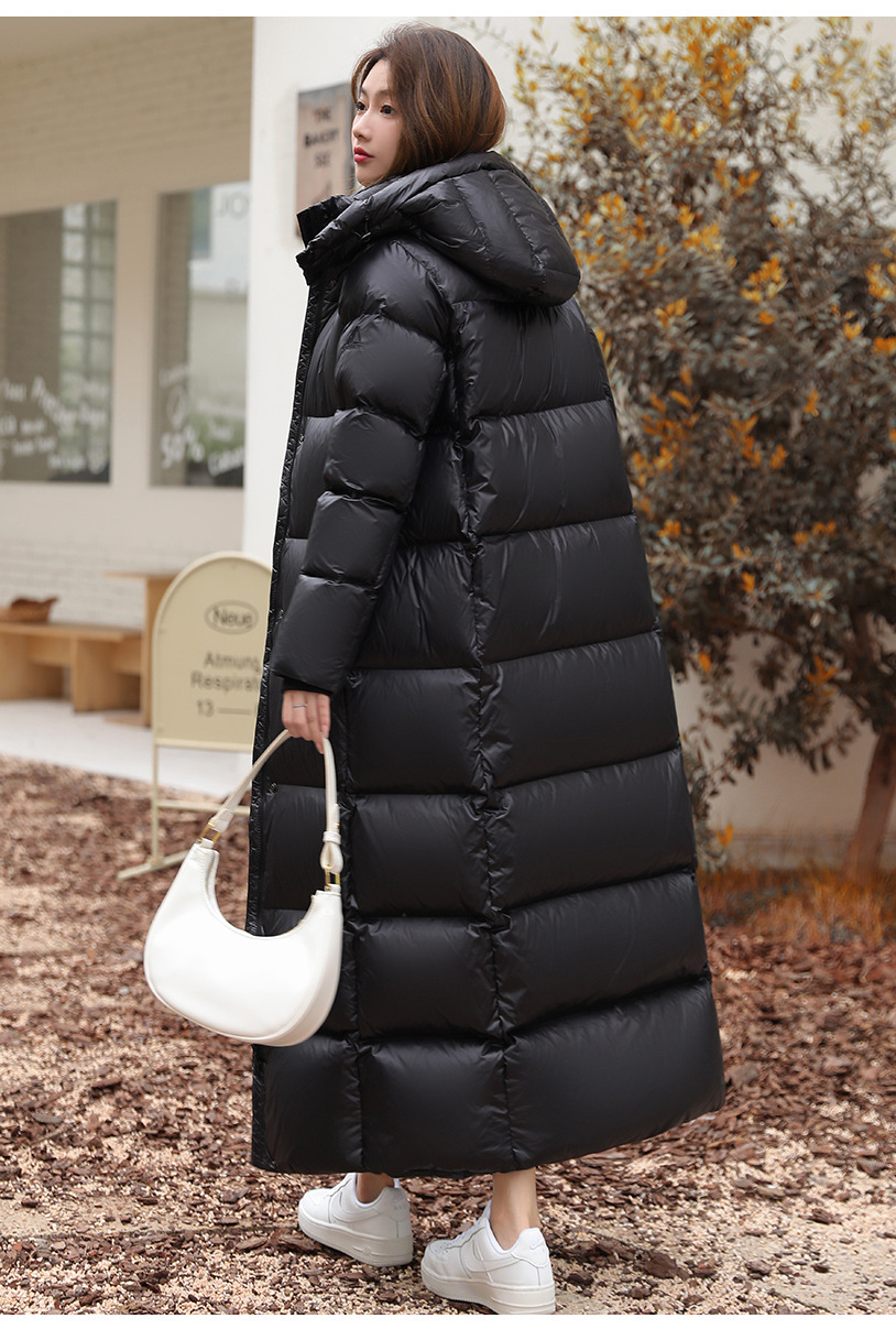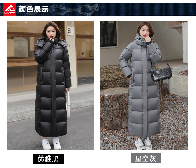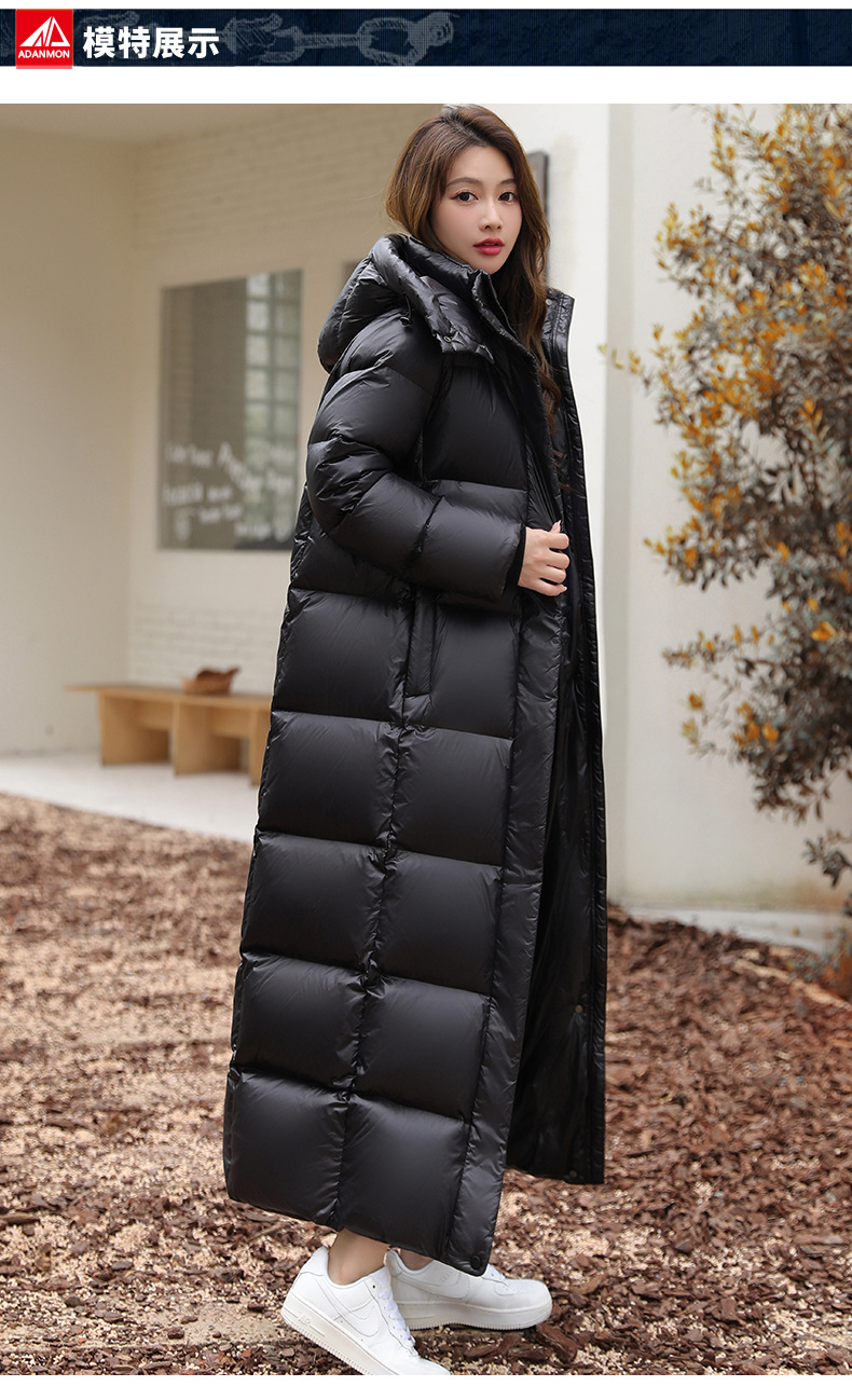Aidanmon 95, черный, золотой пуховик на белом утином пуху, женский пуховик 2025, новинка 2025 года, удлиненная зимняя утолщенная куртка выше колена, женская