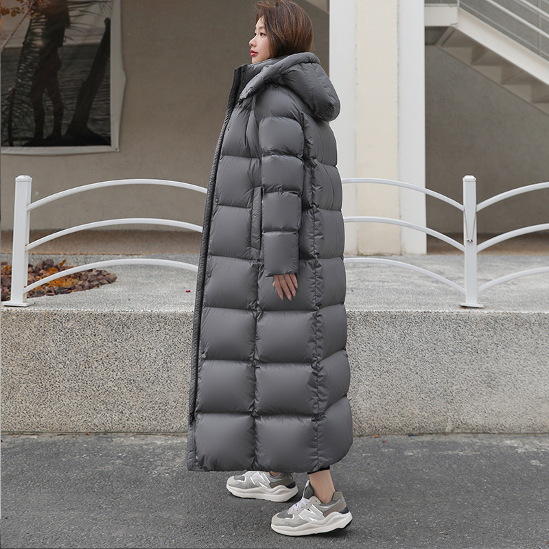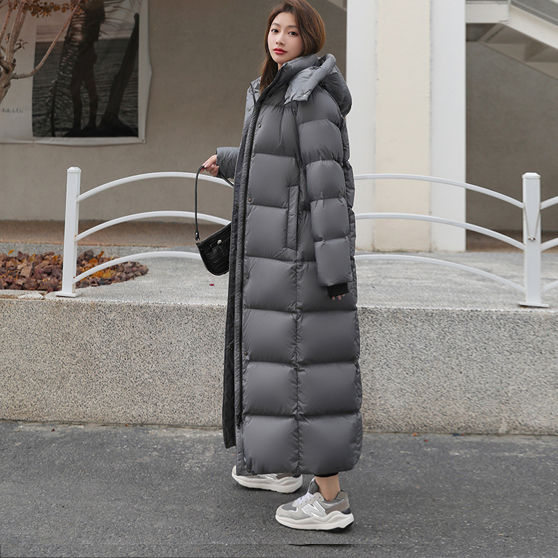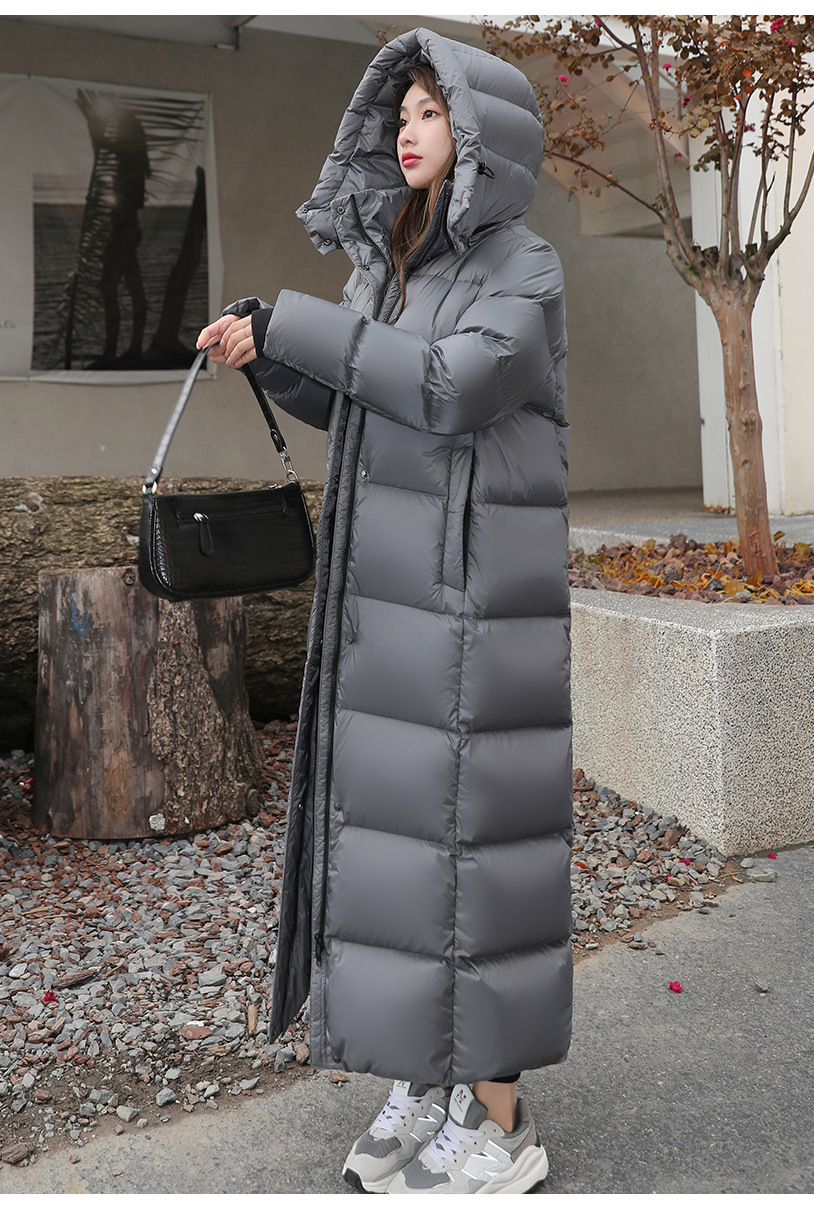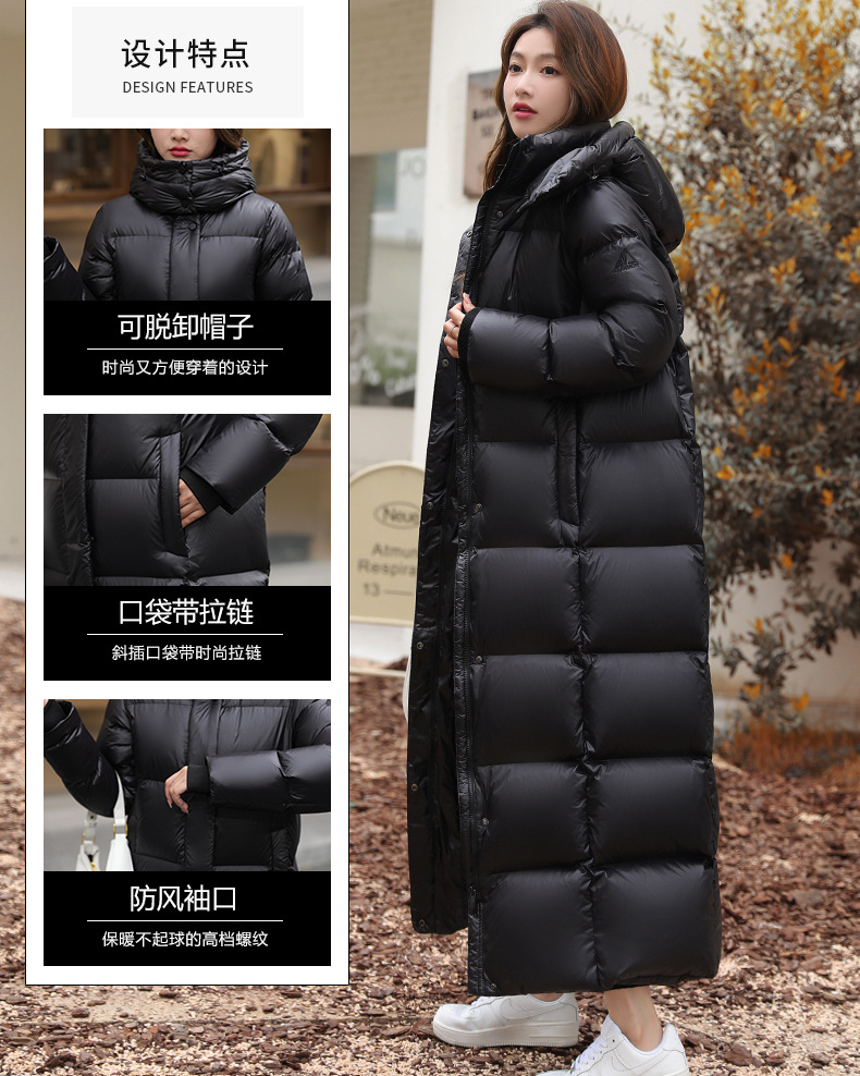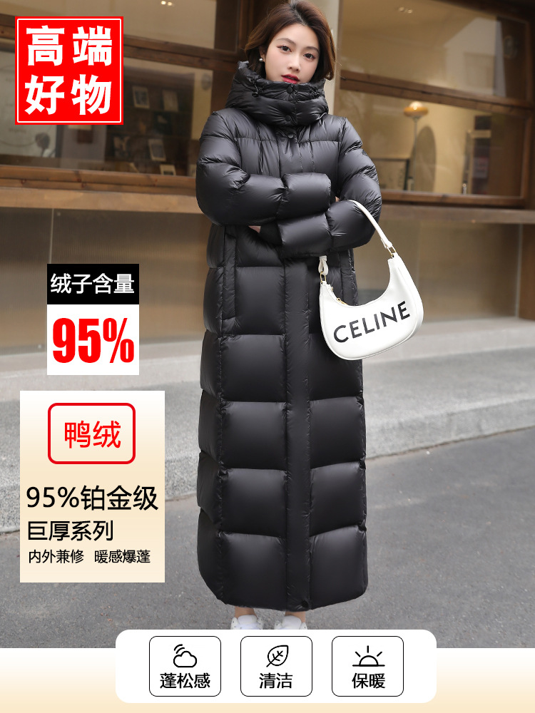 Aidanmon 95, черный, золотой пуховик на белом утином пуху, женский пуховик 2025, новинка 2025 года, удлиненная зимняя утолщенная куртка выше колена, женская